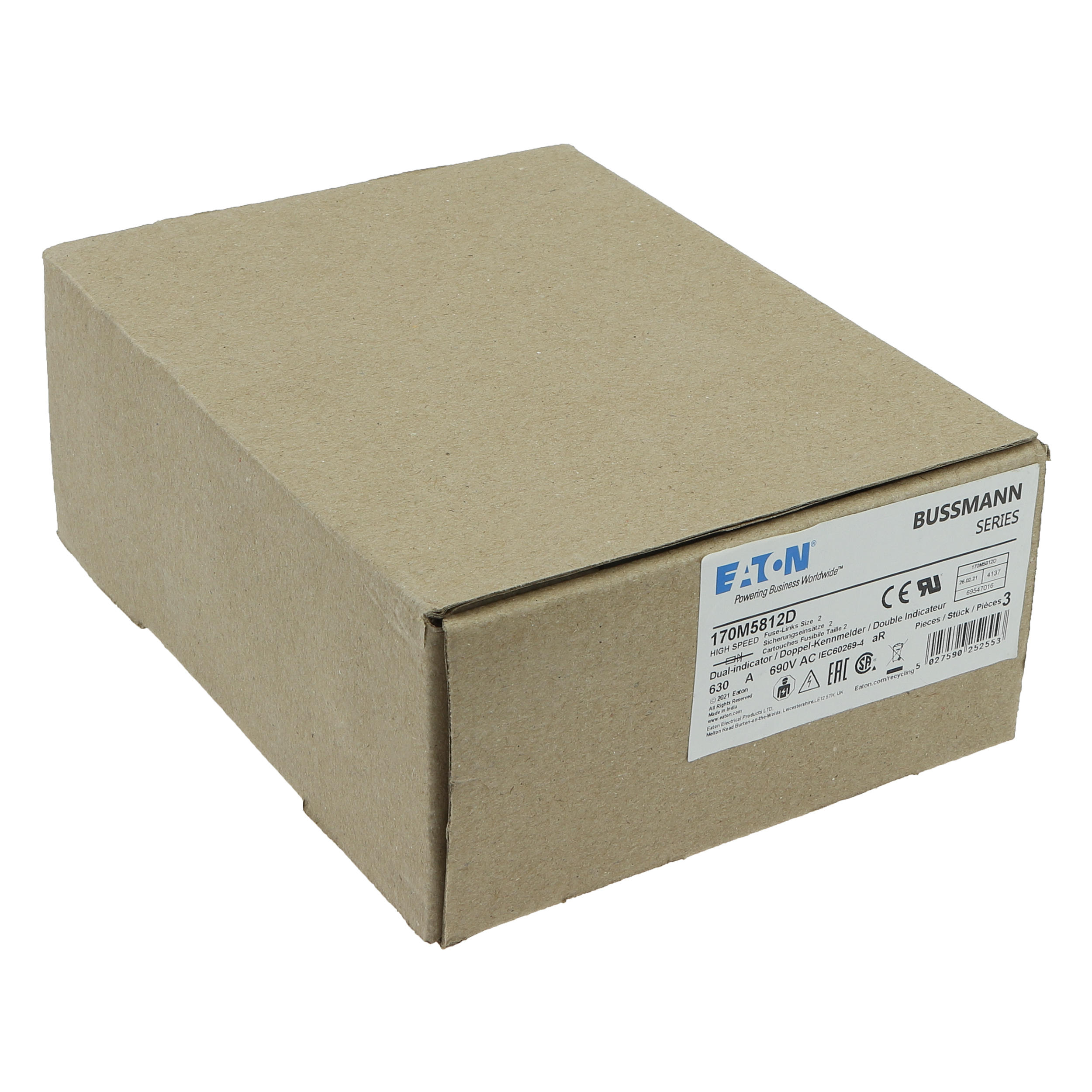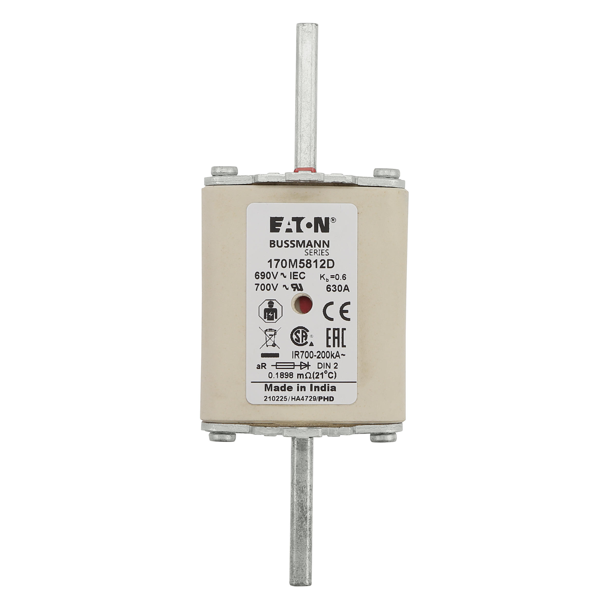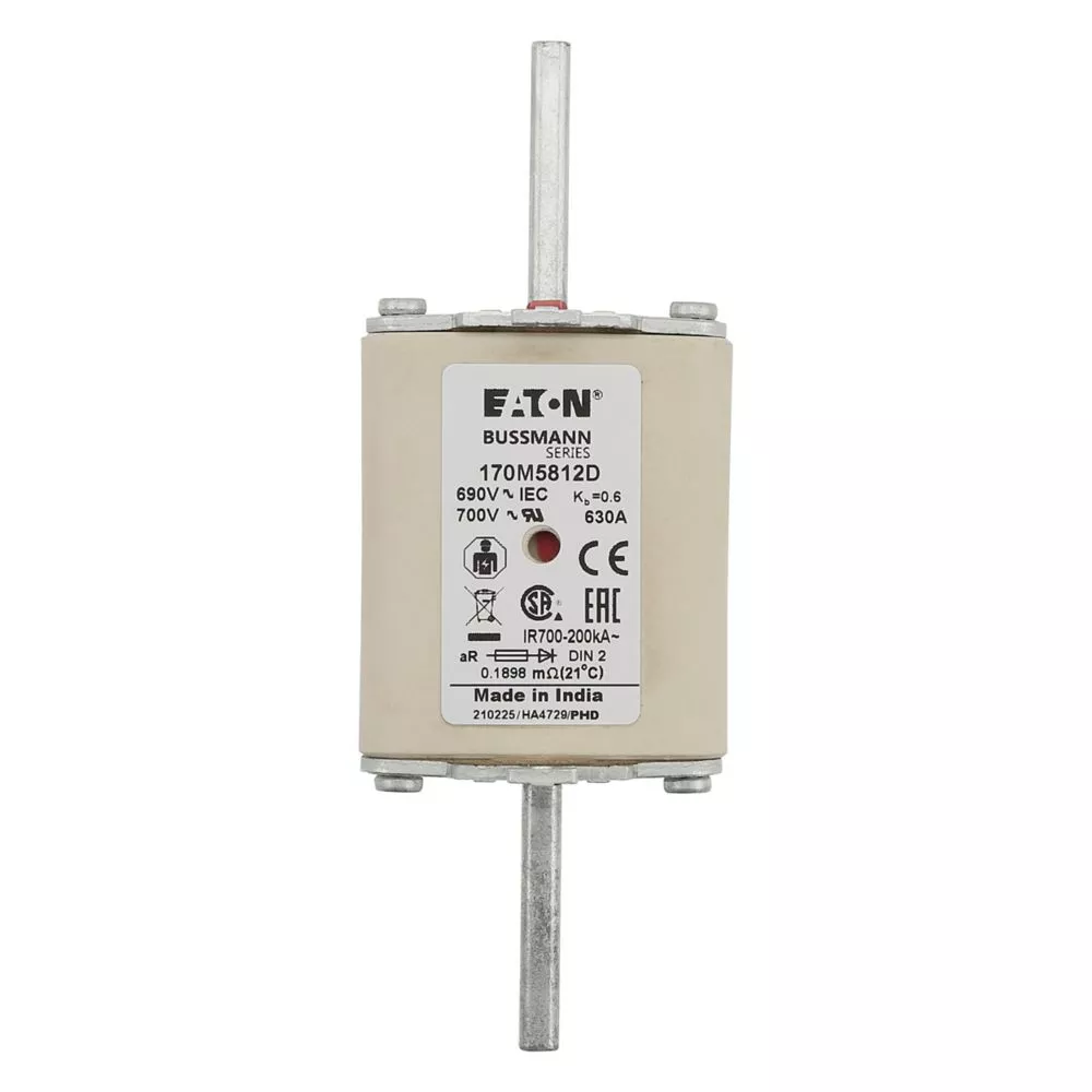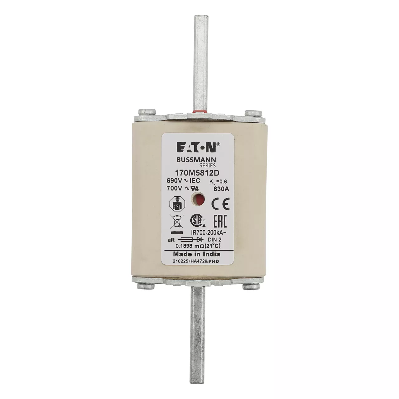 170M5812D Wkładka szybka, 630 A, AC 690 V, DIN 2, aR, DIN, IEC, podwójny wskaźnik, nieizolowane uchwyty