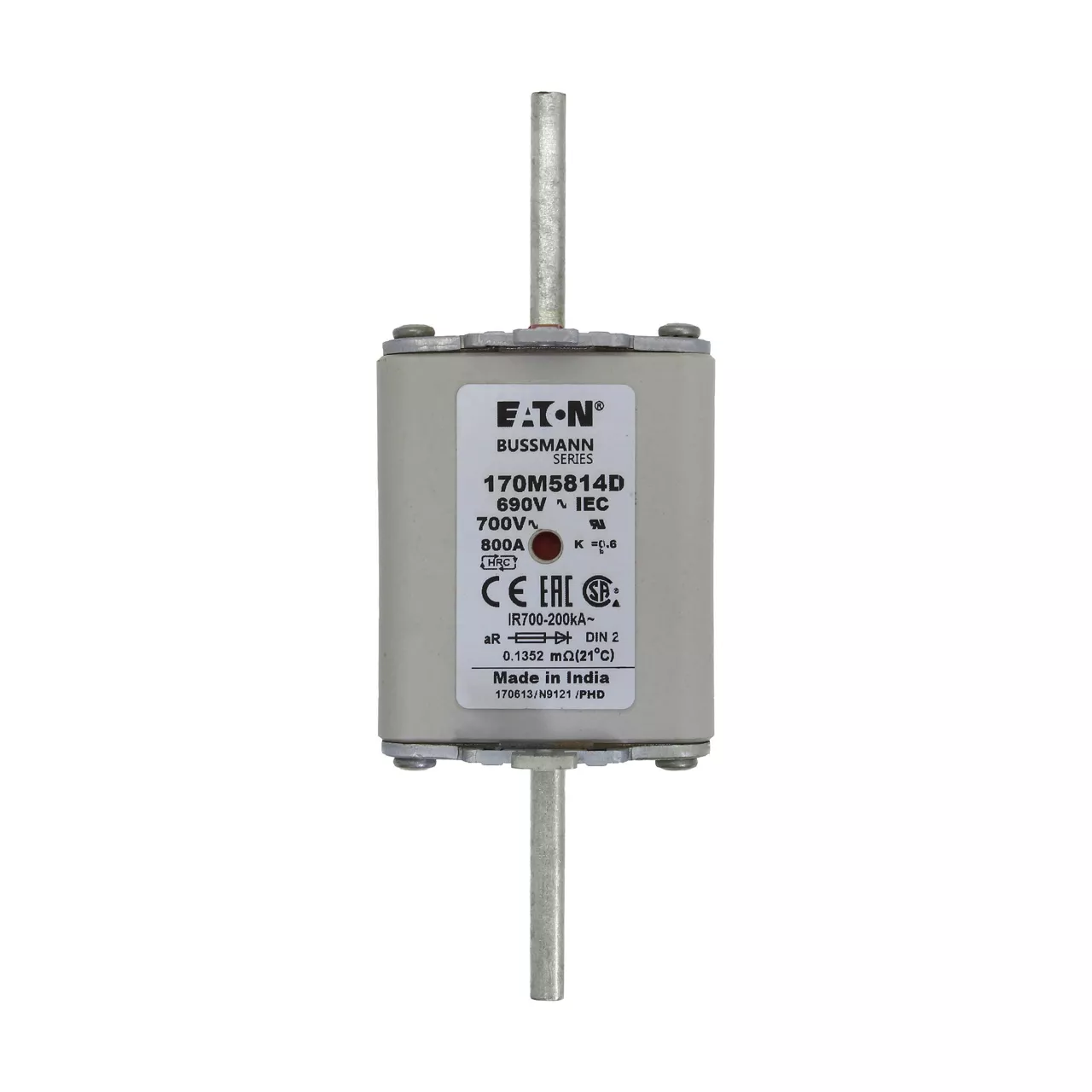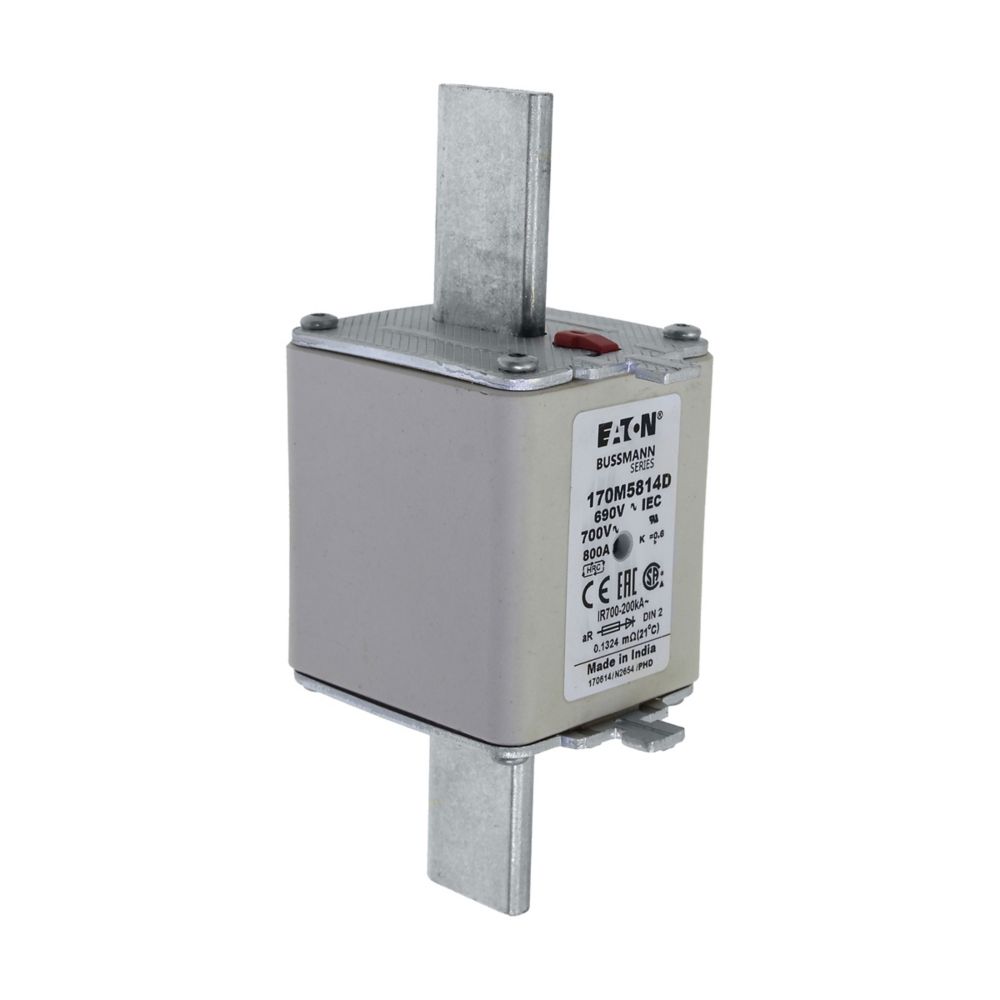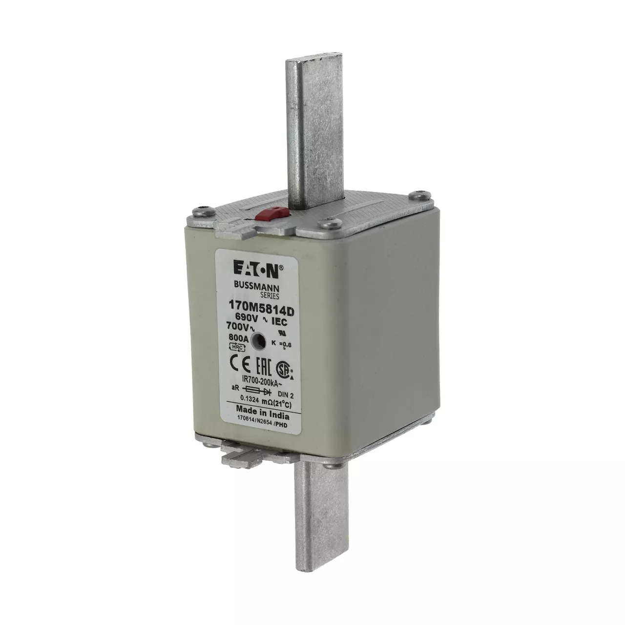 170M5814D Wkładka szybka, 800 A, AC 690 V, DIN 2, aR, DIN, IEC, podwójny wskaźnik, nieizolowane uchwyty