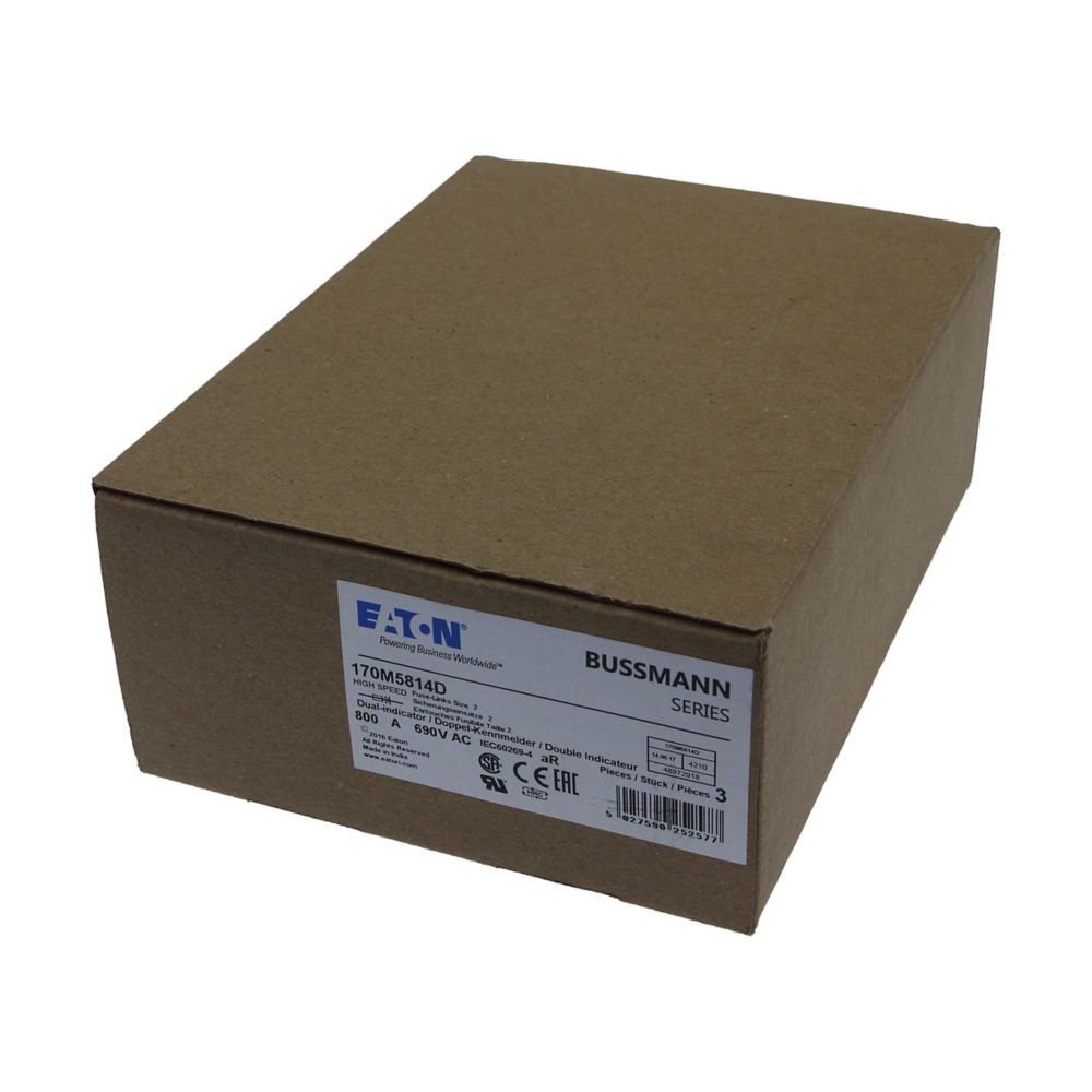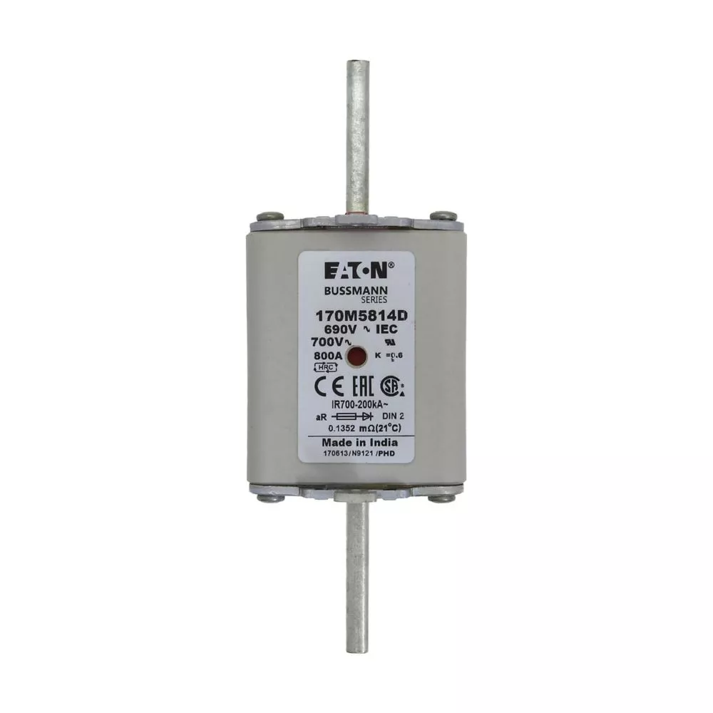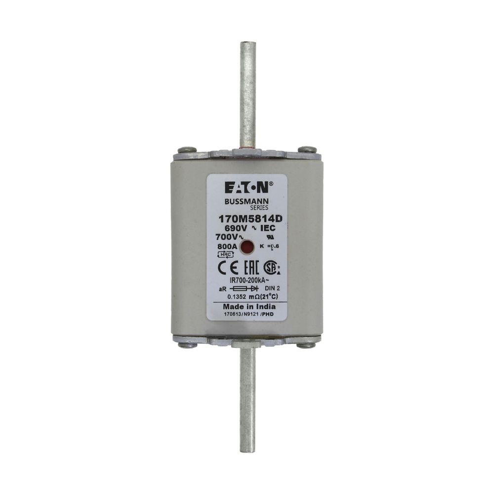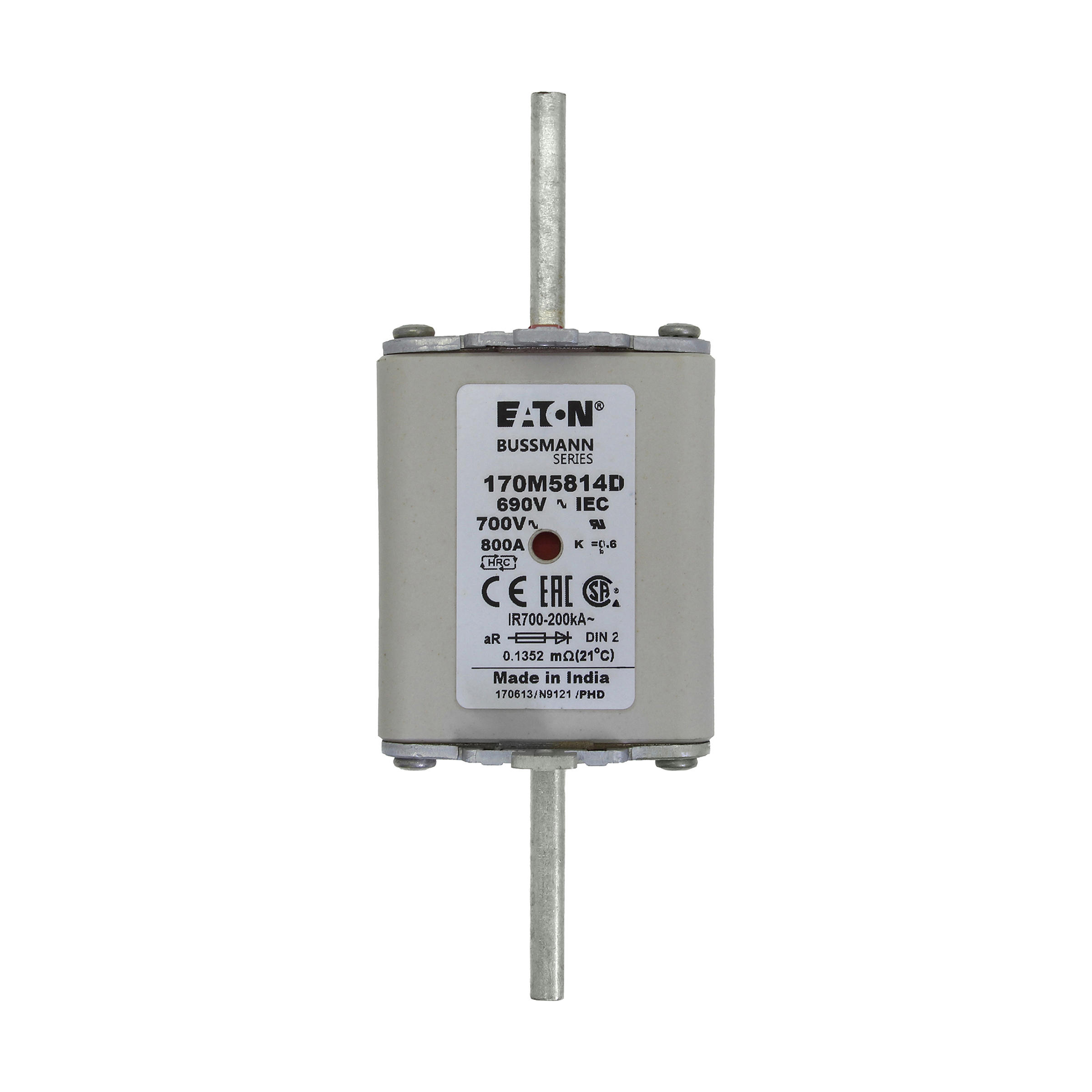 170M5814D Wkładka szybka, 800 A, AC 690 V, DIN 2, aR, DIN, IEC, podwójny wskaźnik, nieizolowane uchwyty