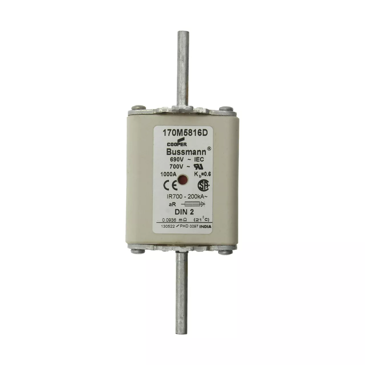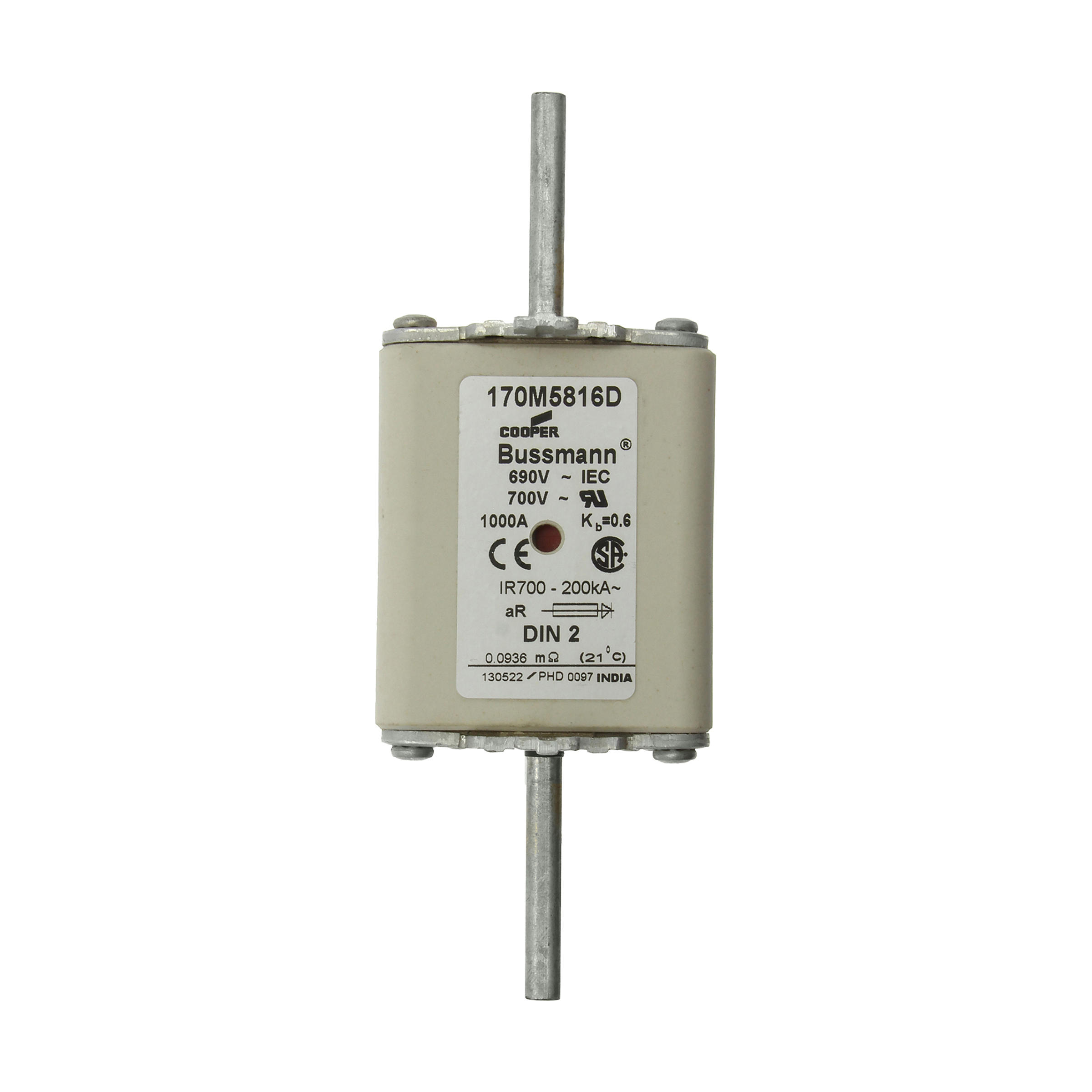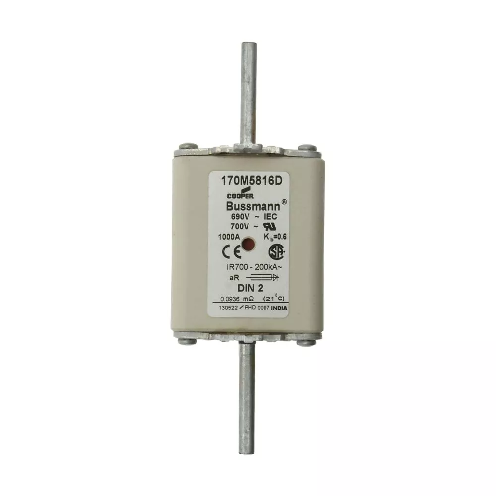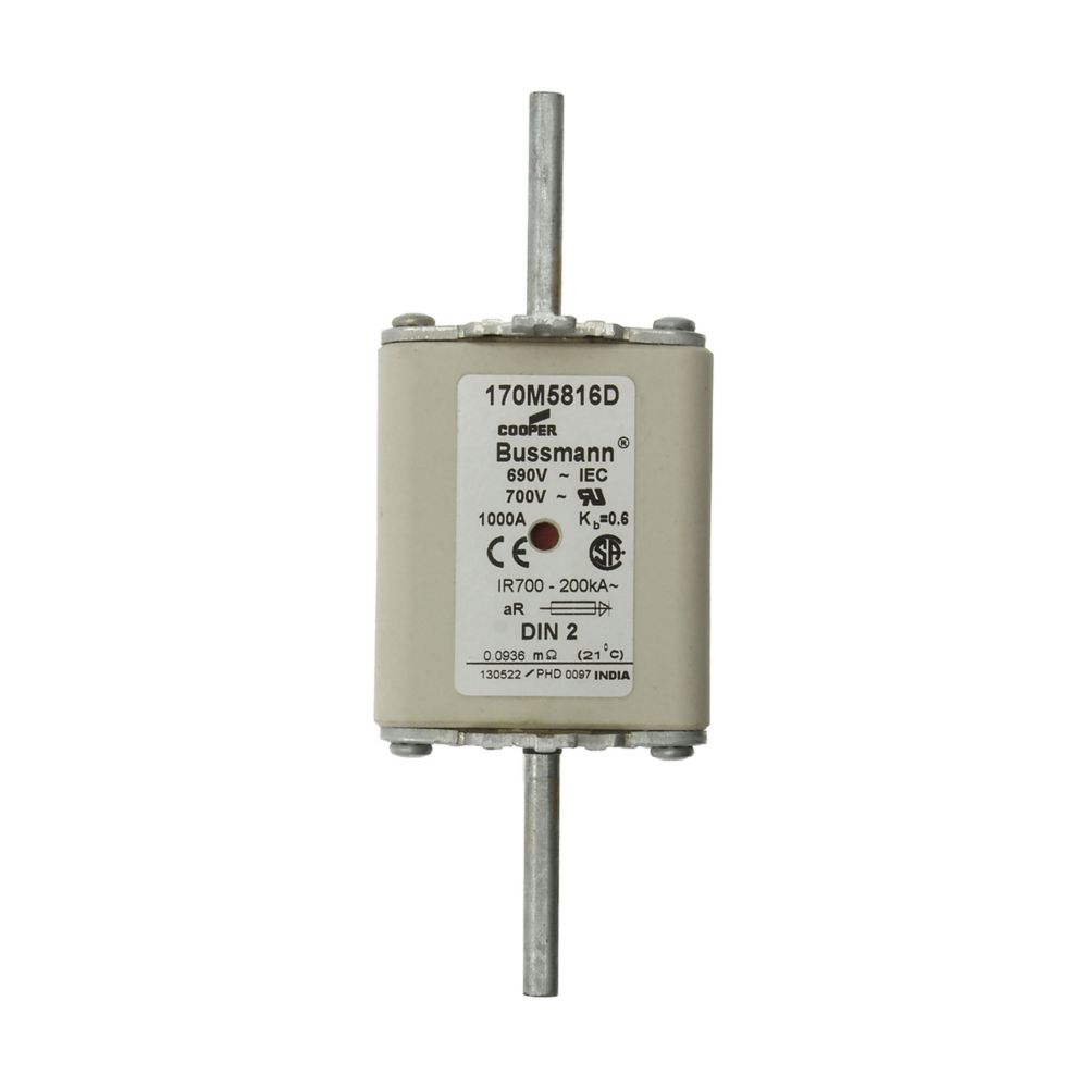 170M5816D Wkładka szybka, 1000 A, AC 690 V, DIN 2, aR, DIN, IEC, podwójny wskaźnik, nieizolowane uchwyty