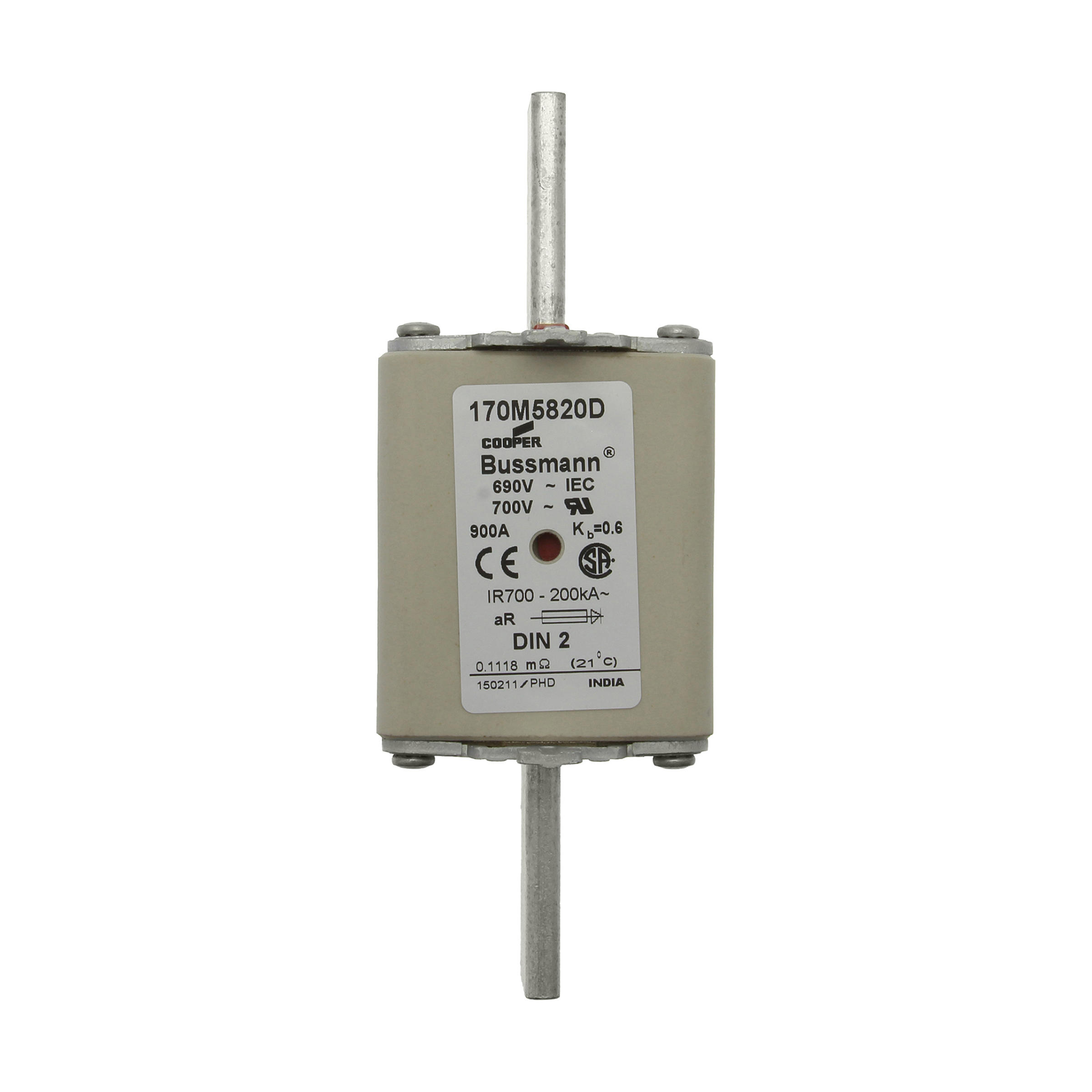 170M5820D Wkładka szybka, 900 A, AC 690 V, DIN 2, aR, DIN, IEC, podwójny wskaźnik, nieizolowane uchwyty