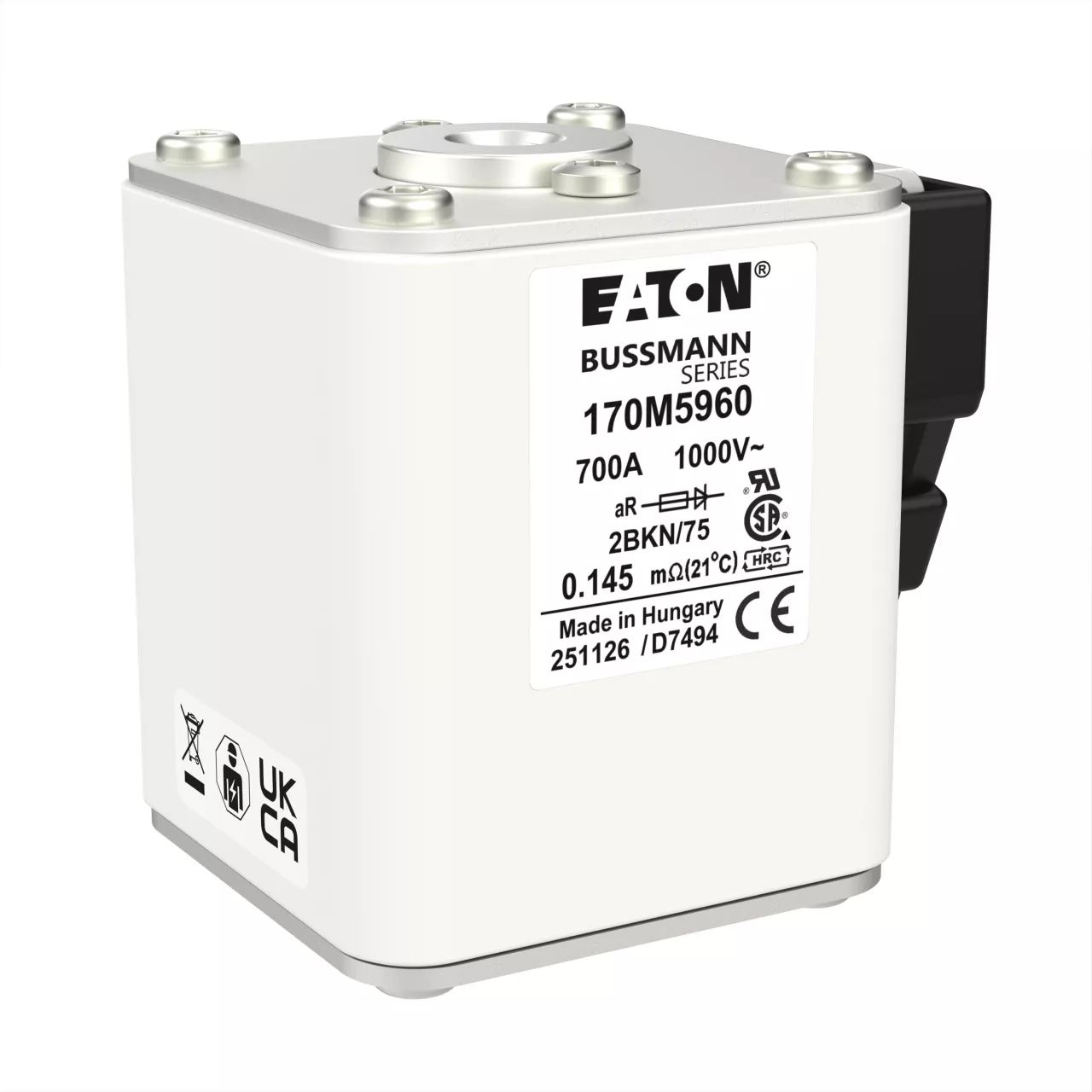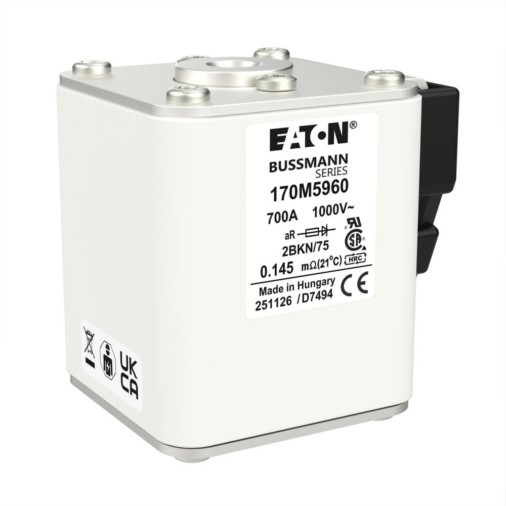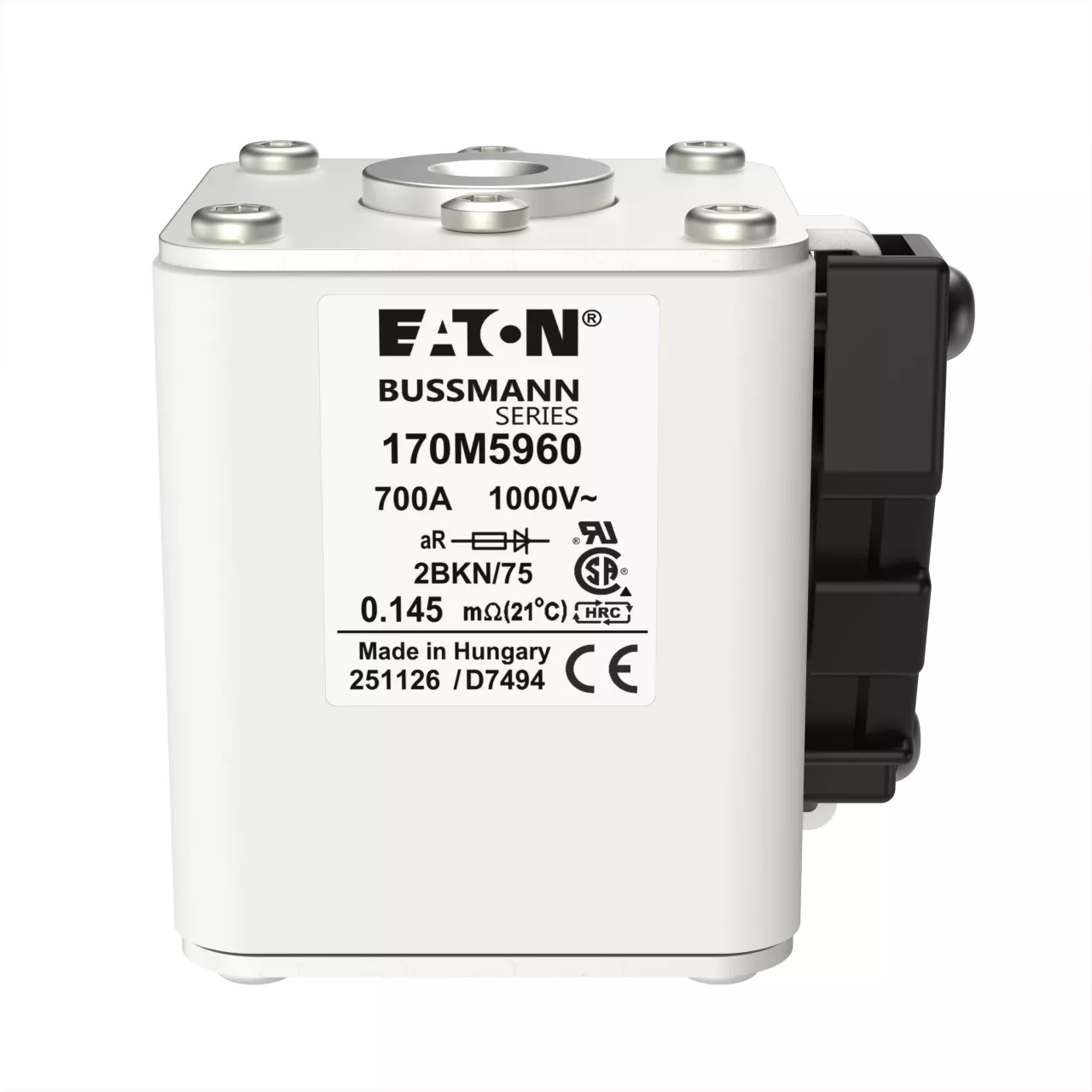 170M5960 Wkładka szybka, 700 A, AC 1000 V, size 2, 59 x 77 x 75 mm, aR, IEC, UL, wskaźnik K, flush end, M10