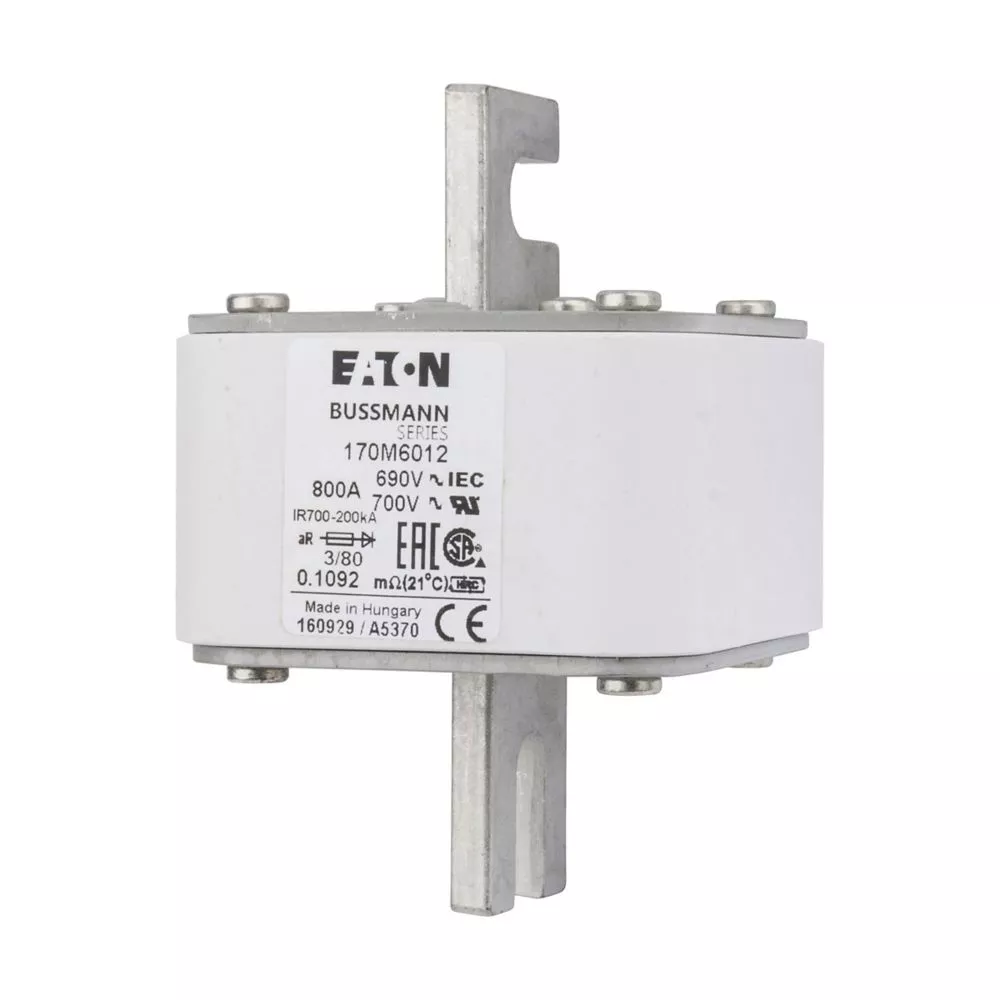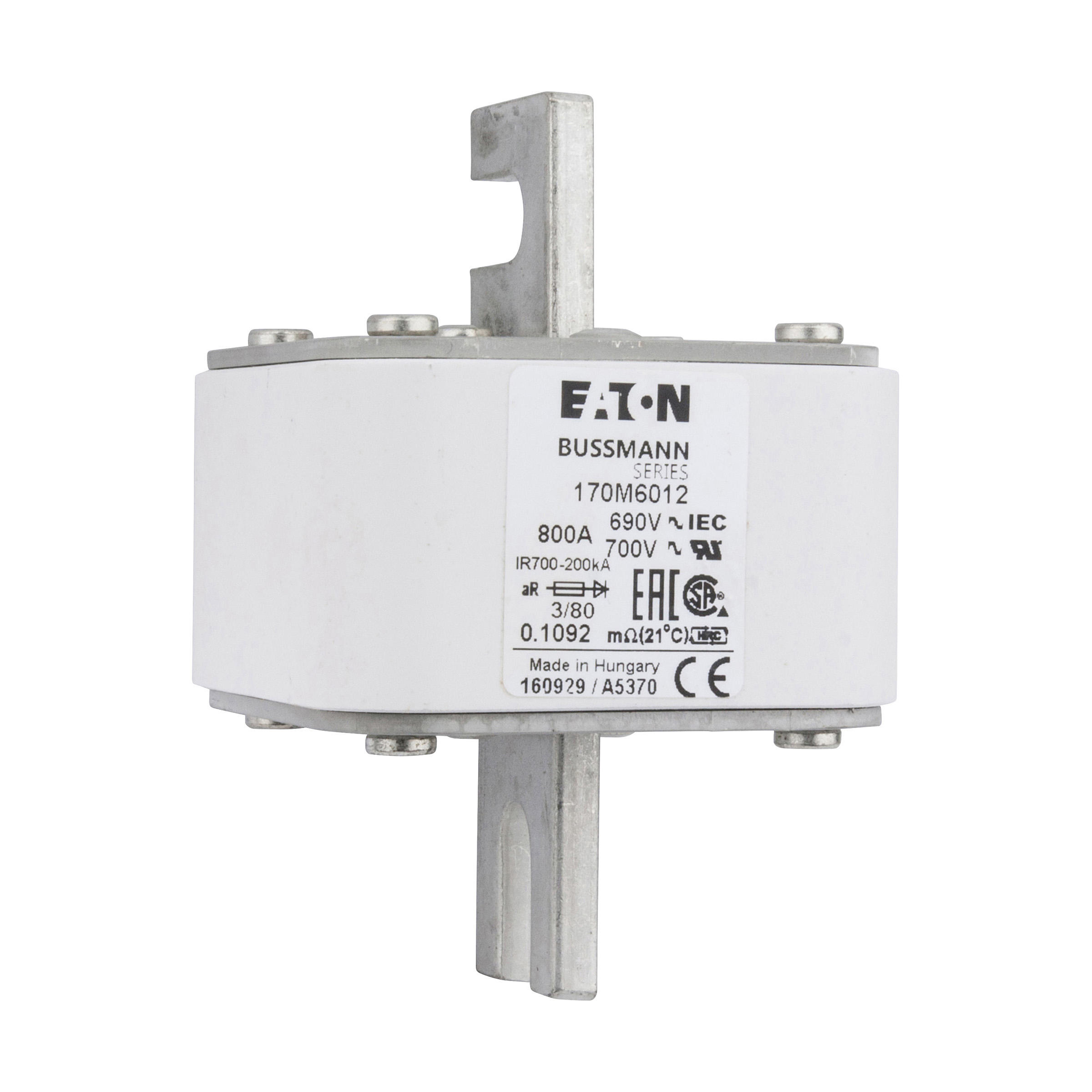 170M6012 Wkładka szybka, 800 A, AC 690 V, DIN 3, 76 x 76 x 109 mm, aR, DIN, IEC, pojedynczy wskaźnik