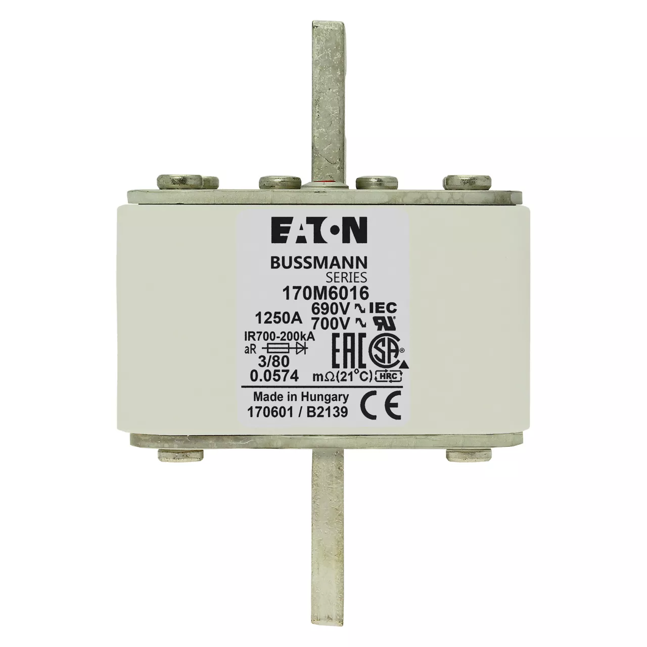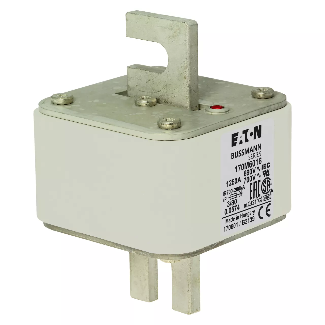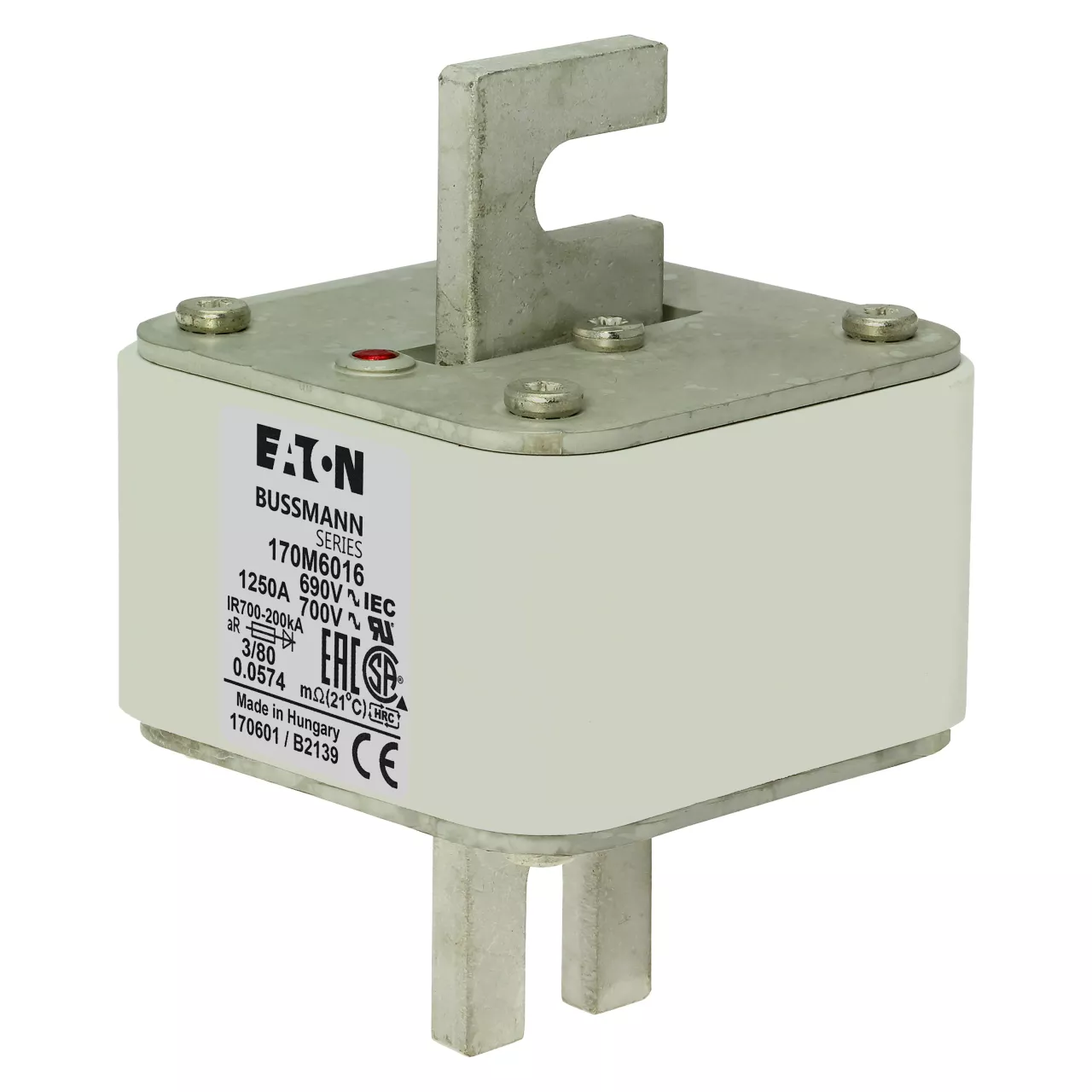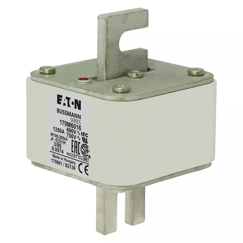 170M6016 Wkładka szybka, 1250 A, AC 690 V, DIN 3, 76 x 76 x 109 mm, aR, DIN, IEC, pojedynczy wskaźnik