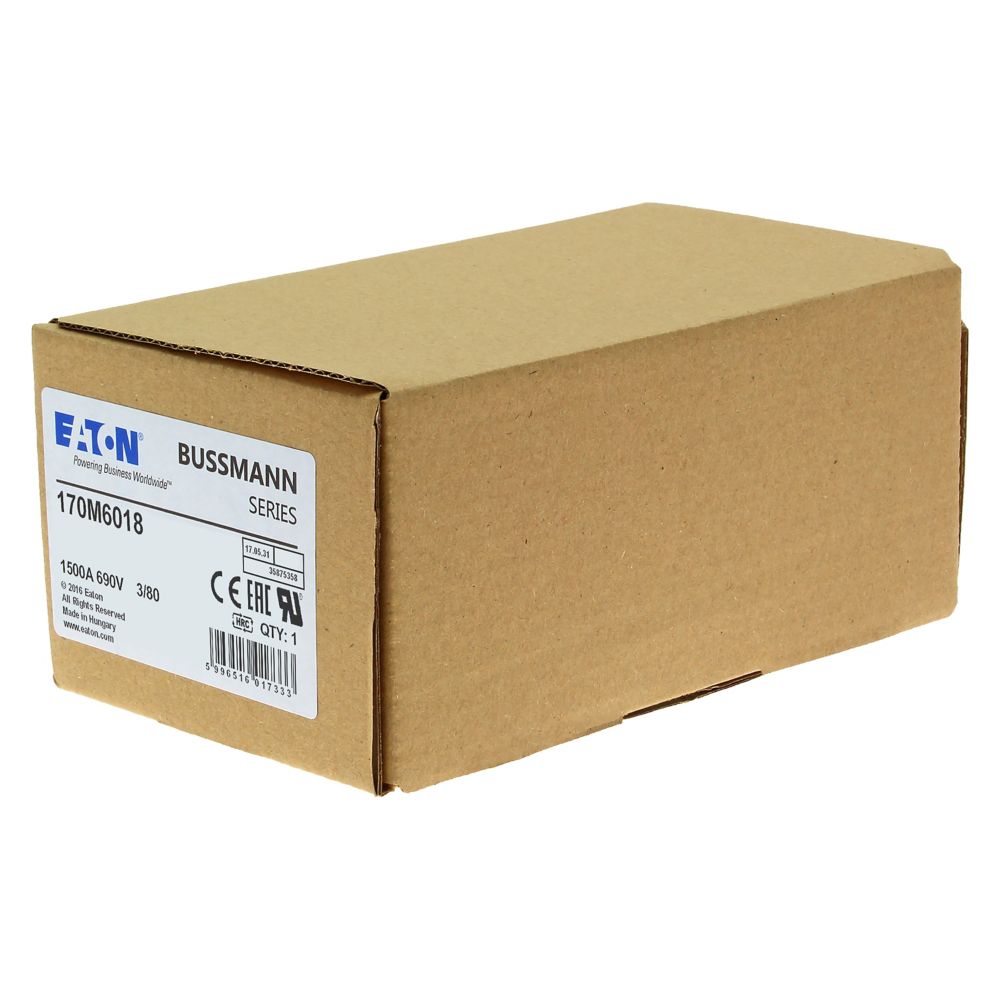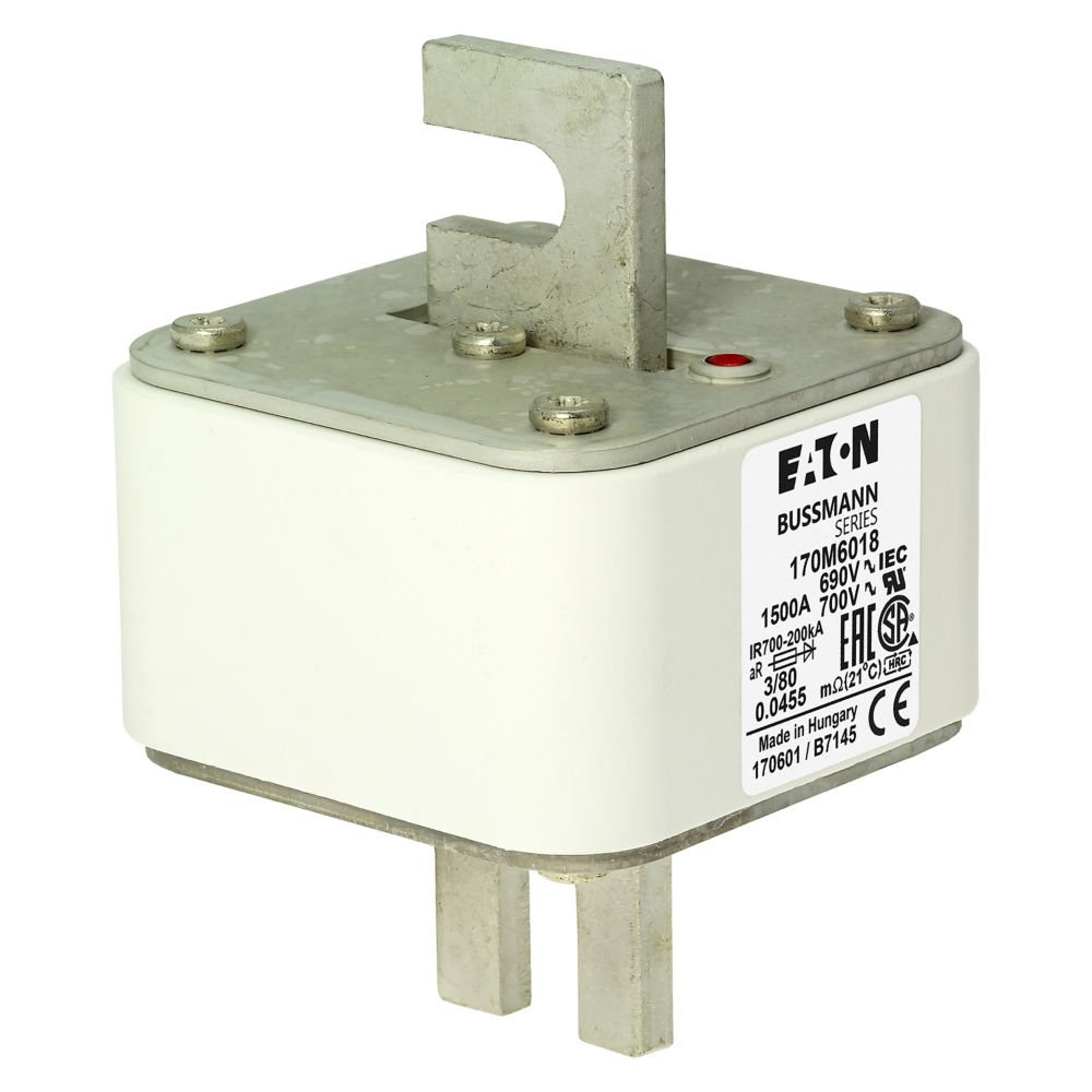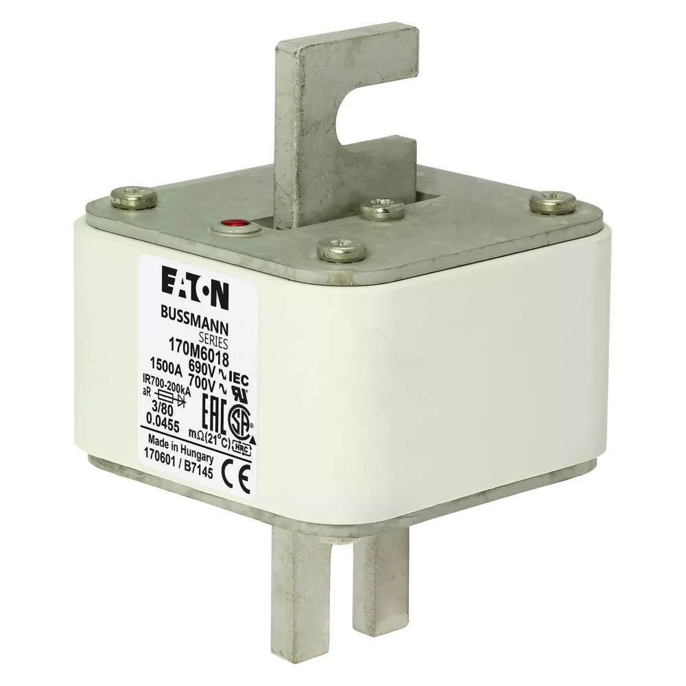 170M6018 Wkładka szybka, 1500 A, AC 690 V, DIN 3, 76 x 76 x 109 mm, aR, DIN, IEC, pojedynczy wskaźnik