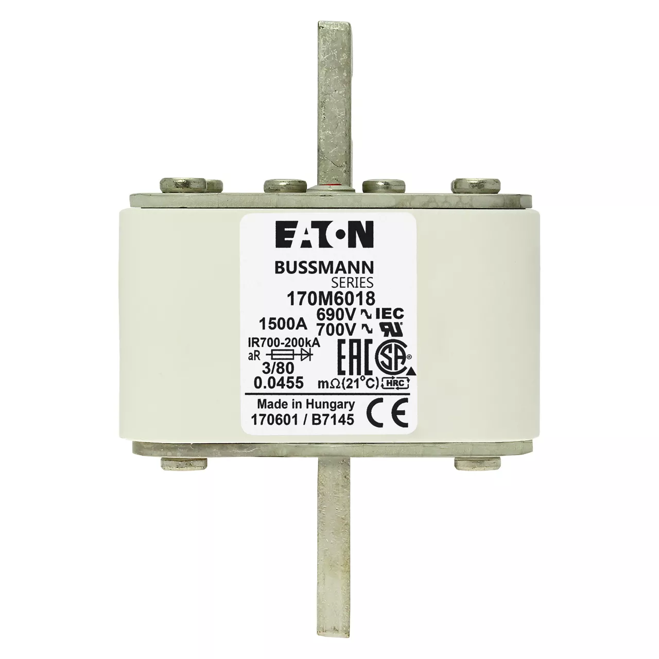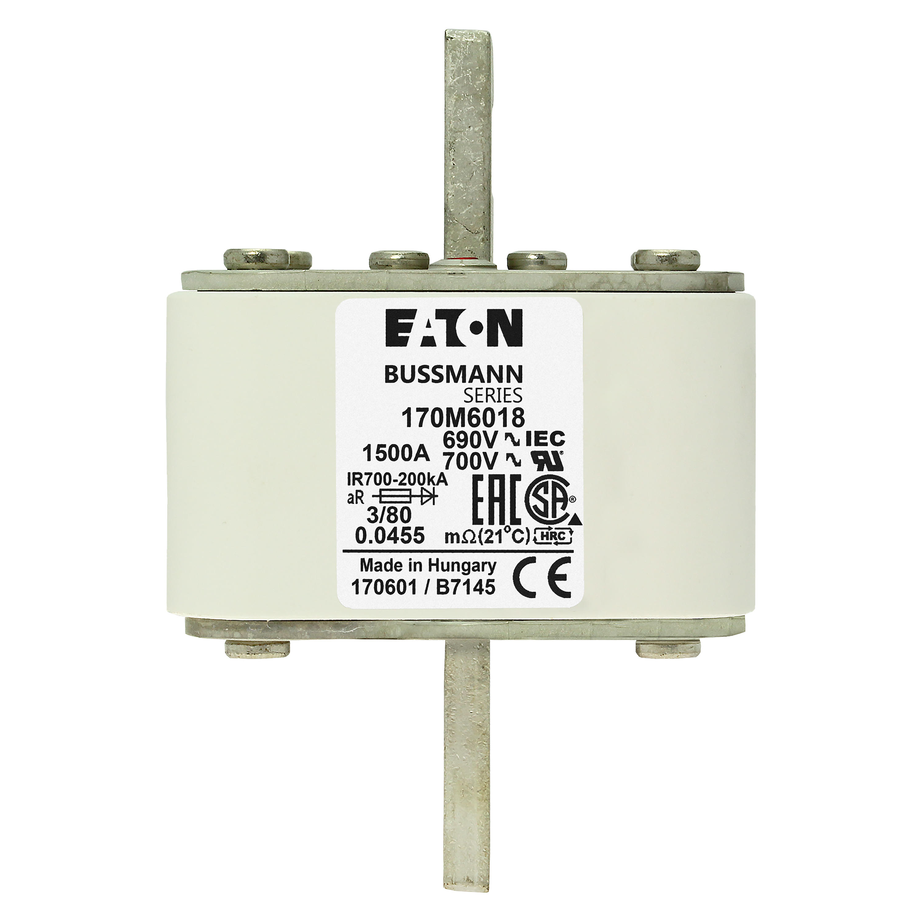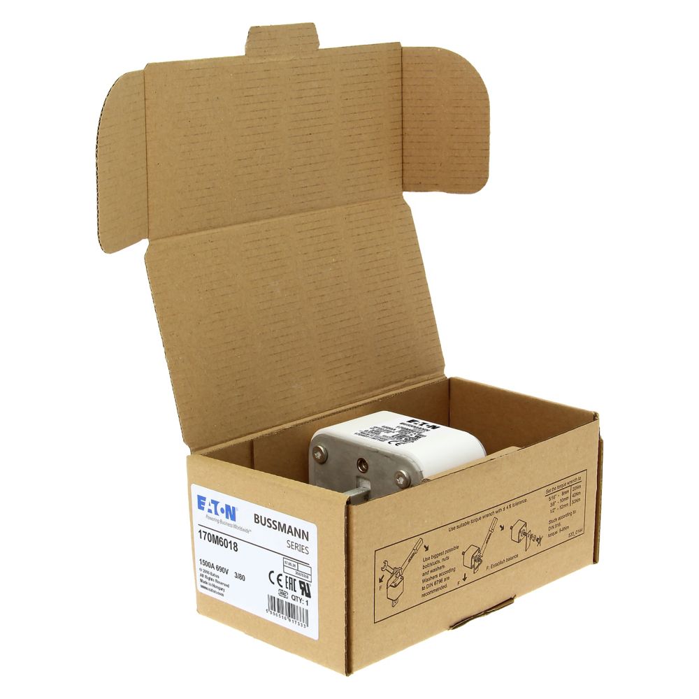 170M6018 Wkładka szybka, 1500 A, AC 690 V, DIN 3, 76 x 76 x 109 mm, aR, DIN, IEC, pojedynczy wskaźnik