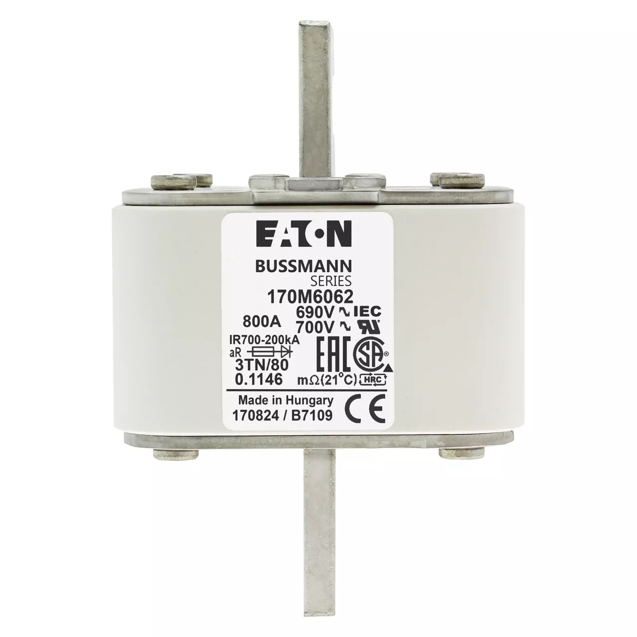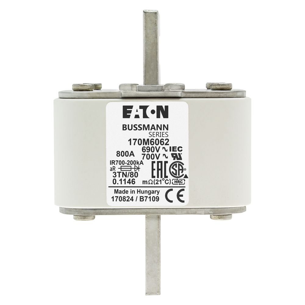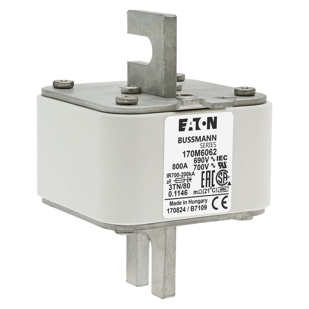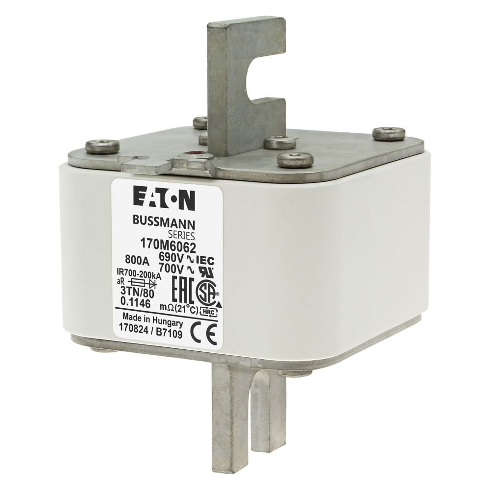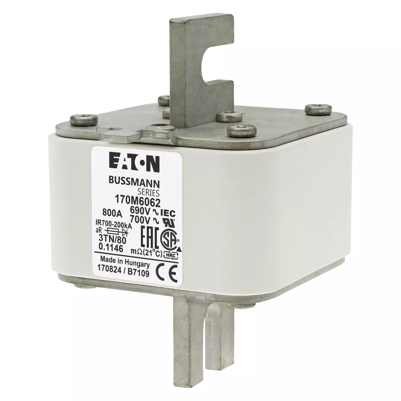 170M6062 Wkładka szybka, 800 A, AC 690 V, DIN 3, 76 x 90 x 109 mm, aR, DIN, IEC, pojedynczy wskaźnik