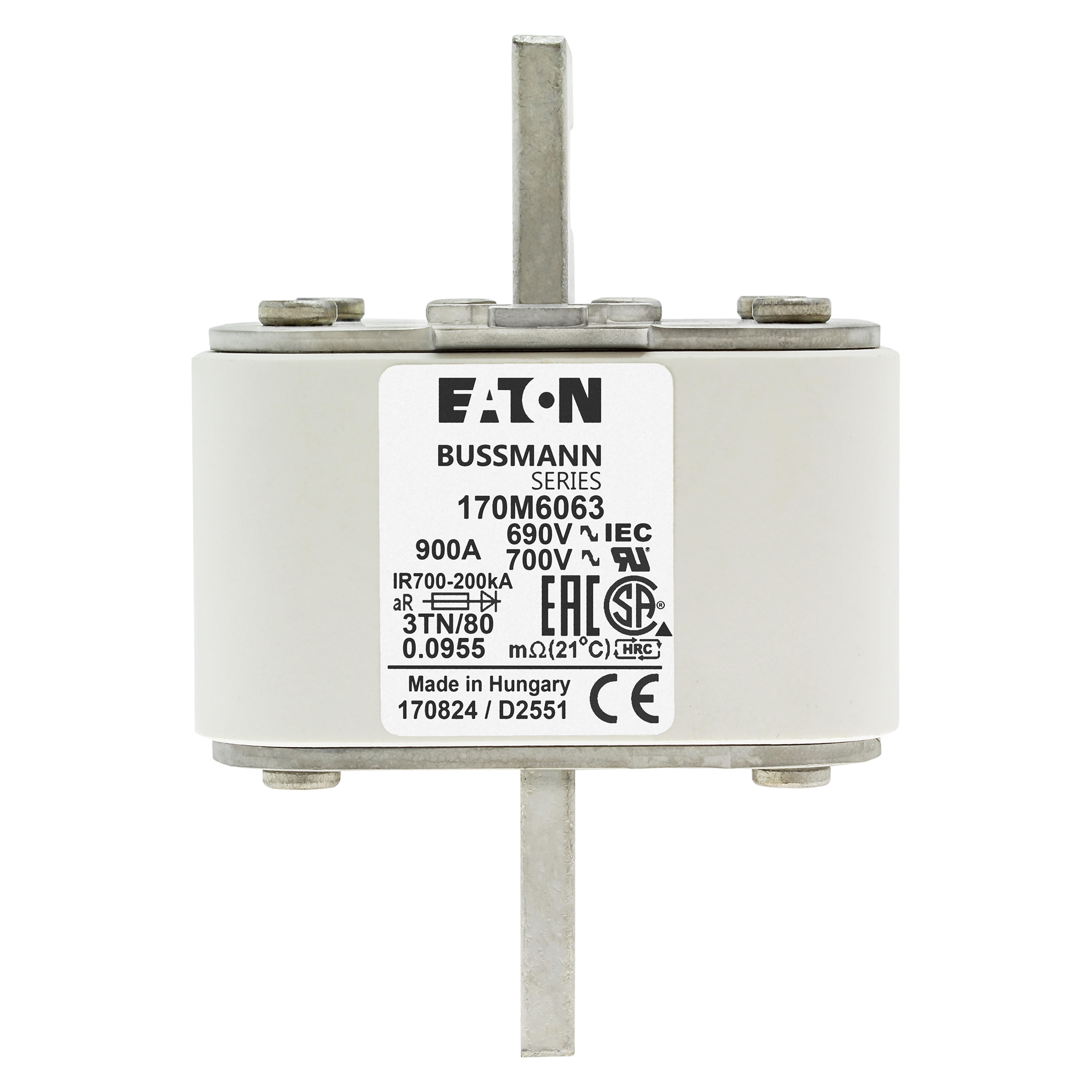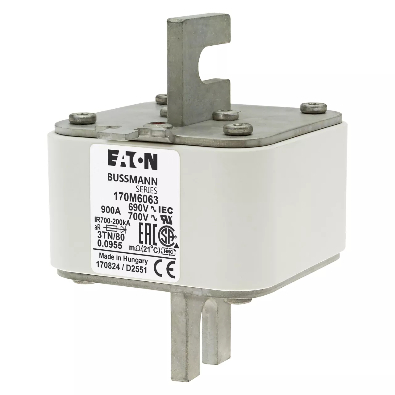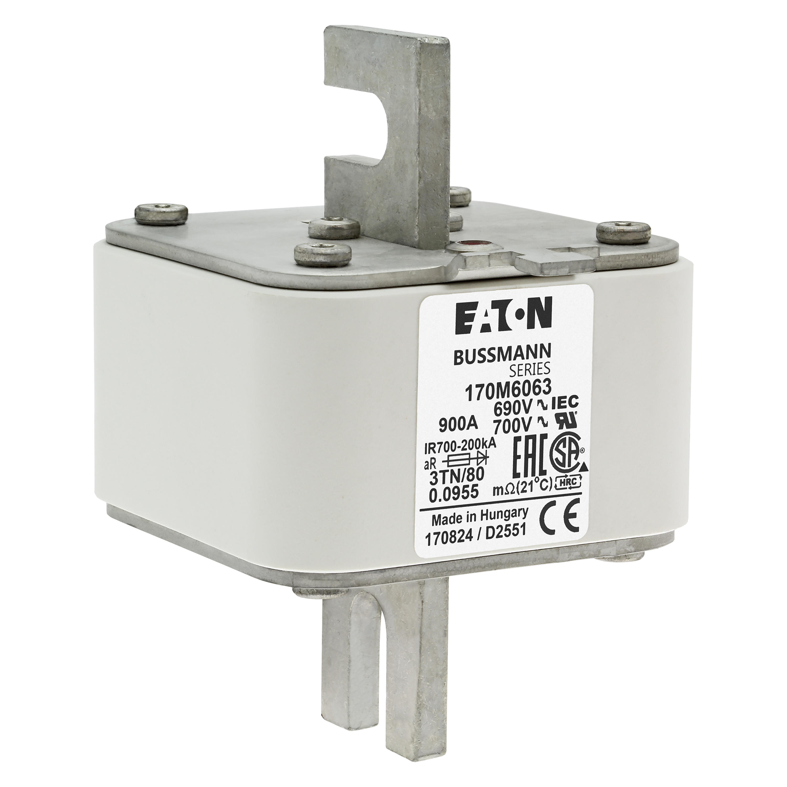 170M6063 Wkładka szybka, 900 A, AC 690 V, DIN 3, 76 x 90 x 109 mm, aR, DIN, IEC, pojedynczy wskaźnik