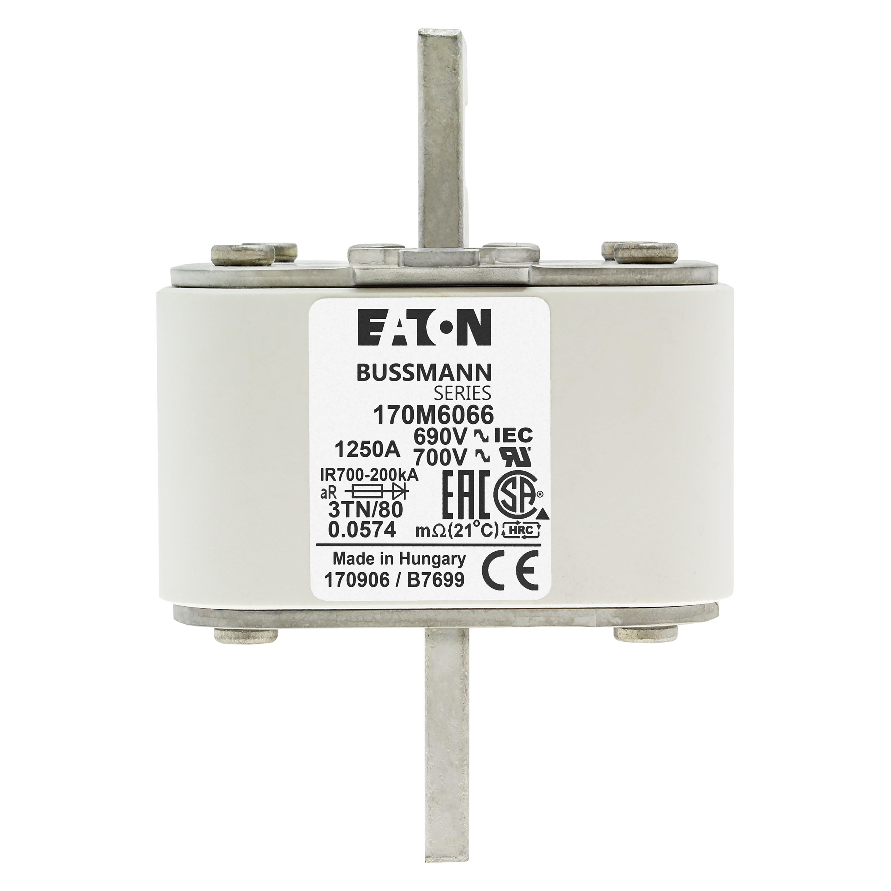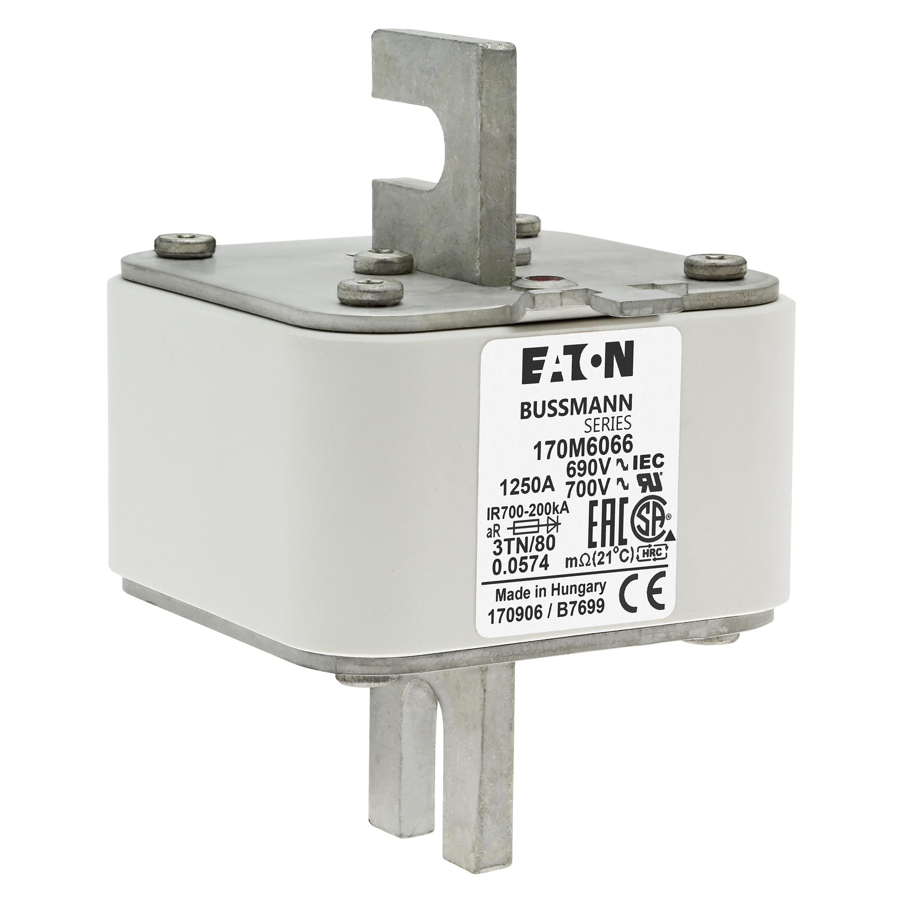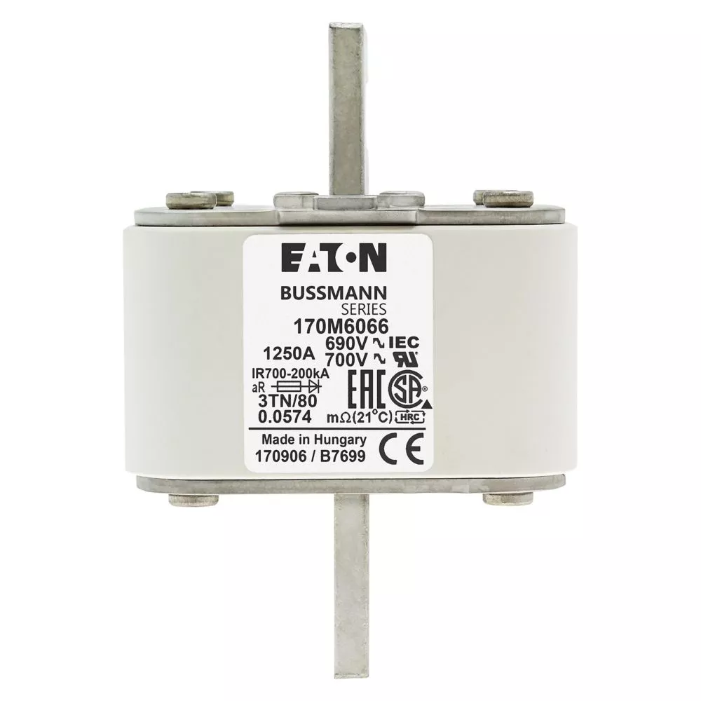 170M6066 Wkładka szybka, 1250 A, AC 690 V, DIN 3, 76 x 90 x 109 mm, aR, DIN, IEC, pojedynczy wskaźnik