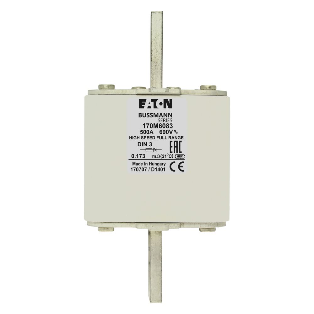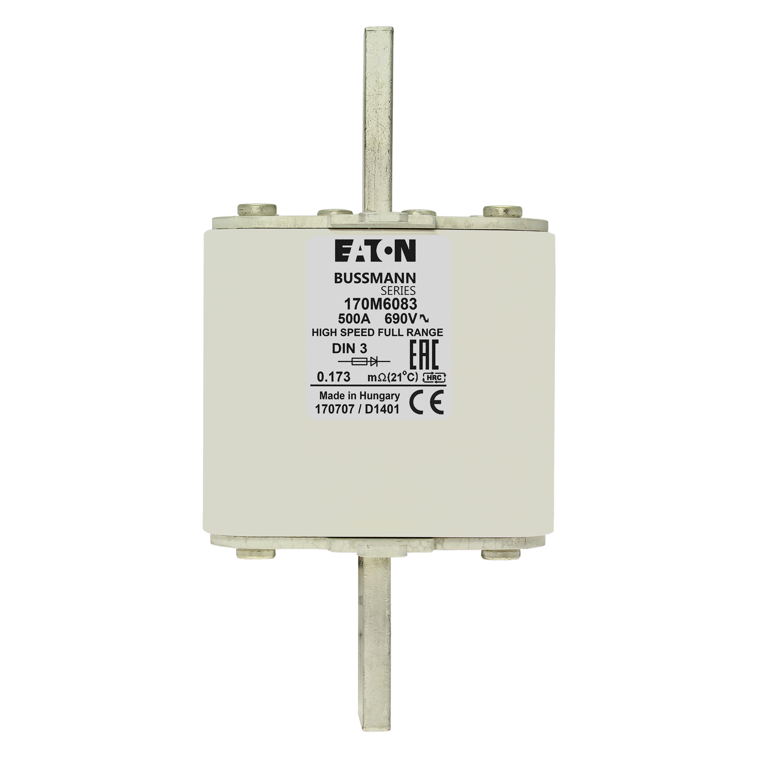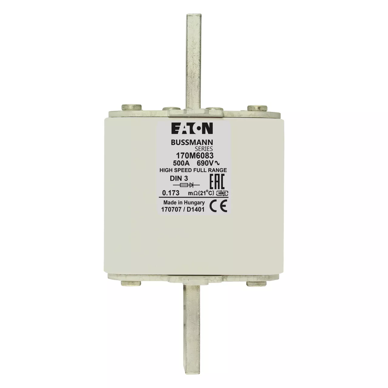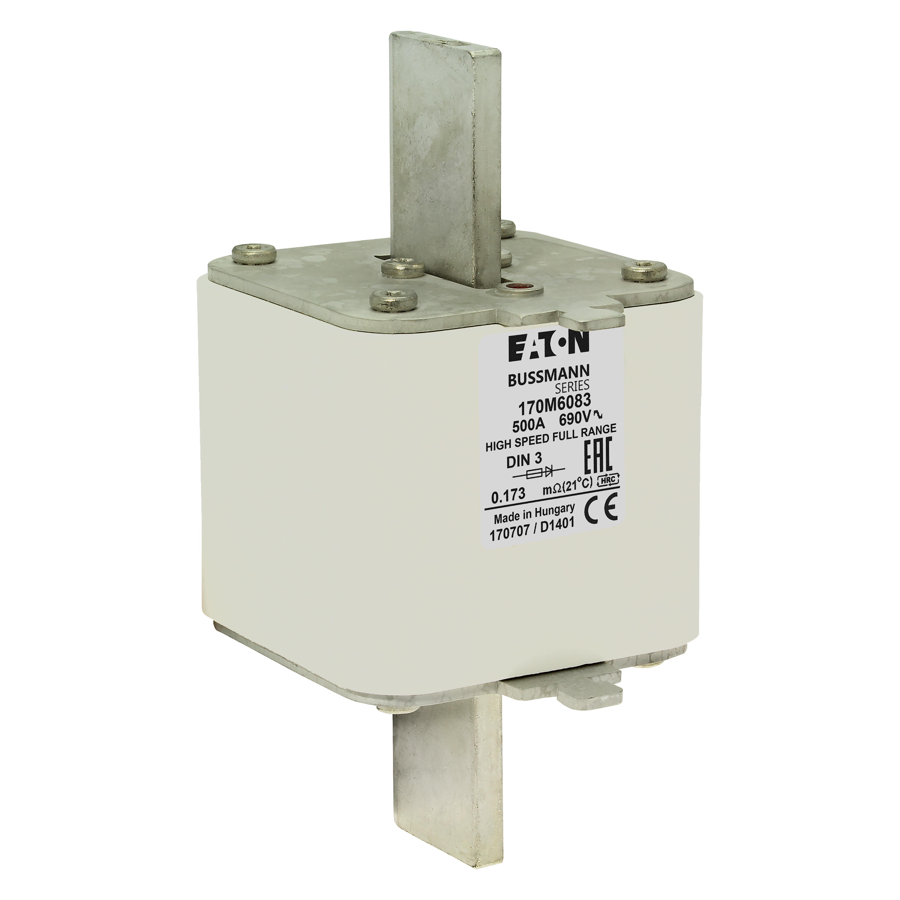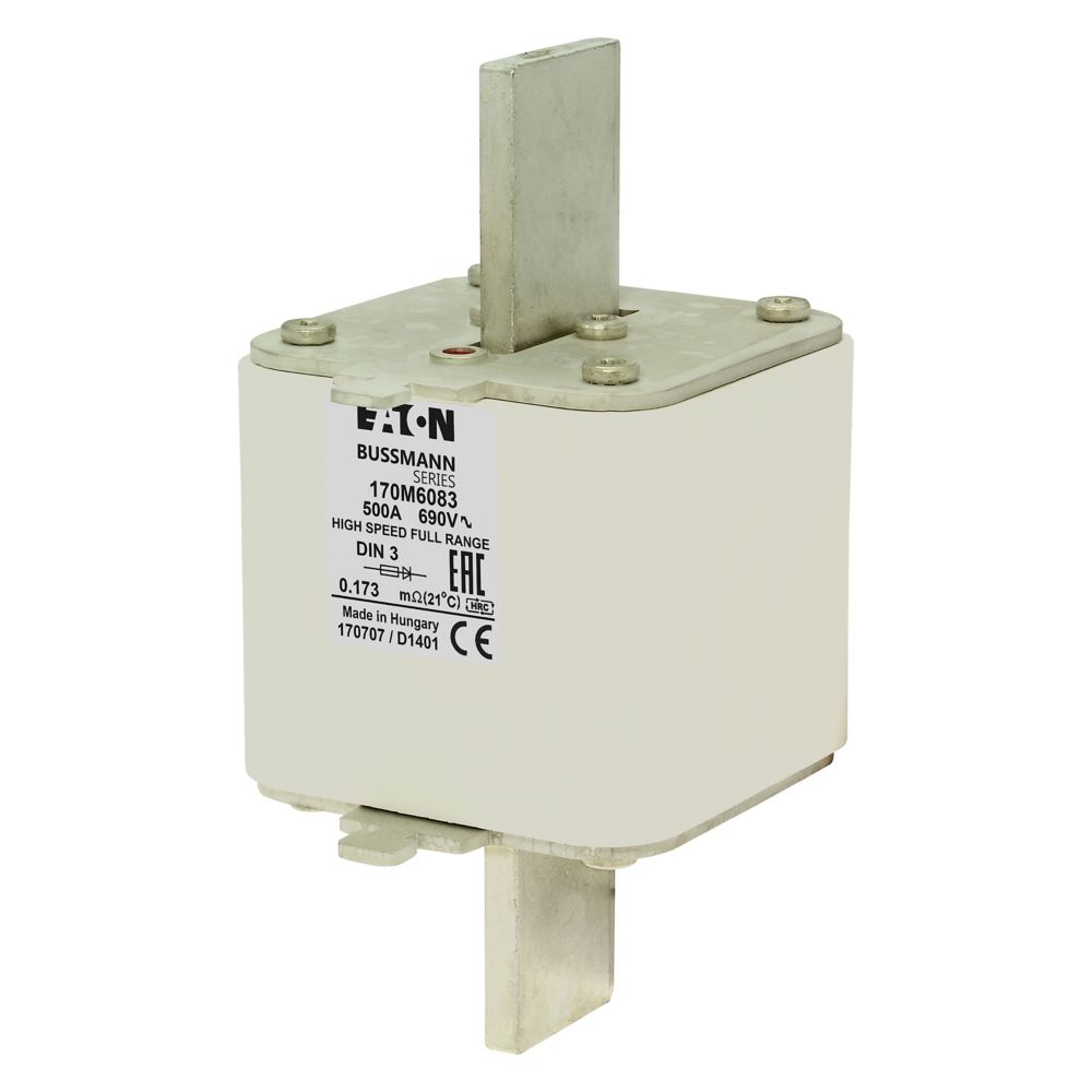 170M6083 Wkładka szybka, 500 A, AC 690 V, DIN 3, 75 x 89 x 150 mm, gR, DIN, IEC, pojedynczy wskaźnik