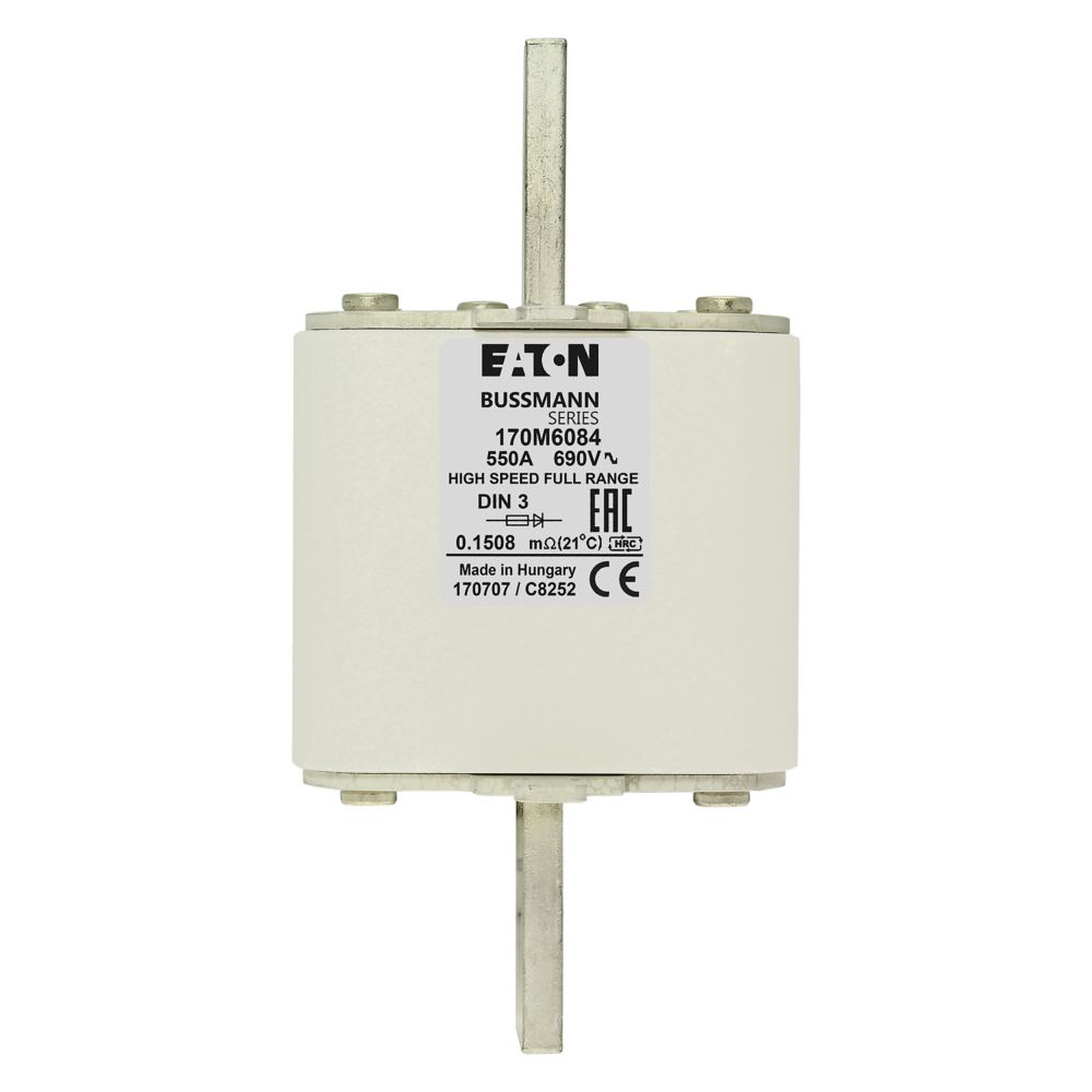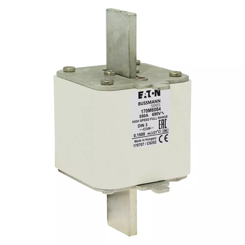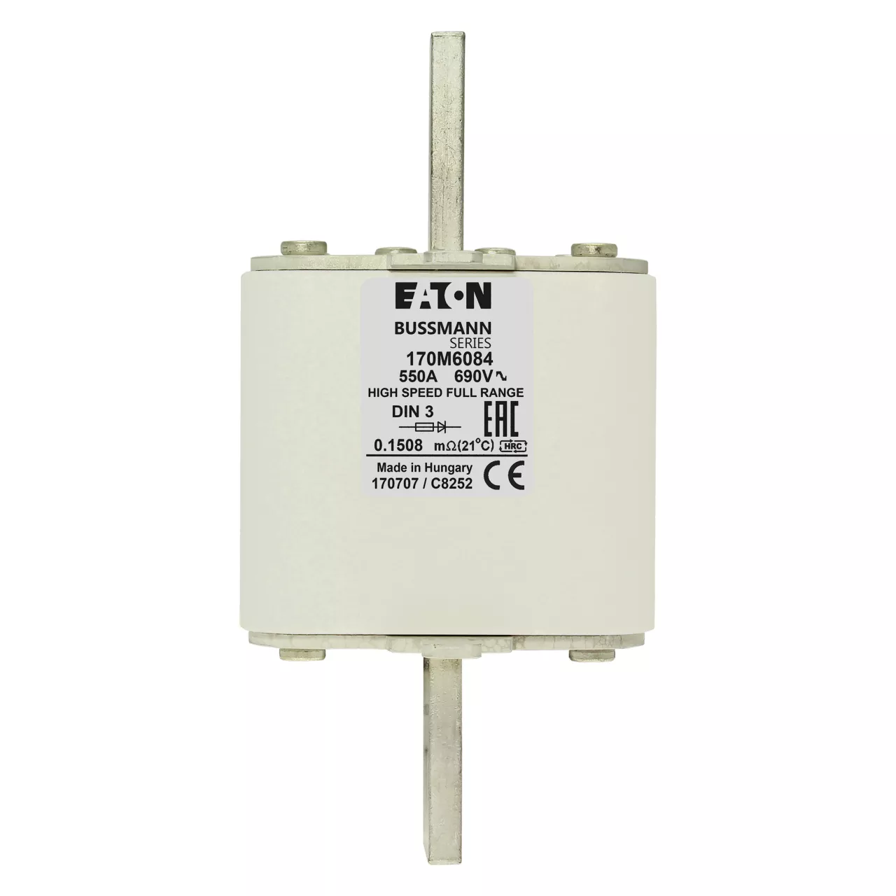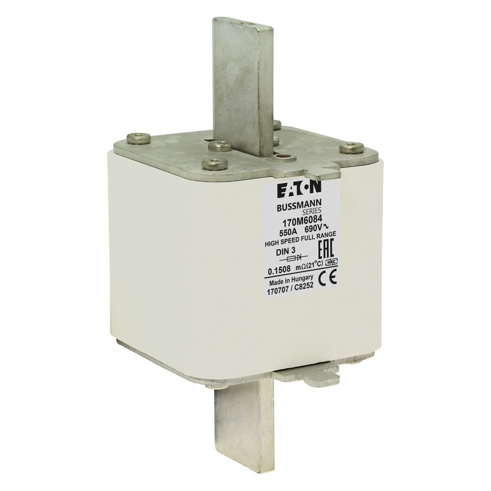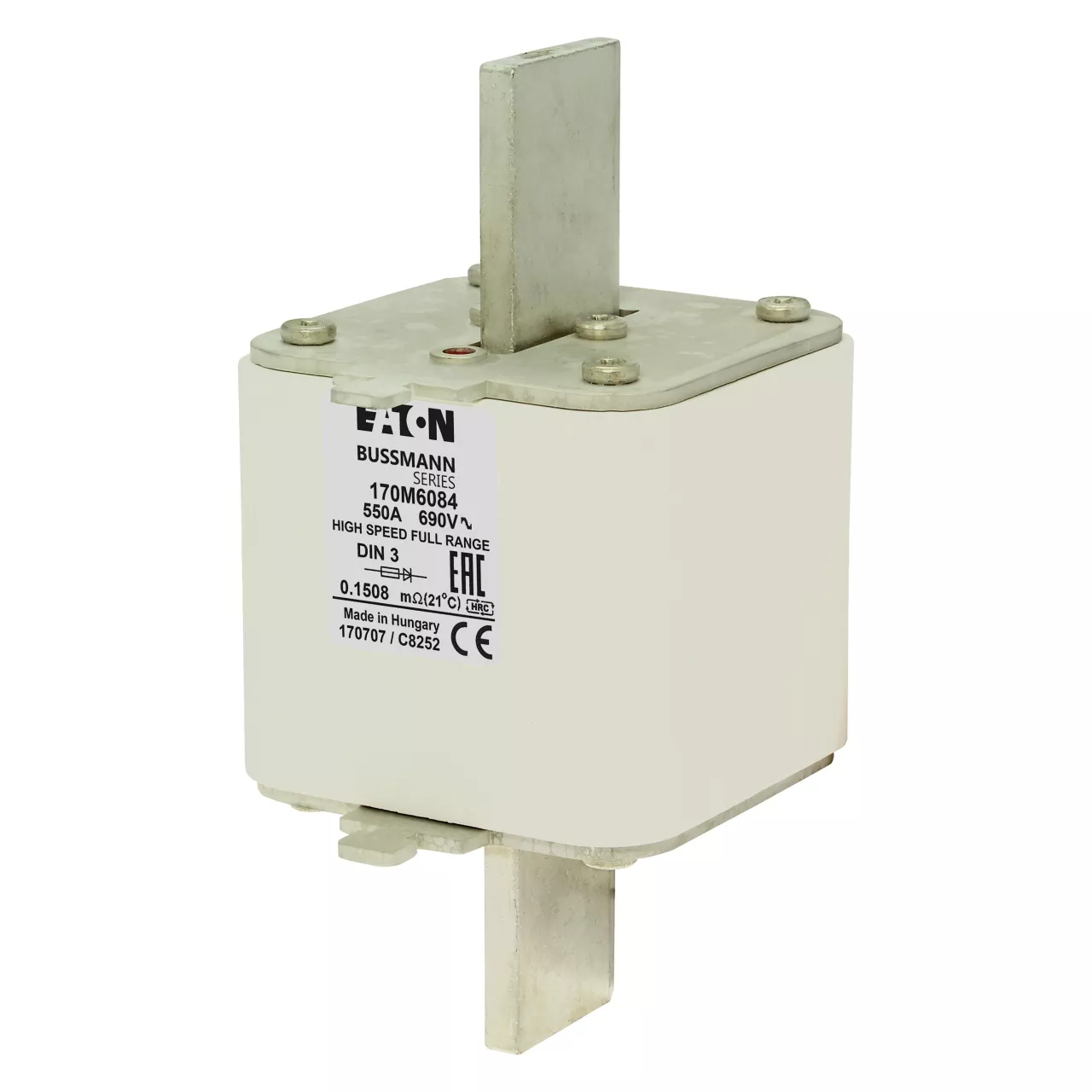 170M6084 Wkładka szybka, 550 A, AC 690 V, DIN 3, 75 x 89 x 150 mm, gR, DIN, IEC, pojedynczy wskaźnik