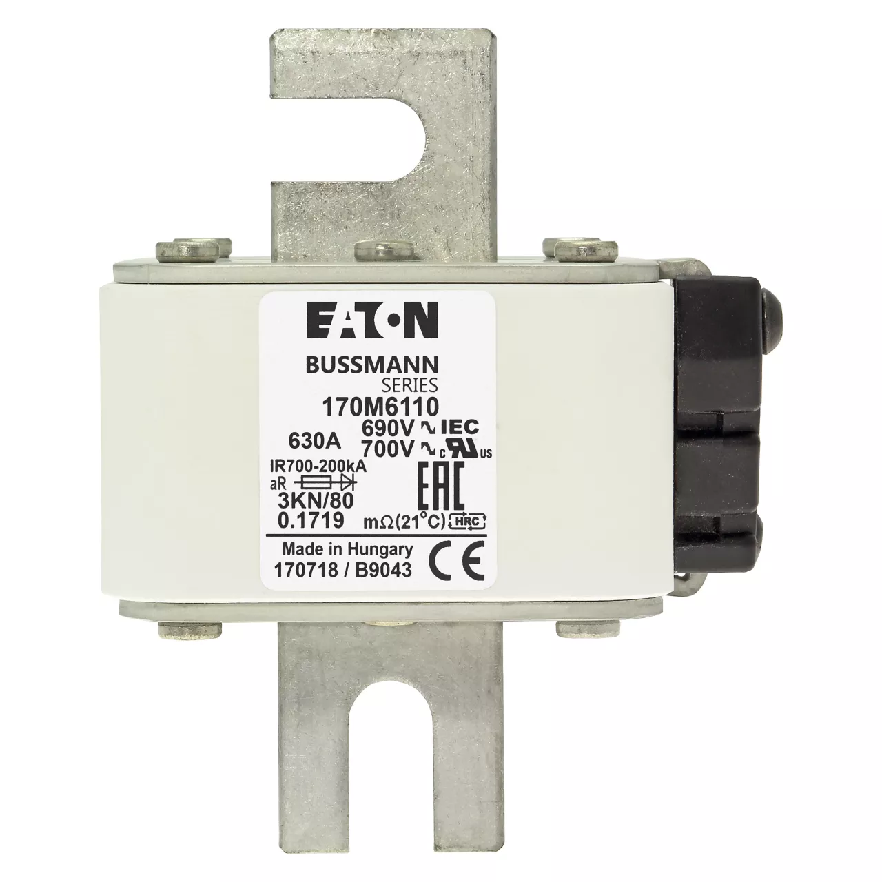 170M6110 Wkładka szybka, 630 A, AC 690 V, DIN 3, 76 x 92 x 109 mm, aR, DIN, IEC, pojedynczy wskaźnik