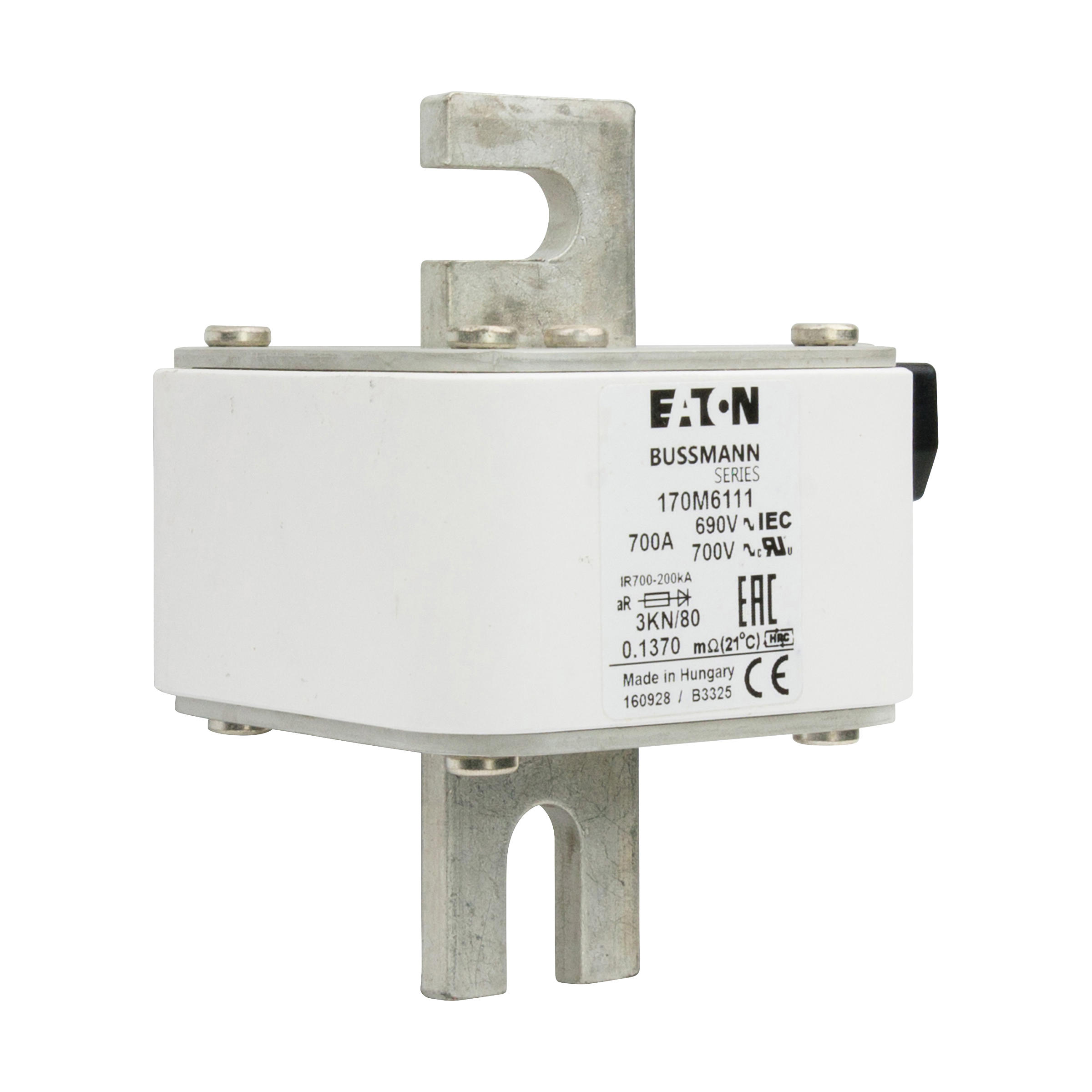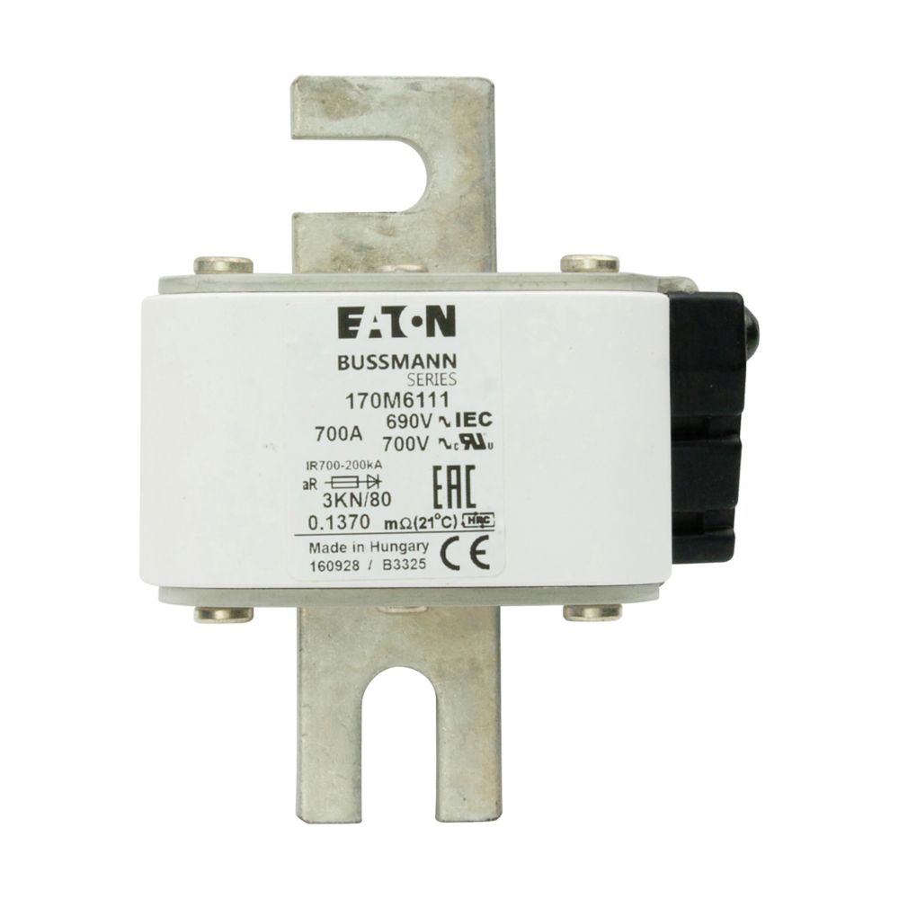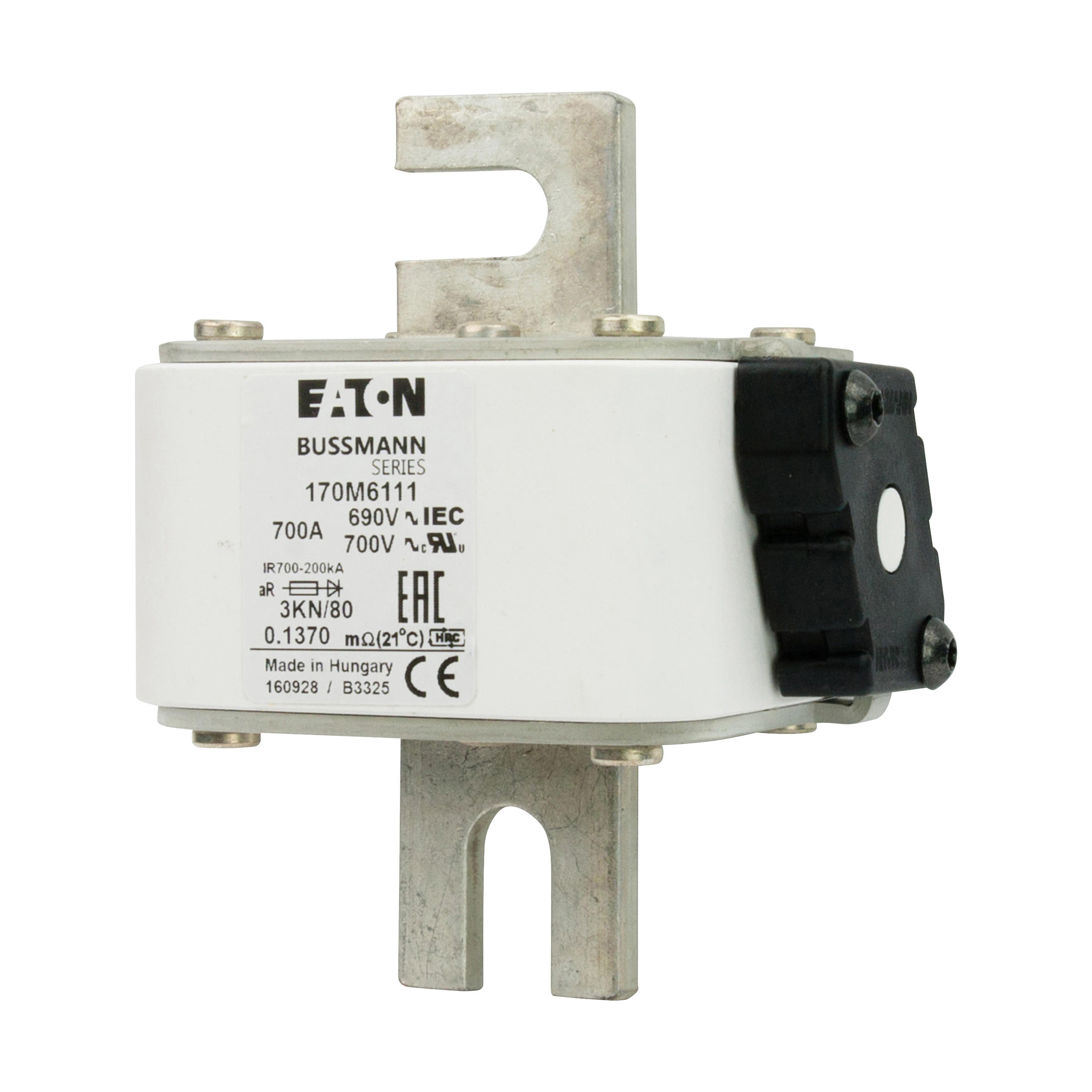 170M6111 Wkładka szybka, 700 A, AC 690 V, DIN 3, 76 x 92 x 109 mm, aR, DIN, IEC, pojedynczy wskaźnik