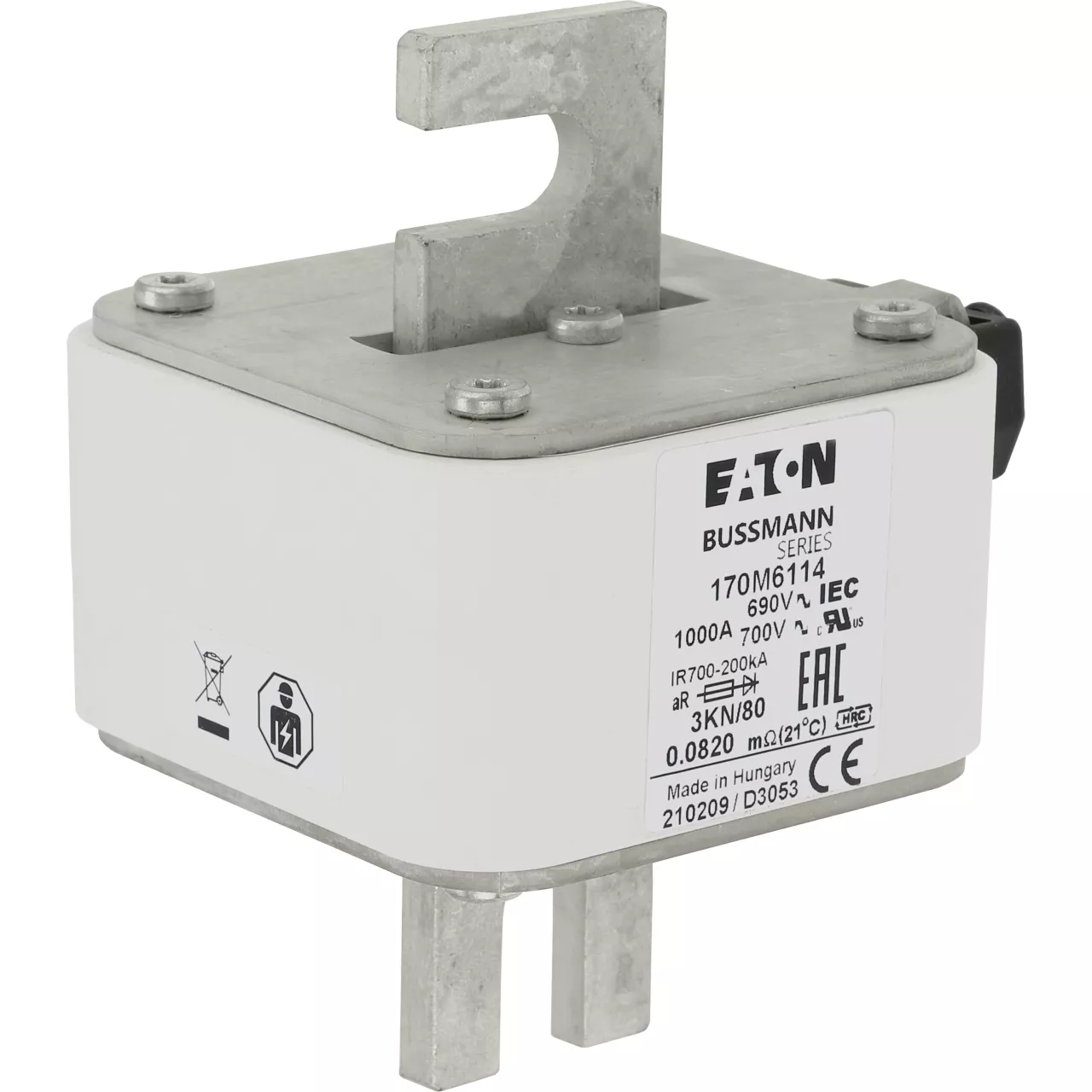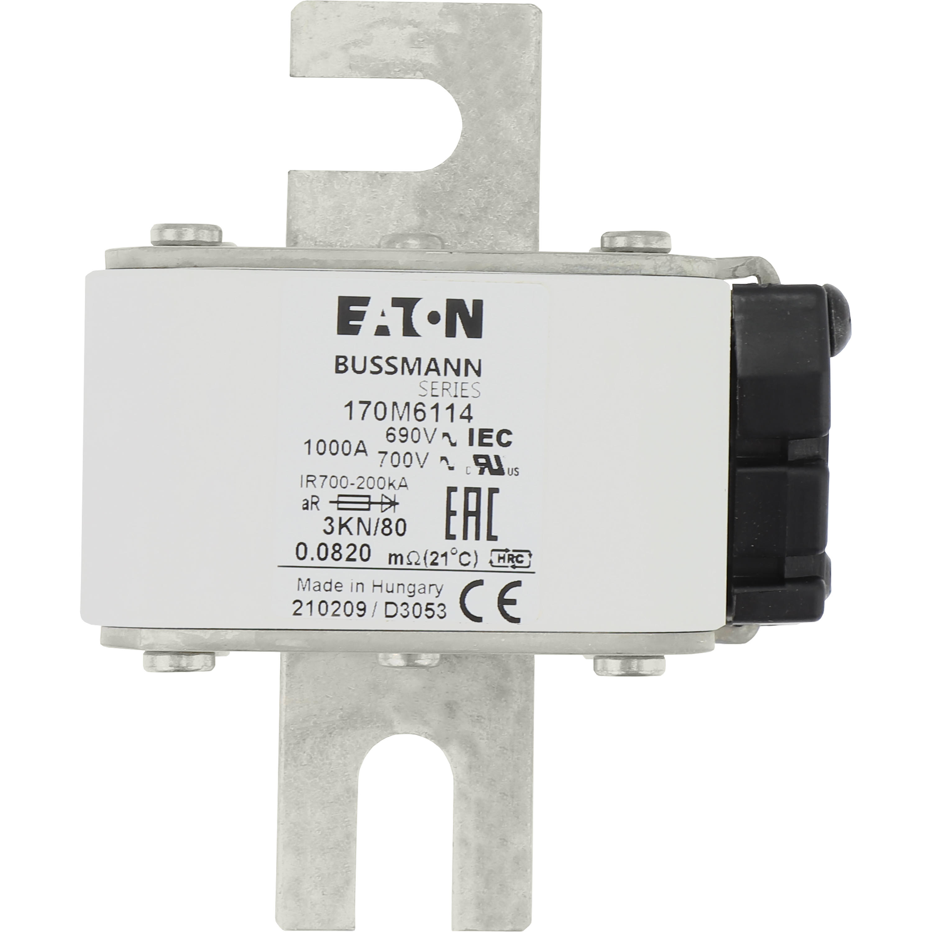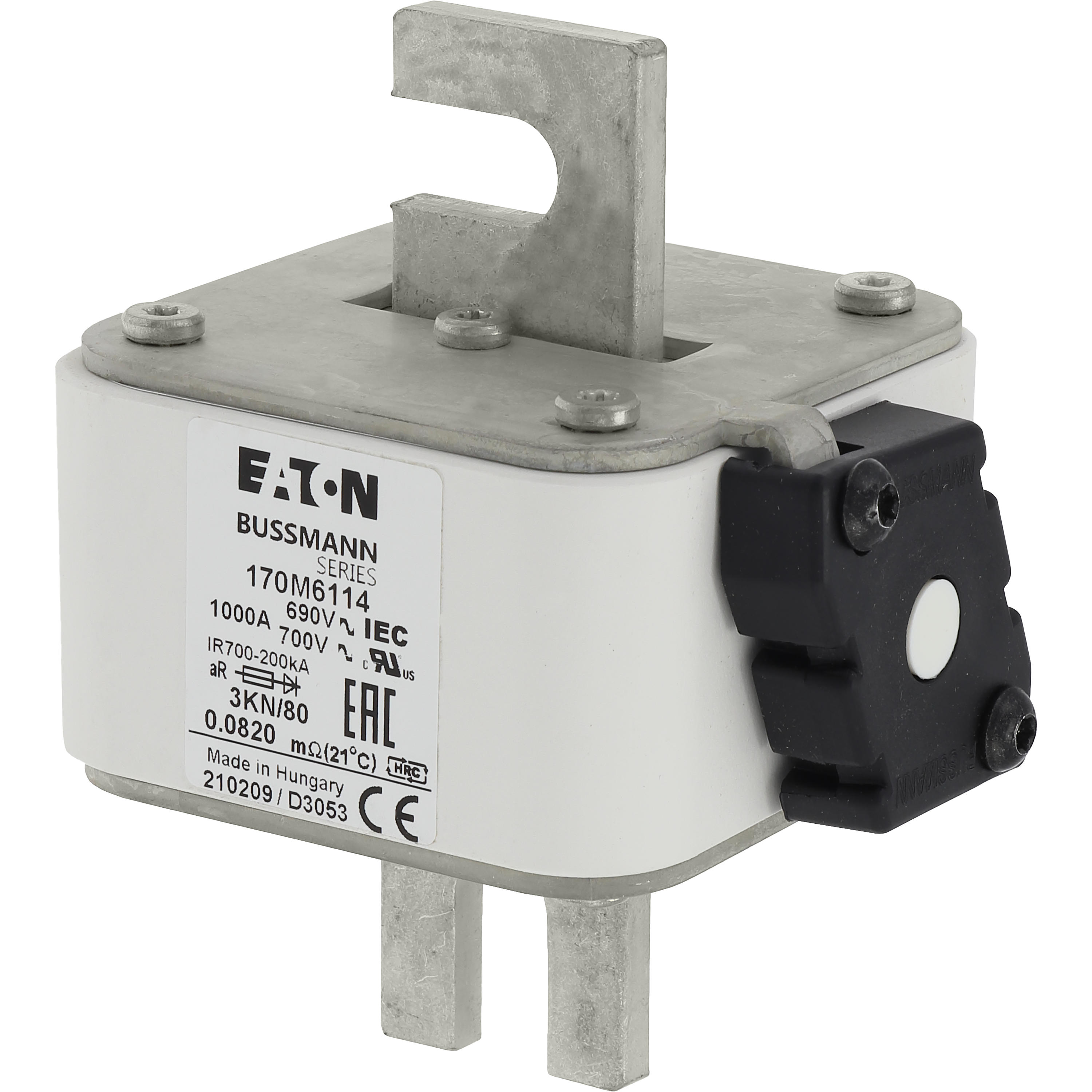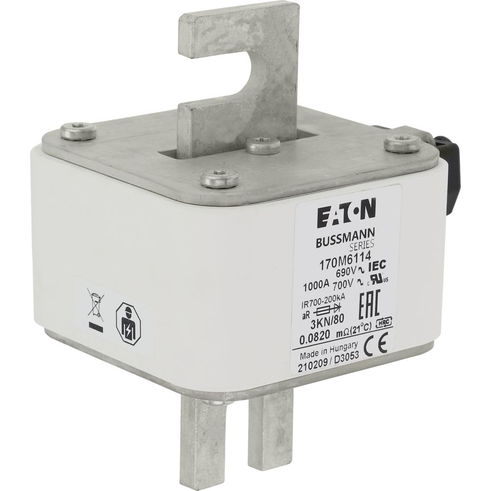 170M6114 Wkładka szybka, 1000 A, AC 690 V, DIN 3, 76 x 92 x 109 mm, aR, DIN, IEC, pojedynczy wskaźnik