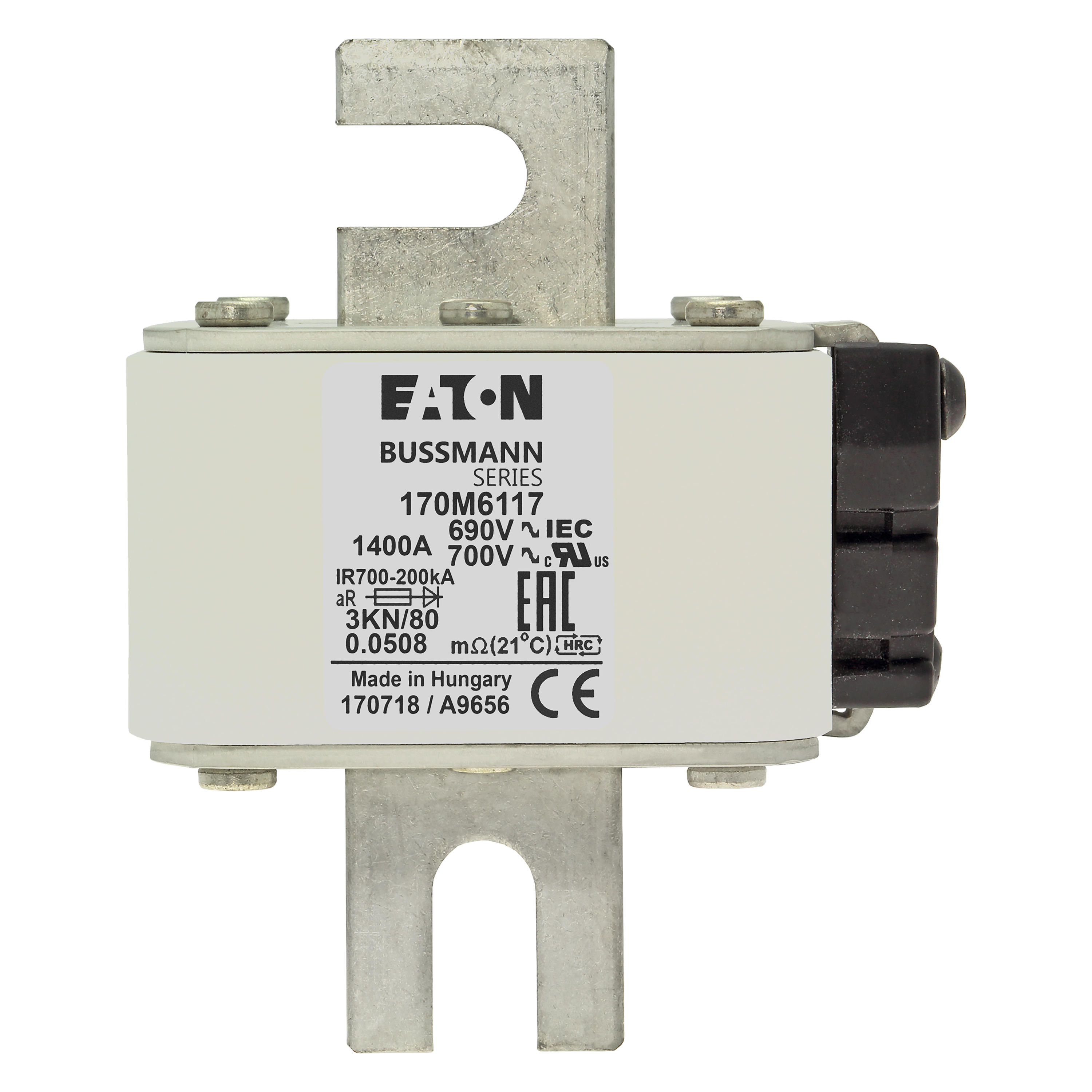 170M6117 Wkładka szybka, 1400 A, AC 690 V, DIN 3, aR, DIN, IEC, pojedynczy wskaźnik, nieizolowane uchwyty