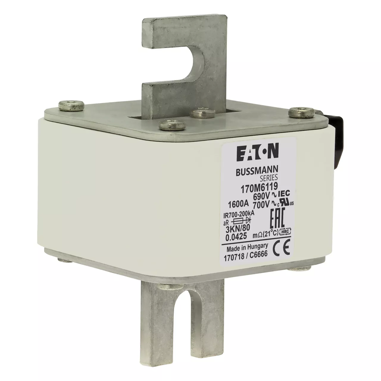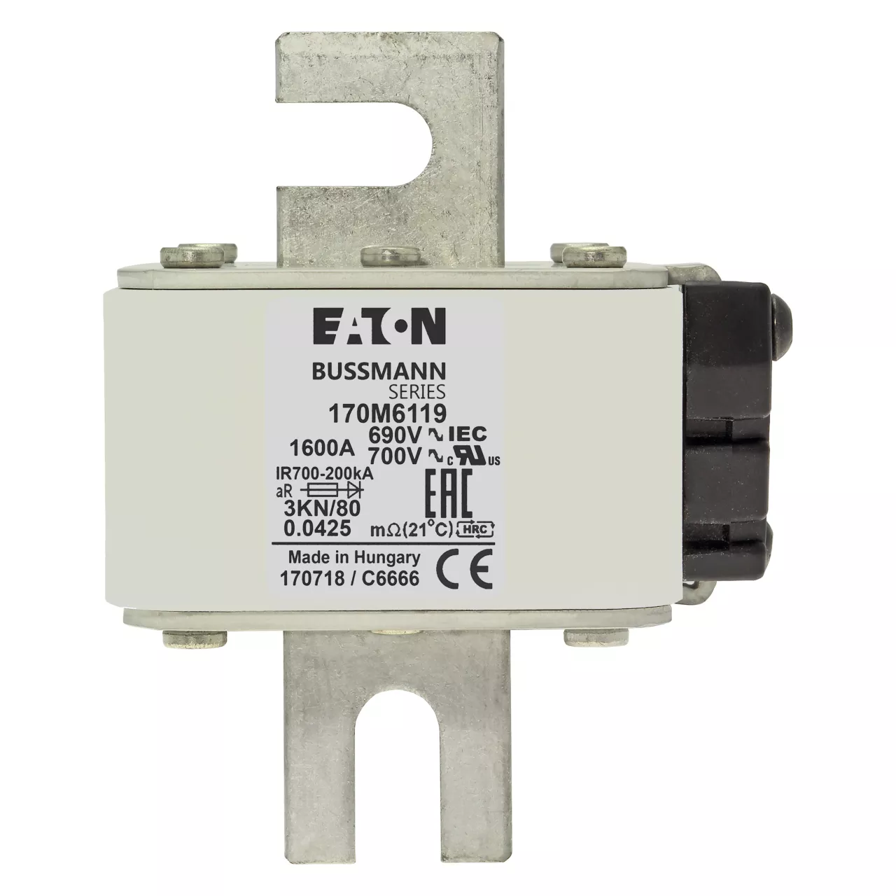 170M6119 Wkładka szybka, 1600 A, AC 690 V, DIN 3, 76 x 92 x 109 mm, aR, DIN, IEC, pojedynczy wskaźnik