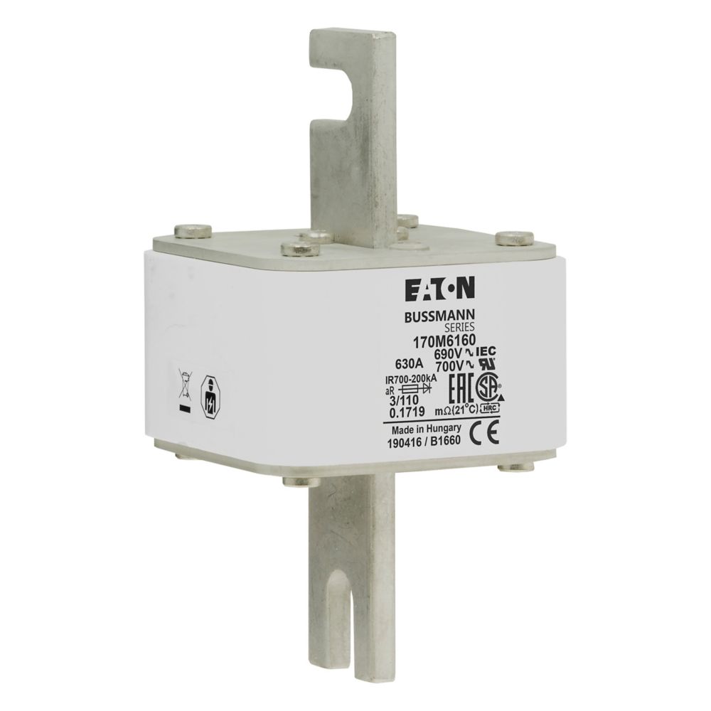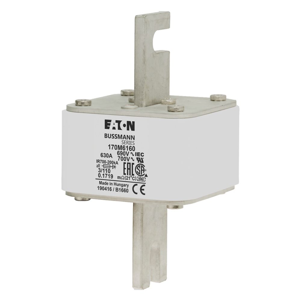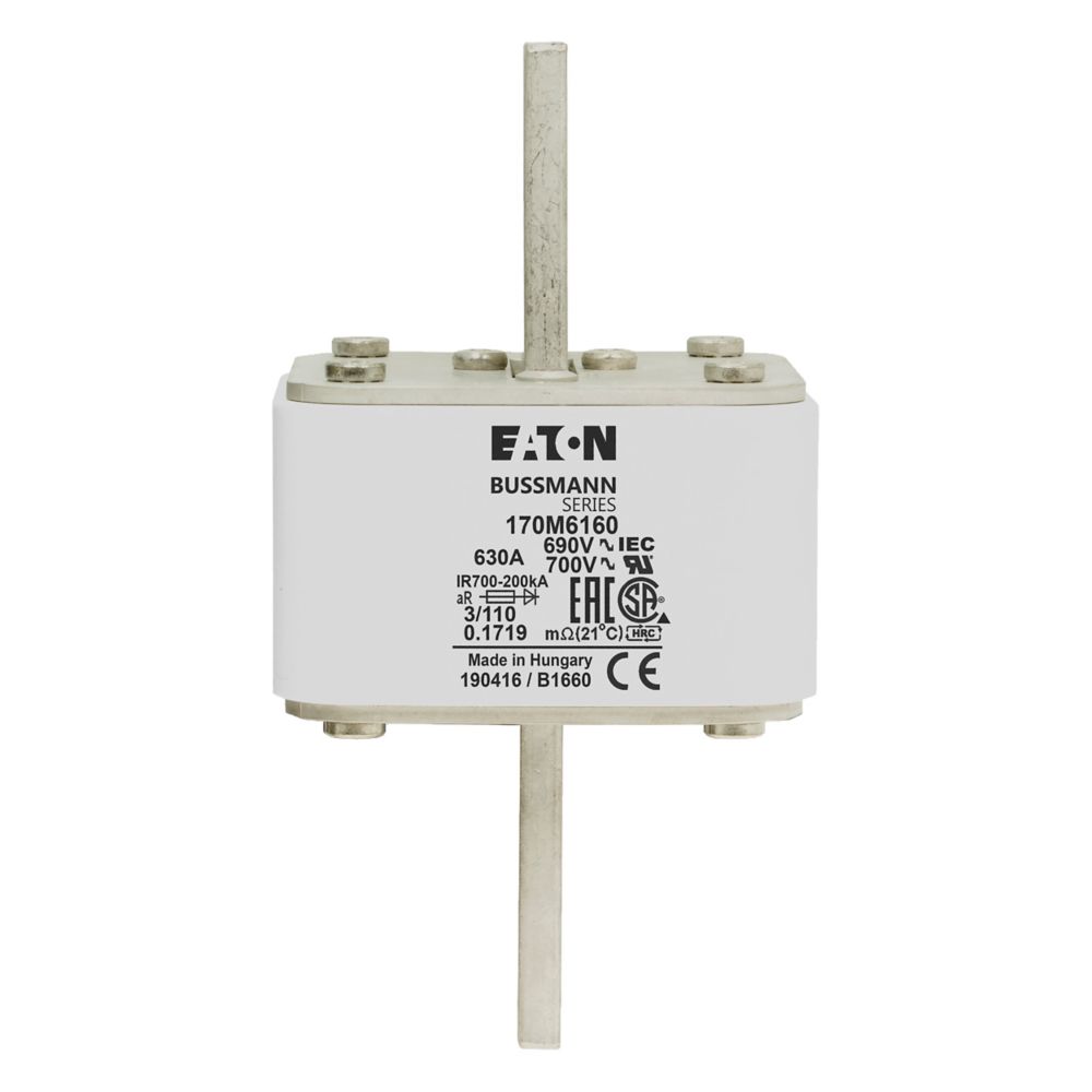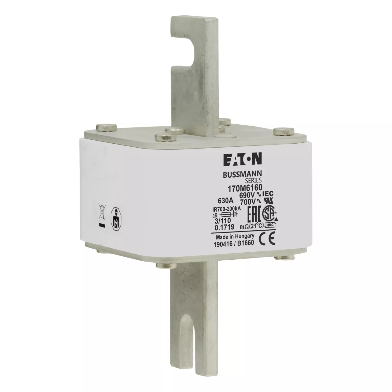 170M6160 Wkładka szybka, 630 A, AC 690 V, DIN 3, 76 x 90 x 139 mm, aR, DIN, IEC, pojedynczy wskaźnik