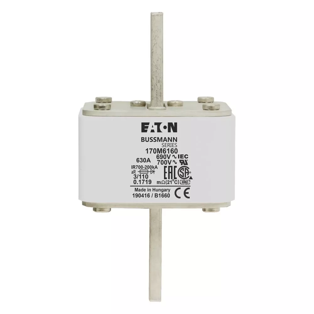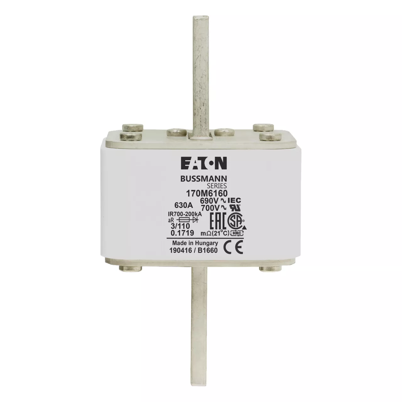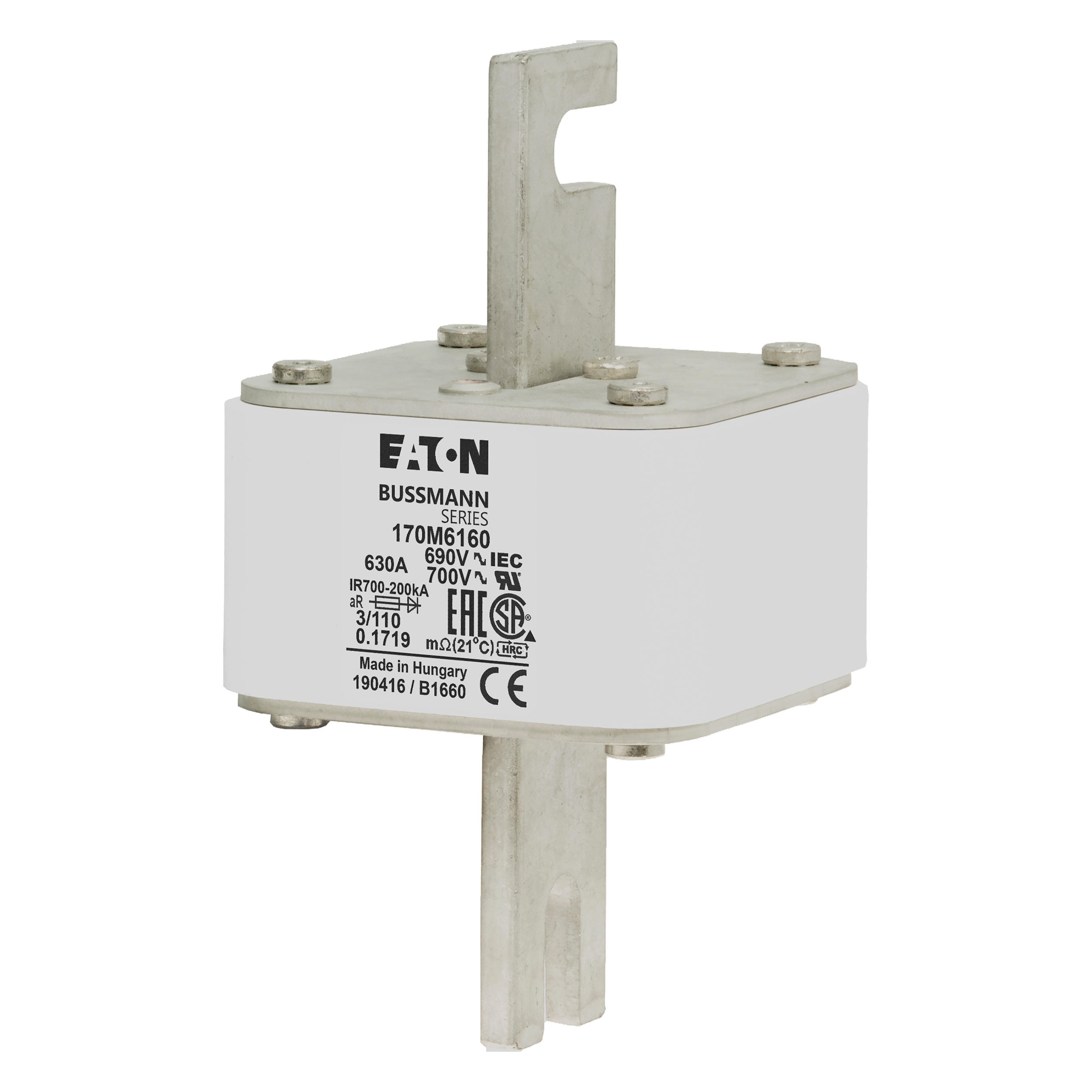170M6160 Wkładka szybka, 630 A, AC 690 V, DIN 3, 76 x 90 x 139 mm, aR, DIN, IEC, pojedynczy wskaźnik