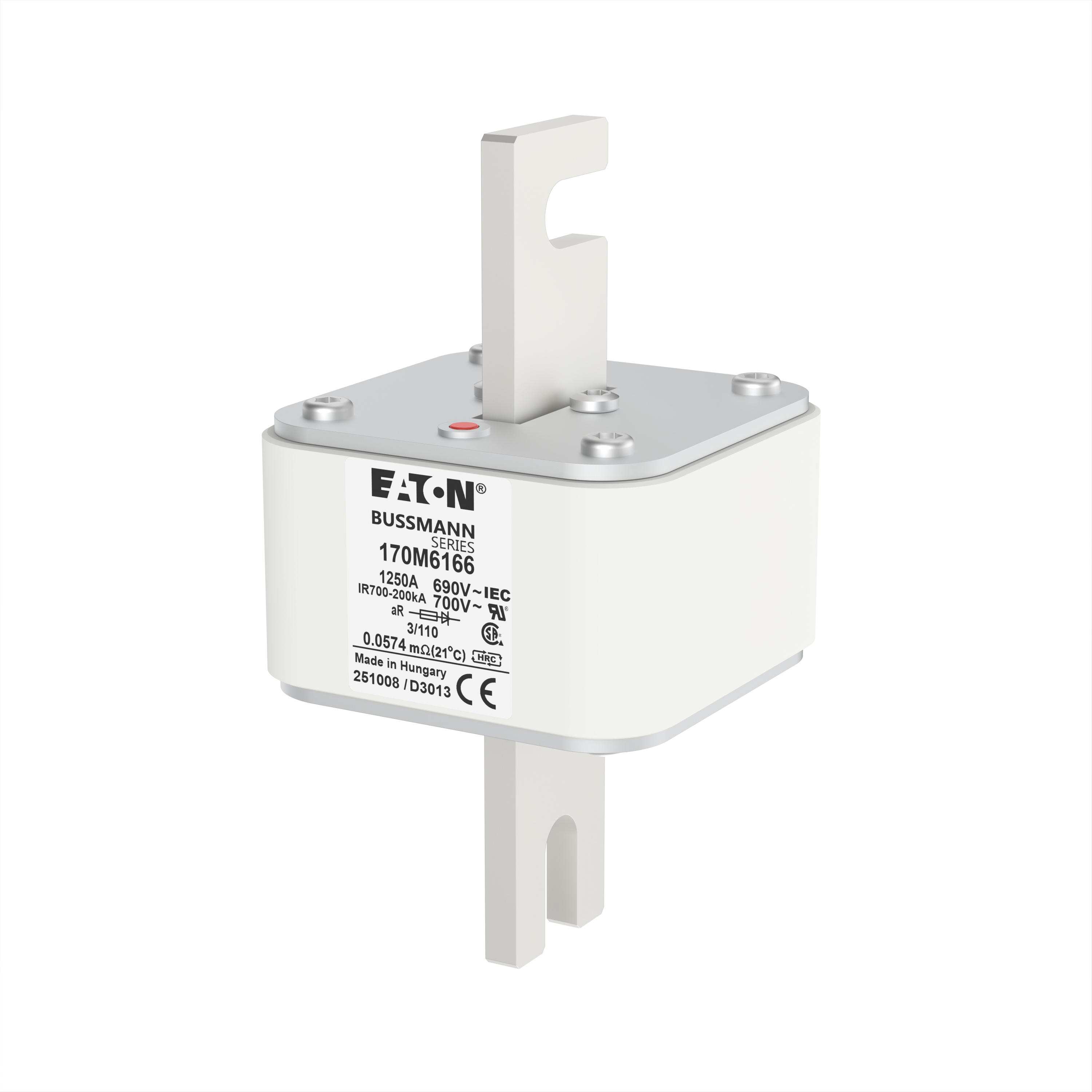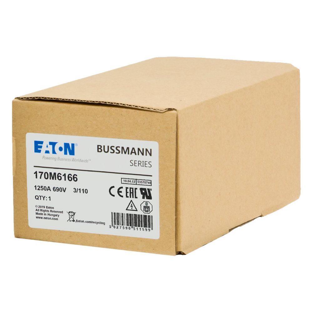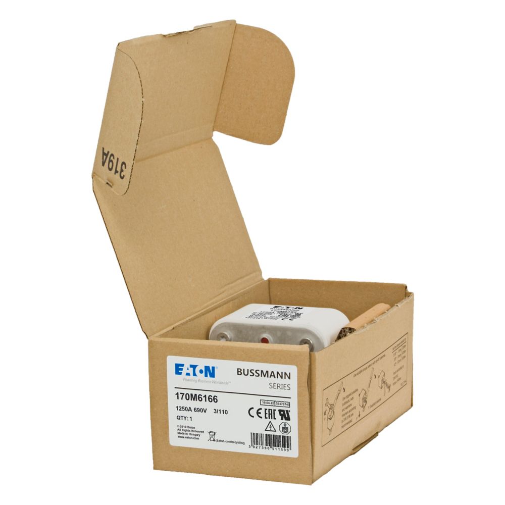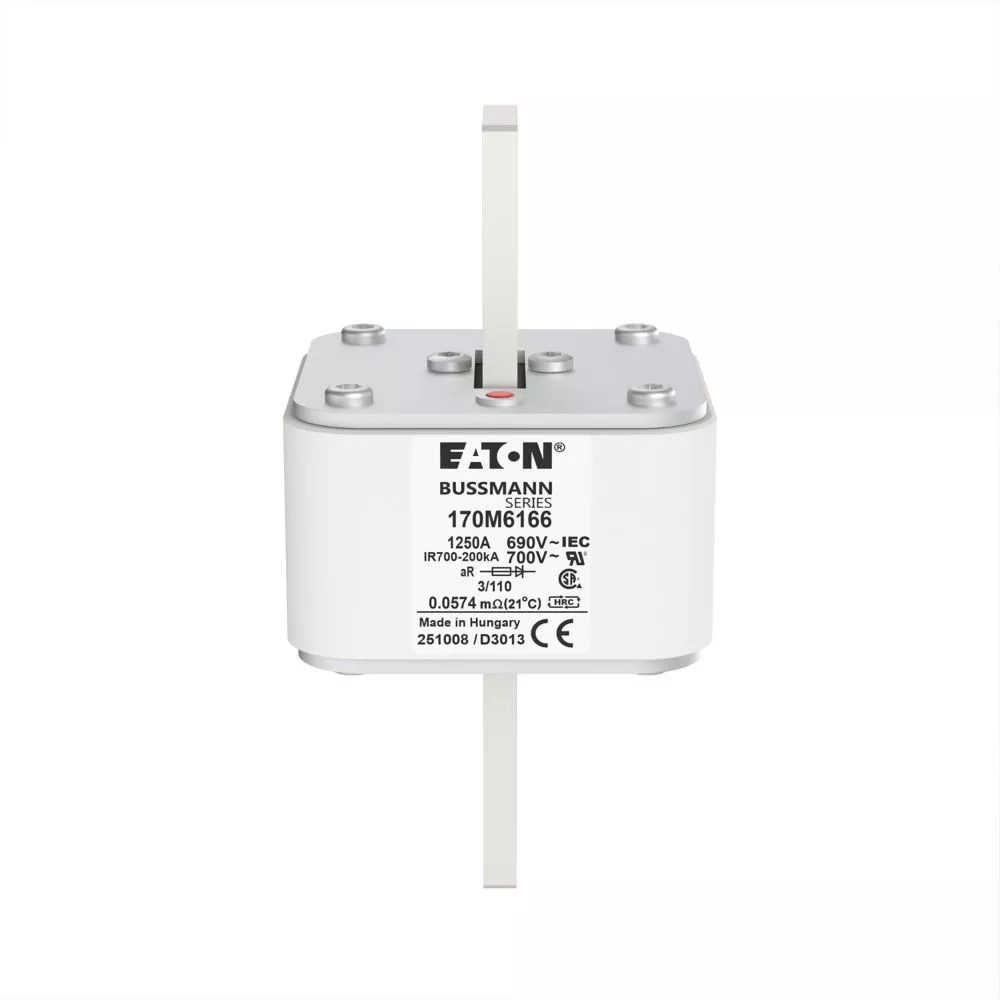 170M6166 Wkładka szybka, 1250 A, AC 690 V, DIN 3, 76 x 90 x 139 mm, aR, DIN, IEC, pojedynczy wskaźnik