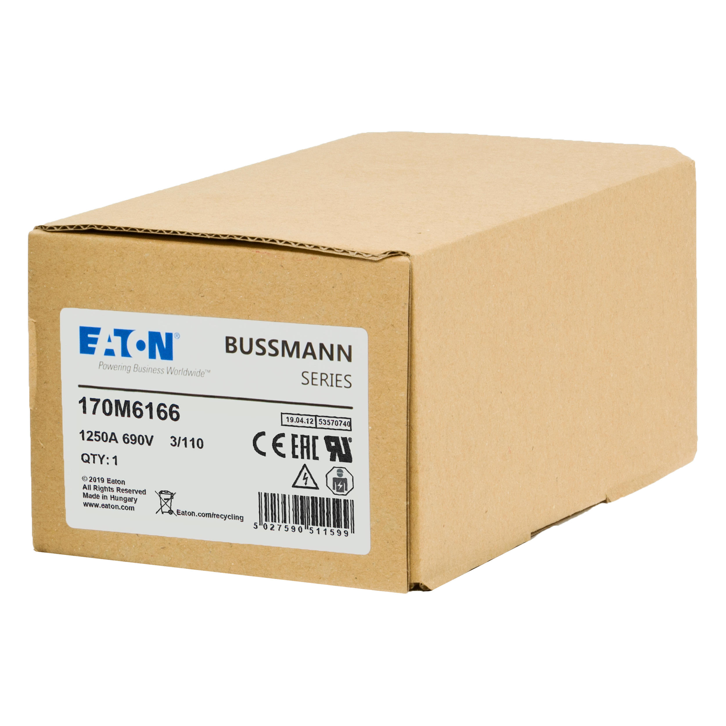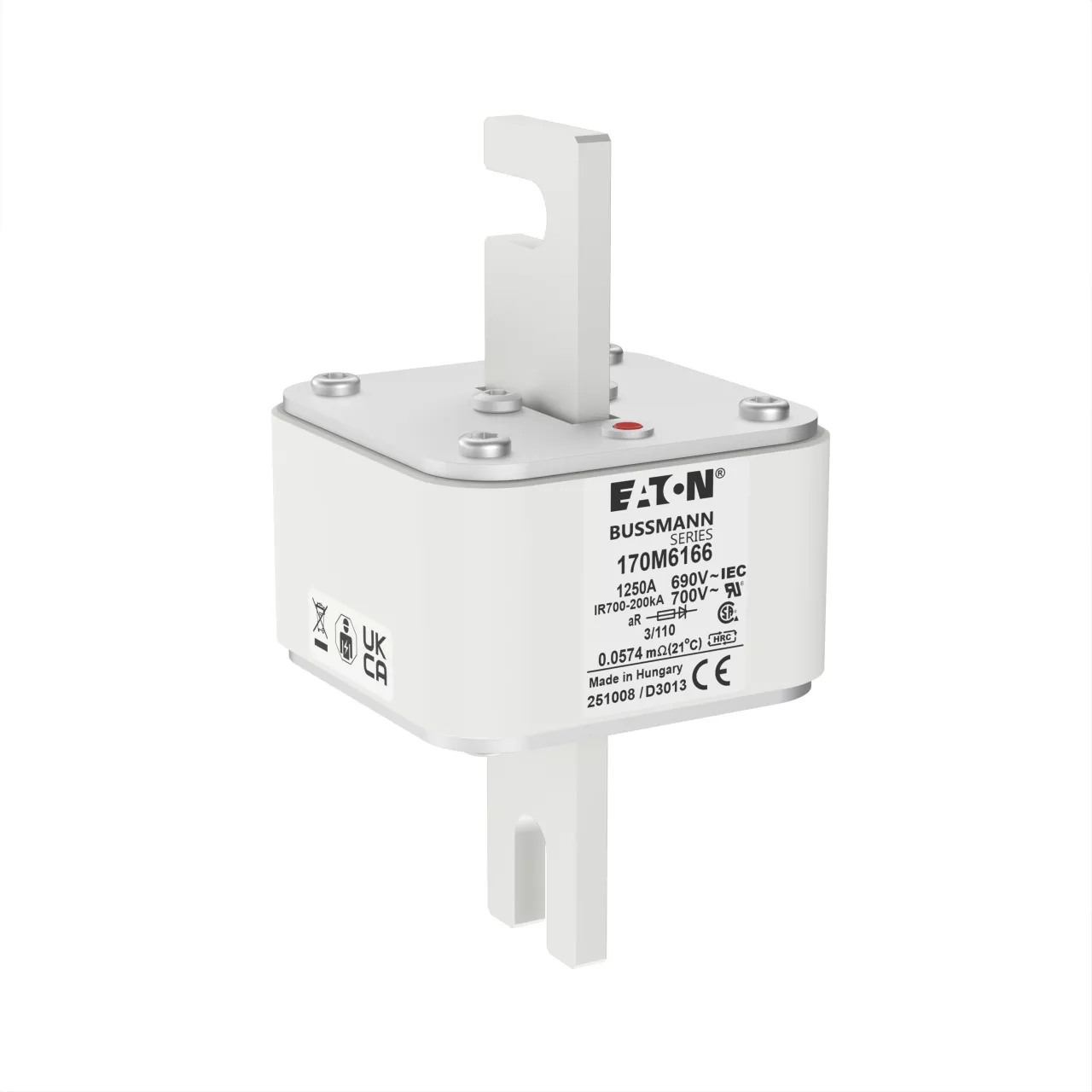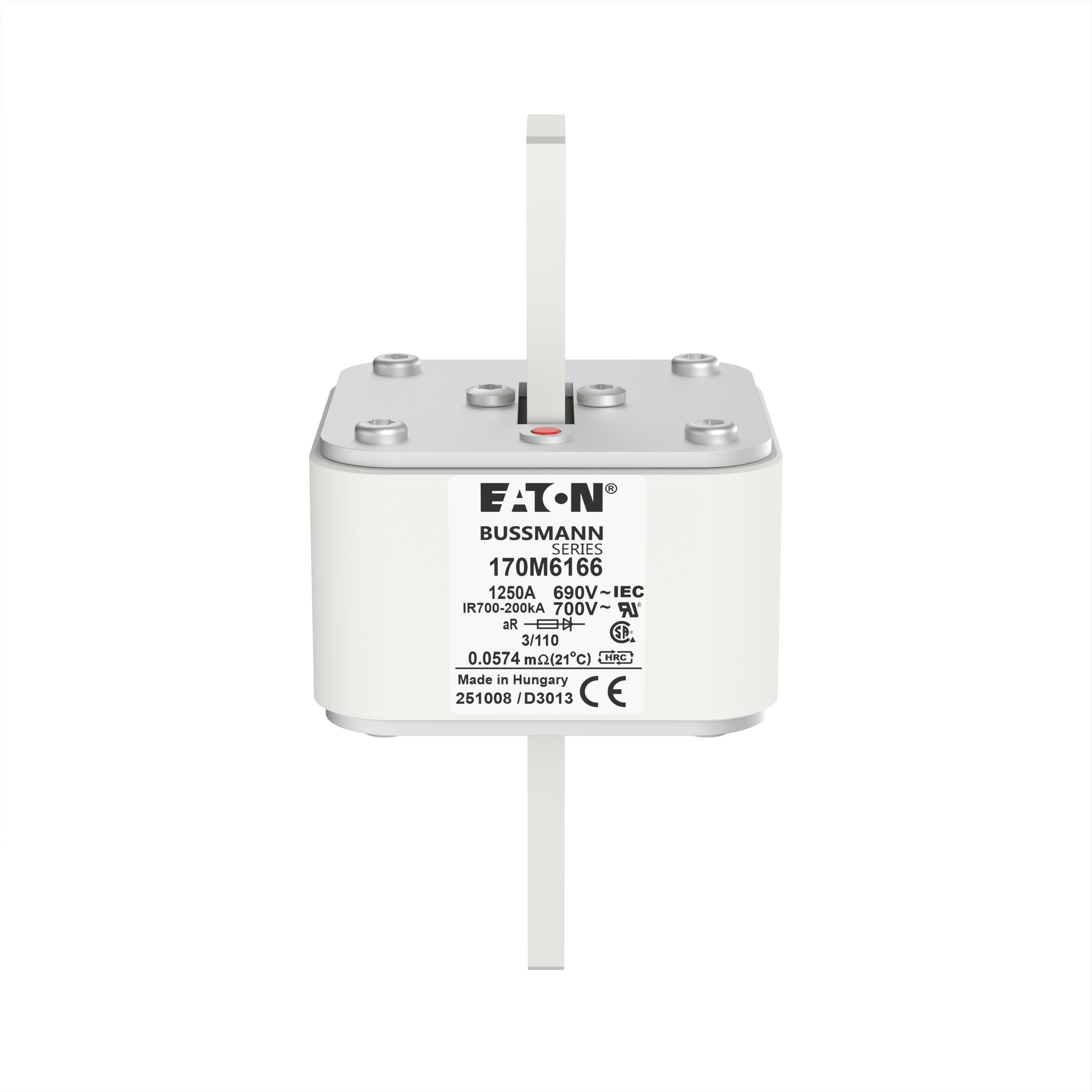 170M6166 Wkładka szybka, 1250 A, AC 690 V, DIN 3, 76 x 90 x 139 mm, aR, DIN, IEC, pojedynczy wskaźnik