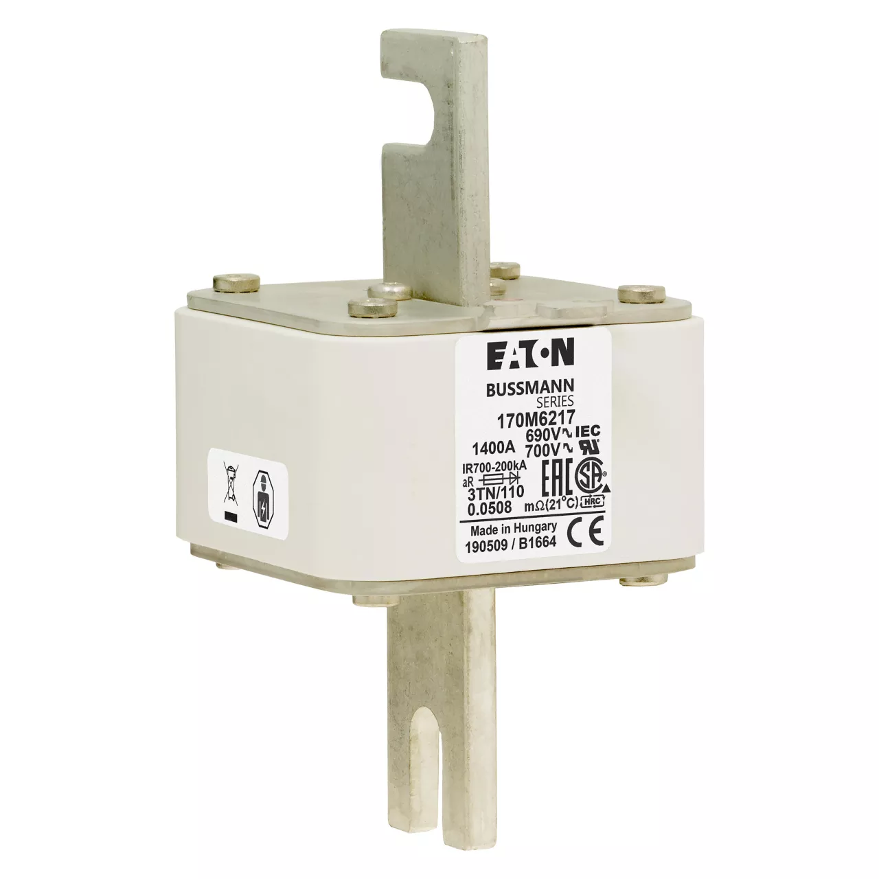 170M6217 Wkładka szybka, 1400 A, AC 690 V, DIN 3, 76 x 90 x 139 mm, aR, DIN, IEC, wskaźnik typu T