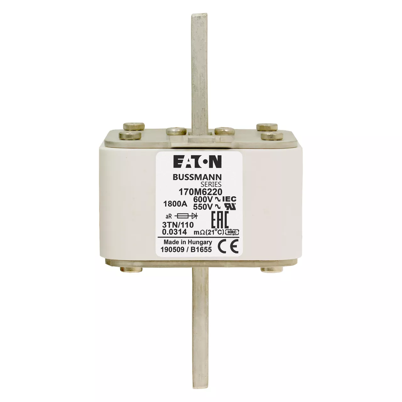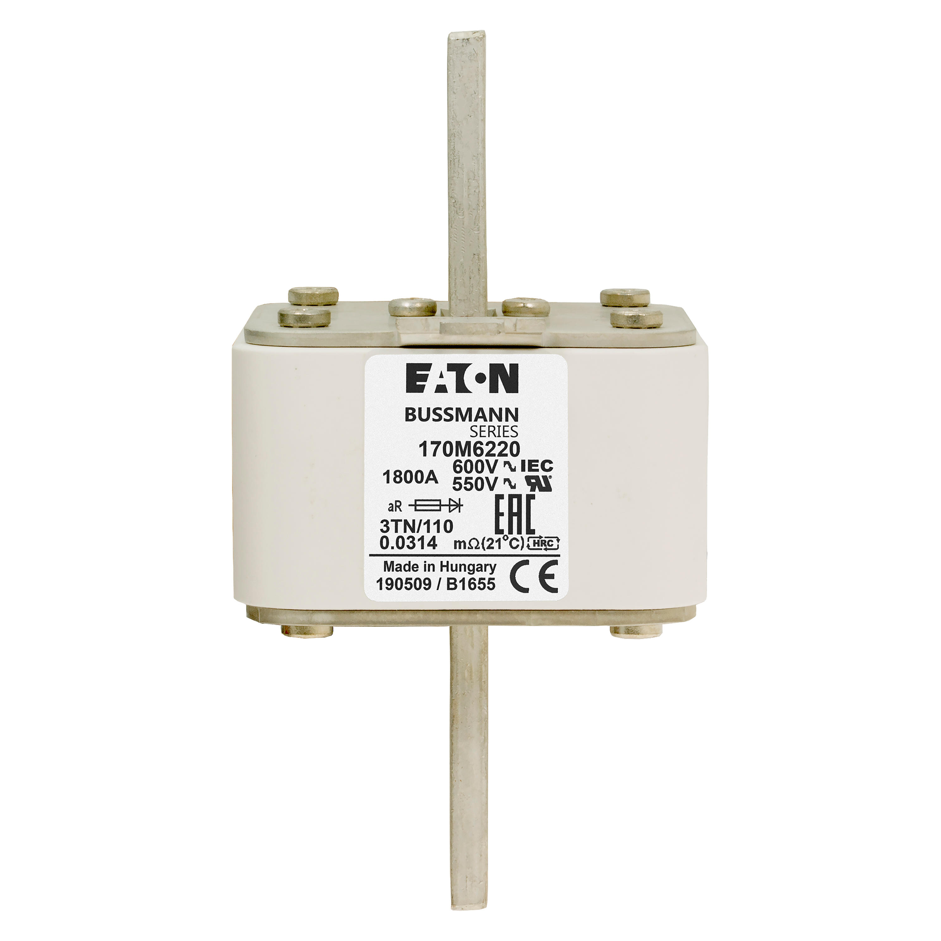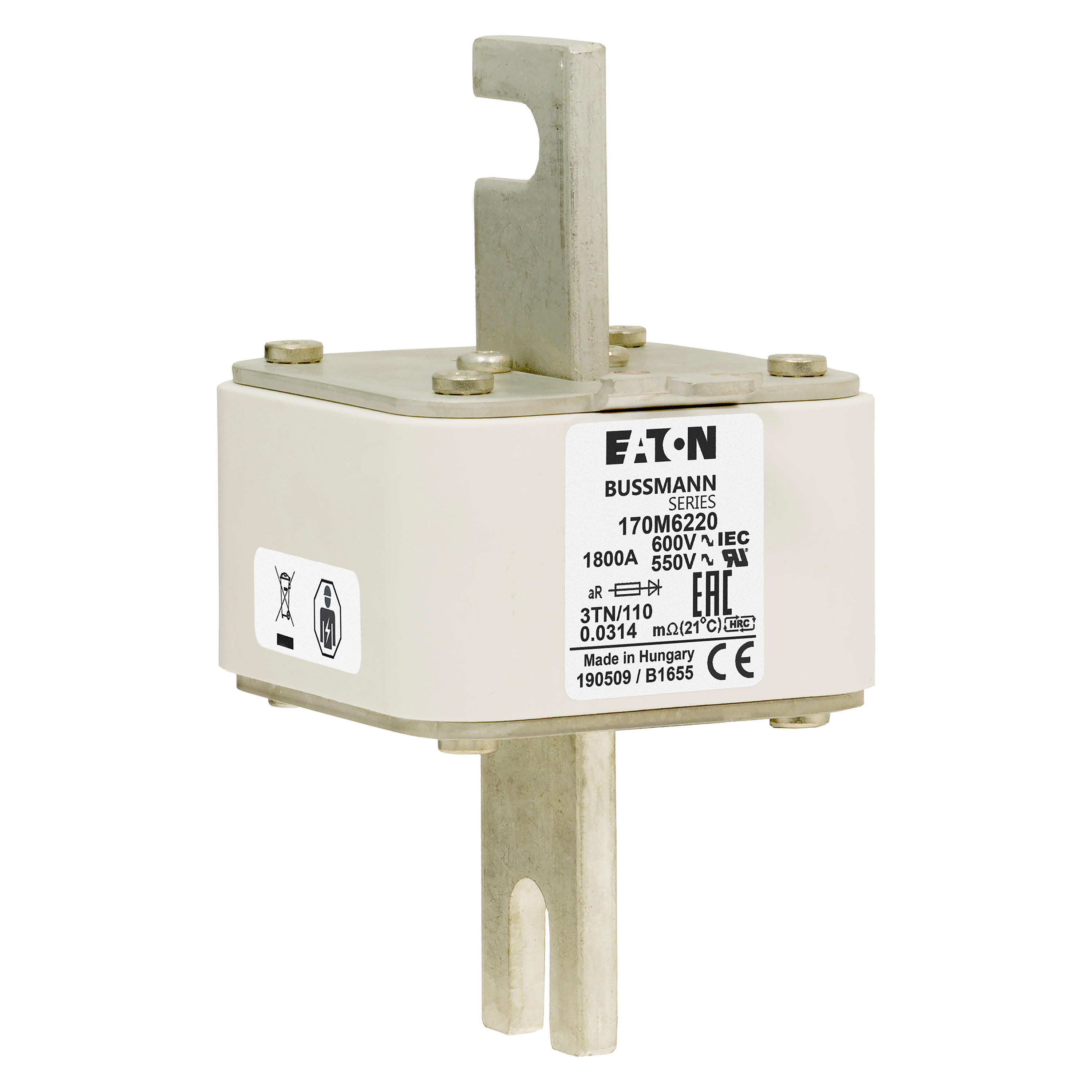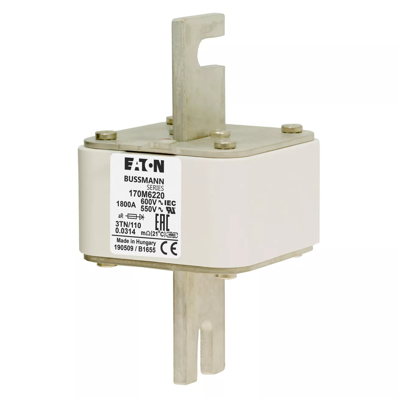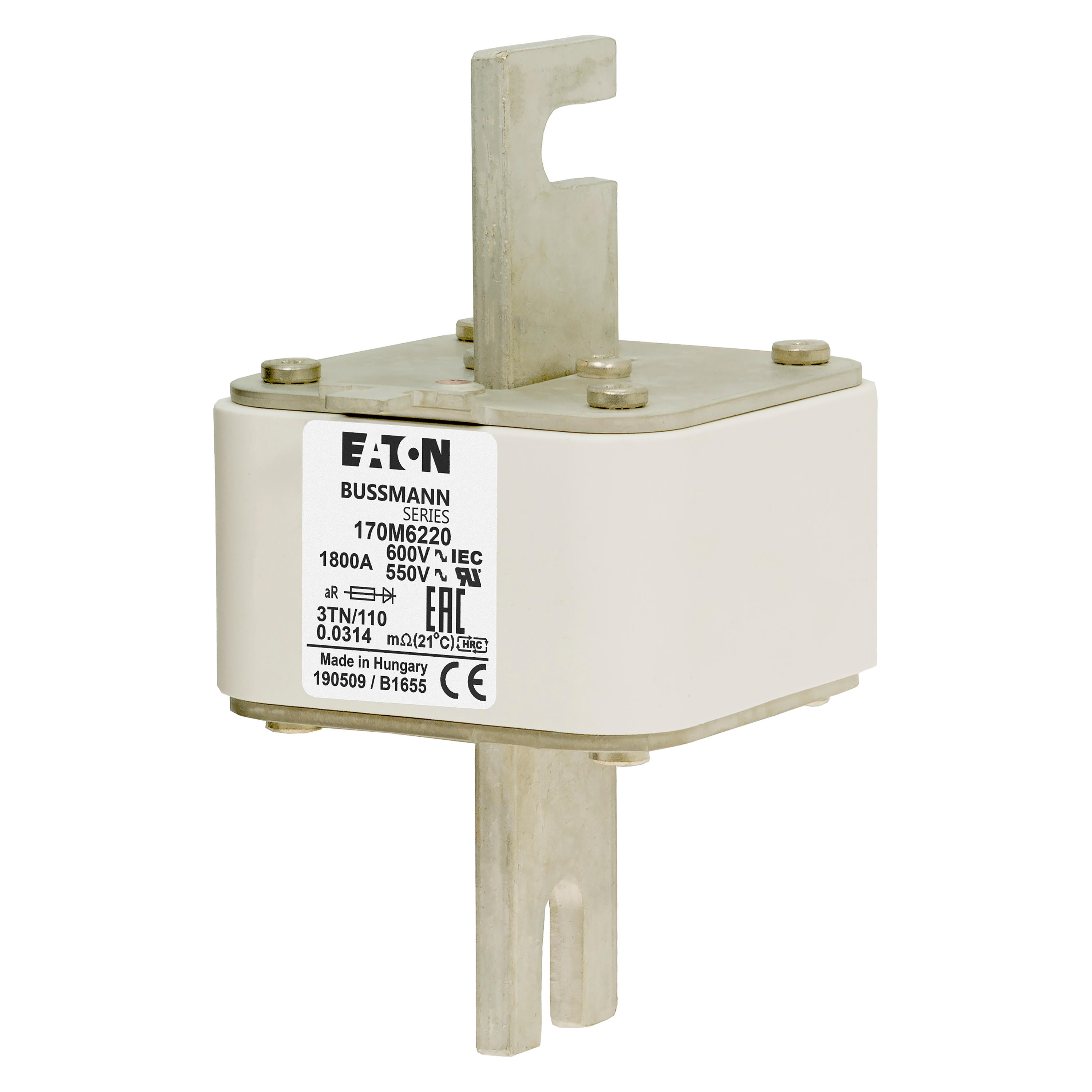 170M6220 Wkładka szybka, 1800 A, AC 600 V, DIN 3, 76 x 90 x 139 mm, aR, DIN, IEC, wskaźnik T
