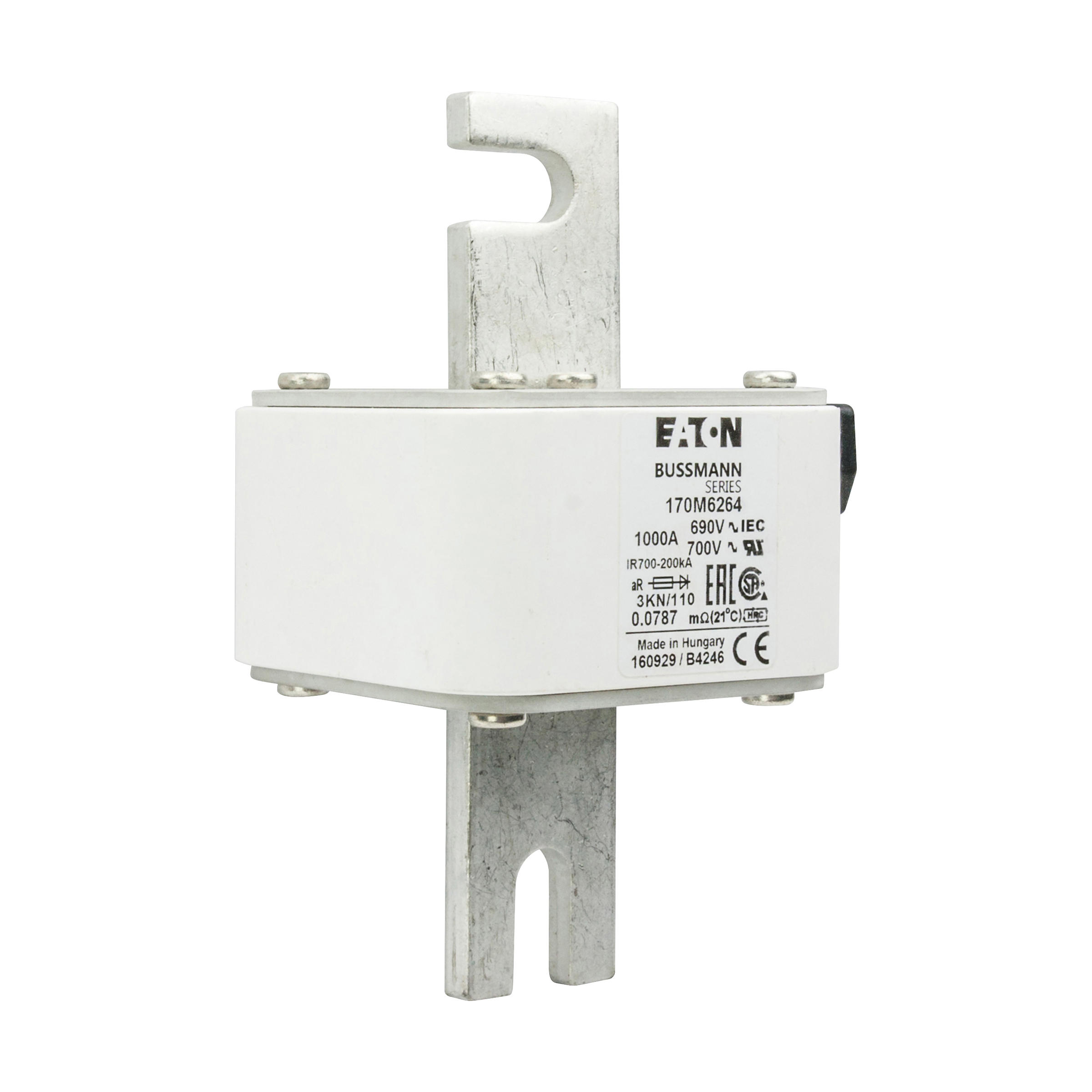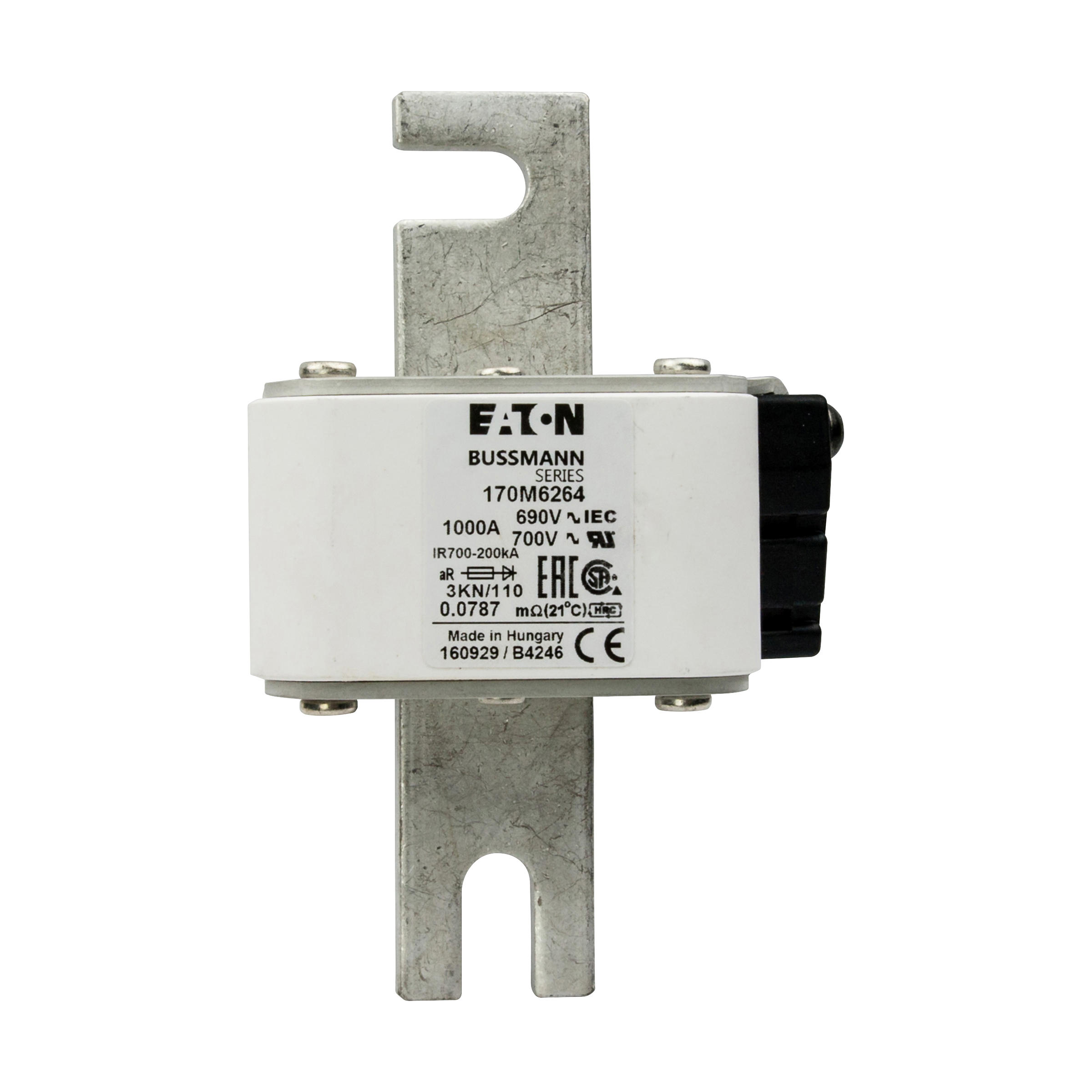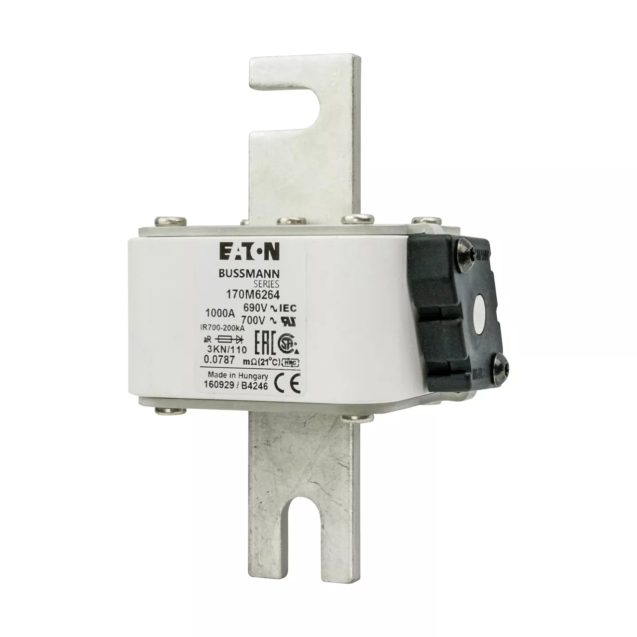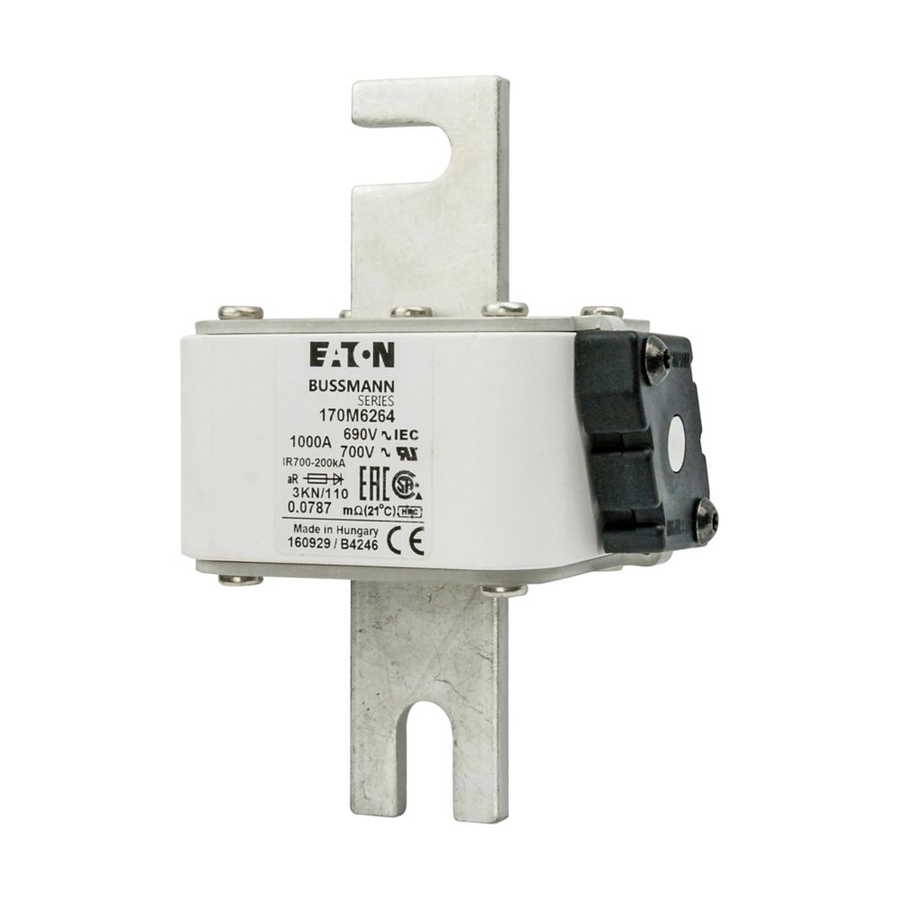 170M6264 Wkładka szybka, 1000 A, AC 690 V, DIN 3, 76 x 92 x 139 mm, aR, DIN, IEC, pojedynczy wskaźnik