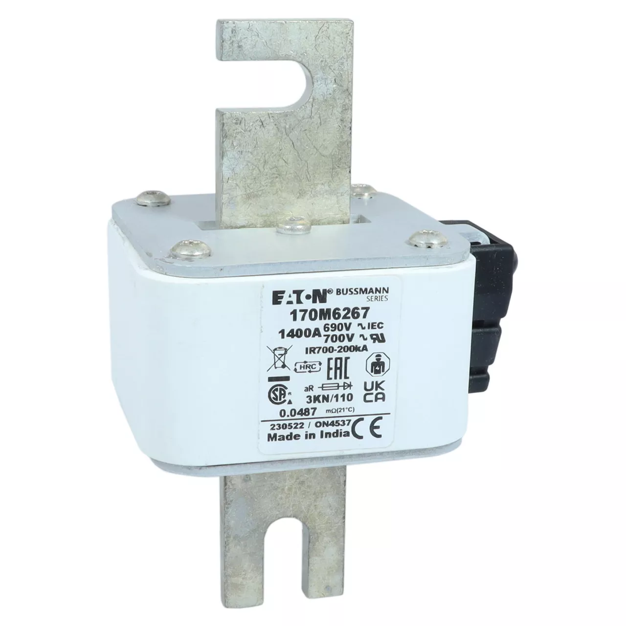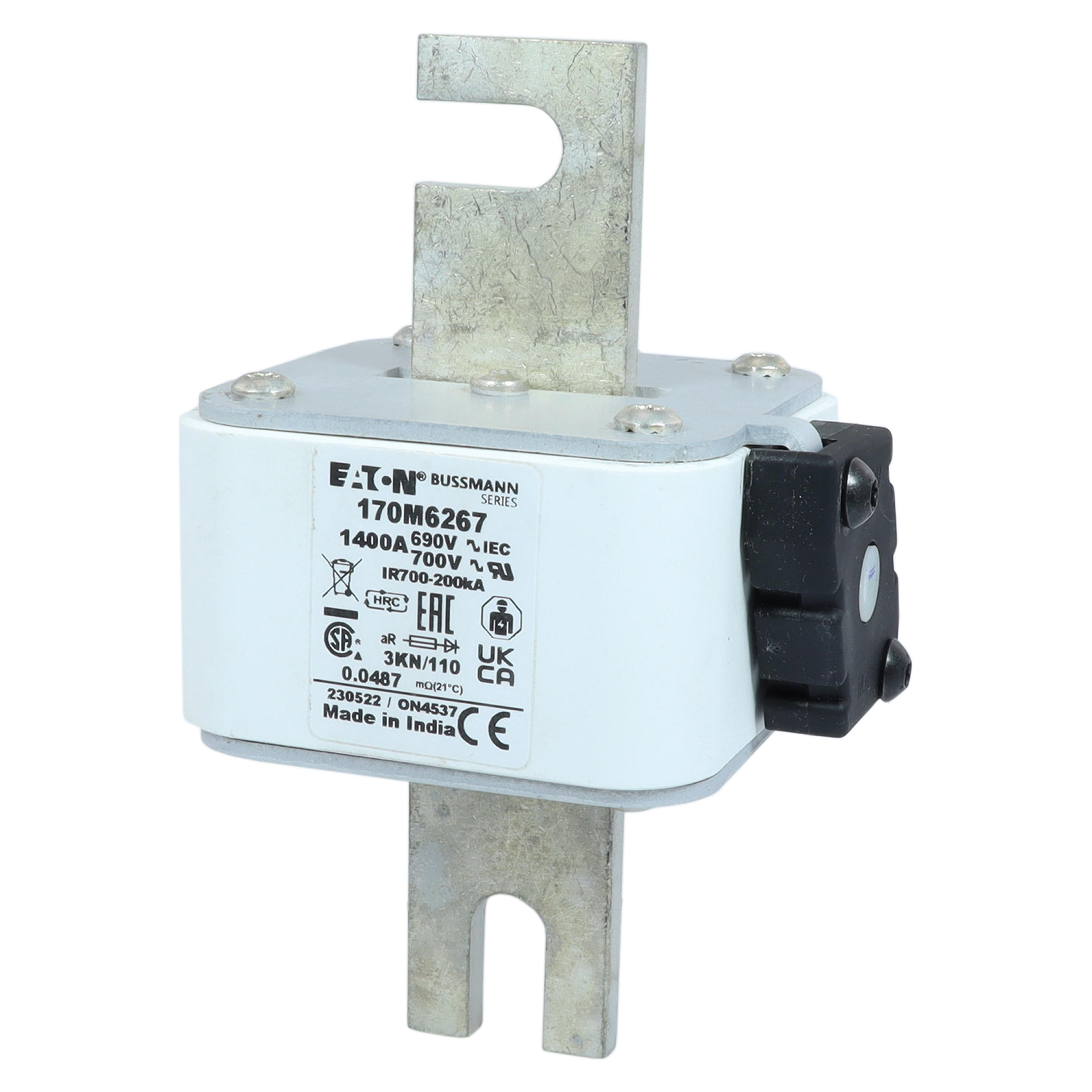 170M6267 Wkładka szybka, 1400 A, AC 690 V, DIN 3, 76 x 92 x 139 mm, aR, DIN, IEC, pojedynczy wskaźnik