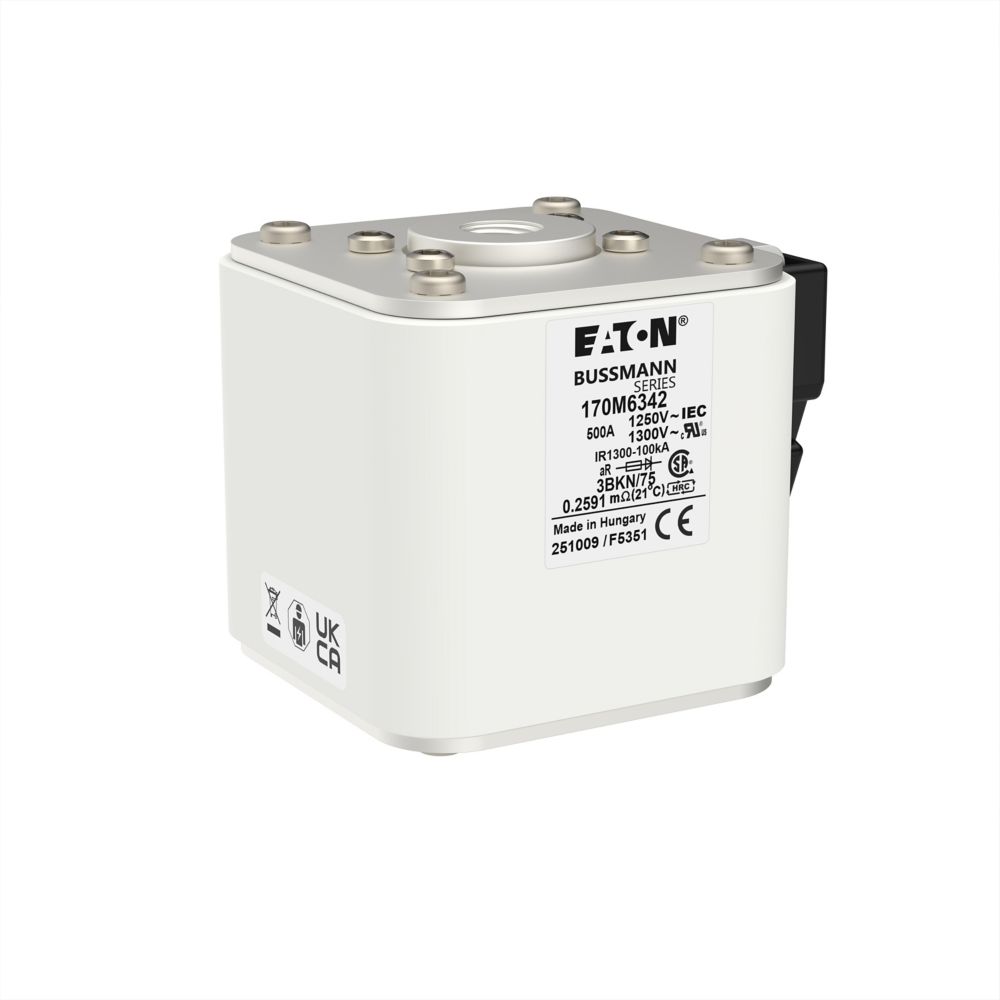 170M6342 Wkładka szybka, 500 A, AC 1250 V, size 3, 76 x 92 x 76 mm, aR, IEC, UL