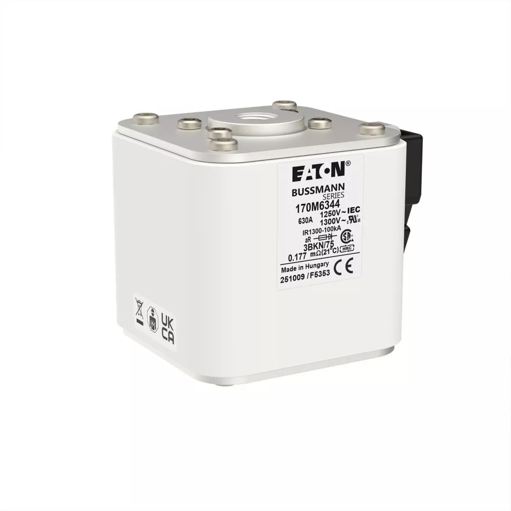 170M6344 Wkładka szybka, 630 A, AC 1250 V, size 3, 76 x 92 x 76 mm, aR, IEC, UL, wskaźnik K, flush end, M12