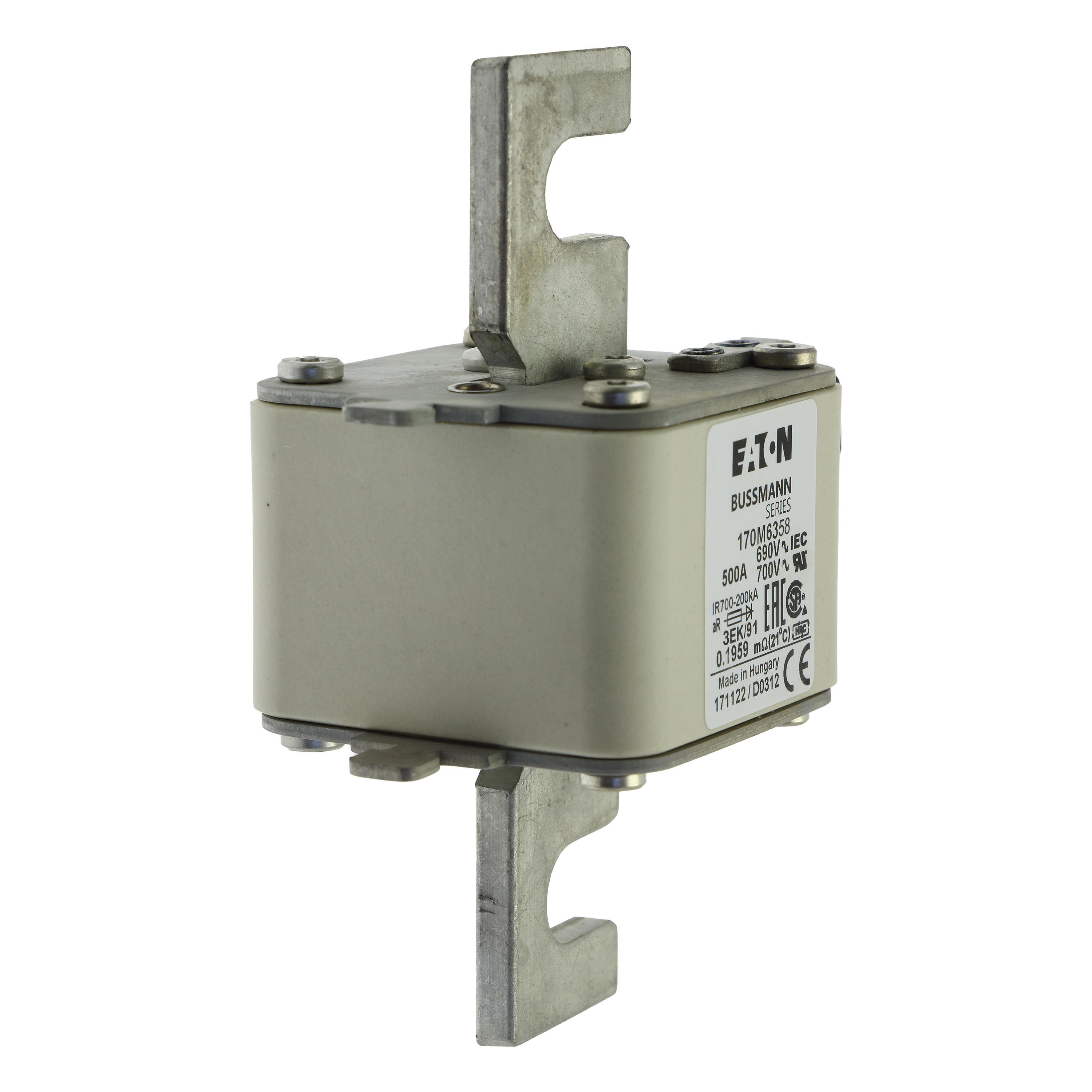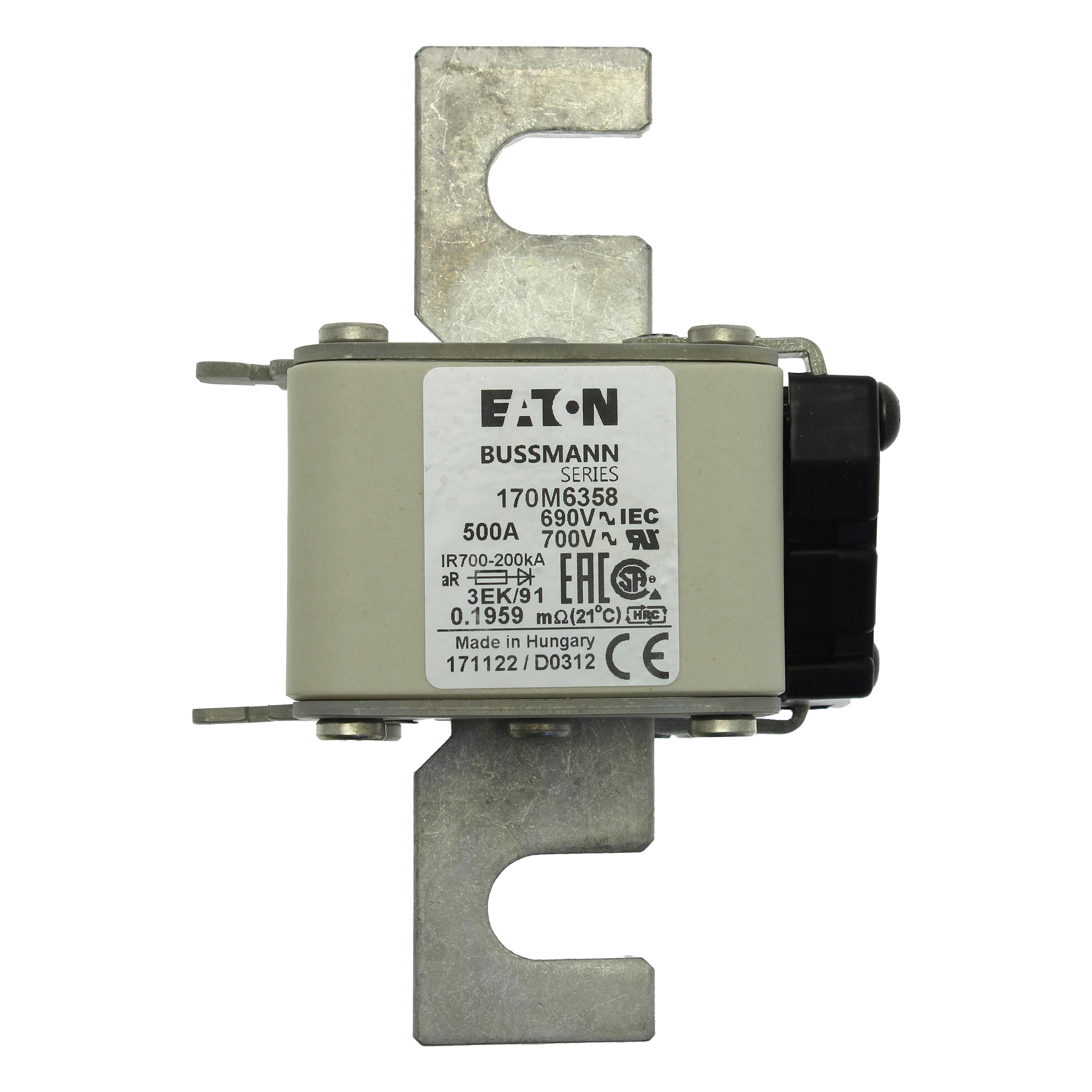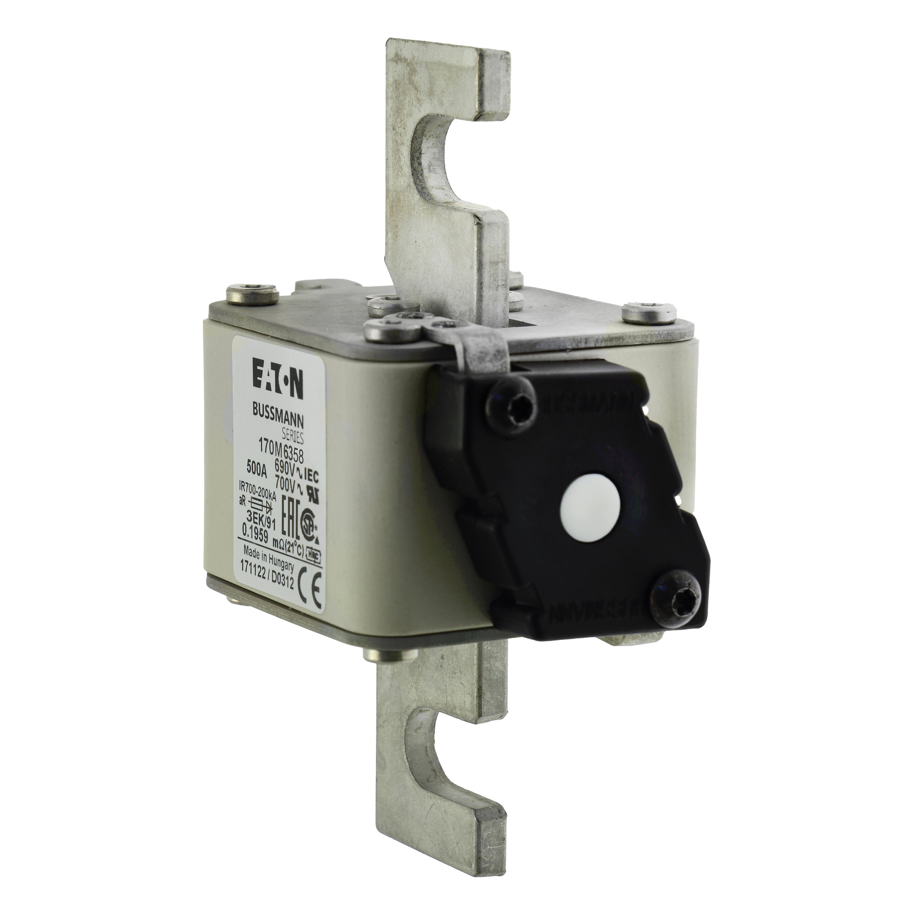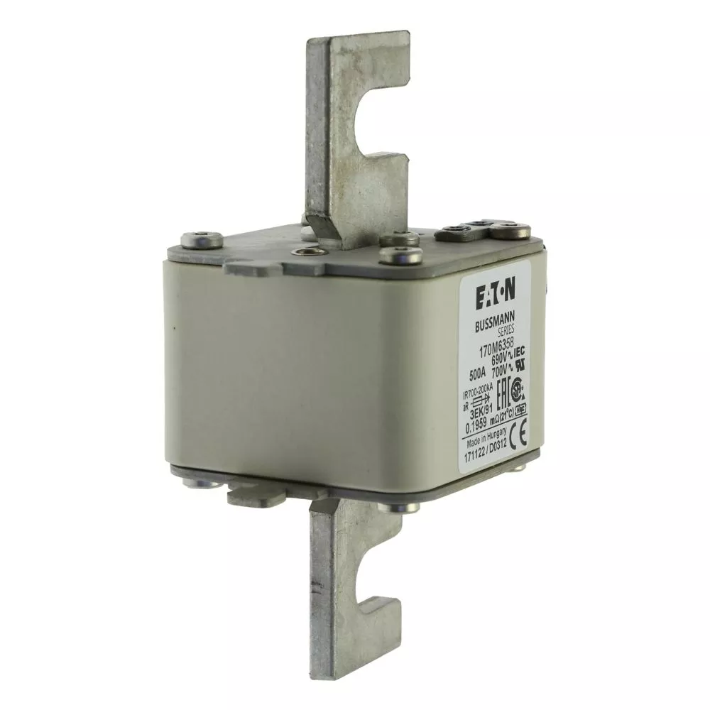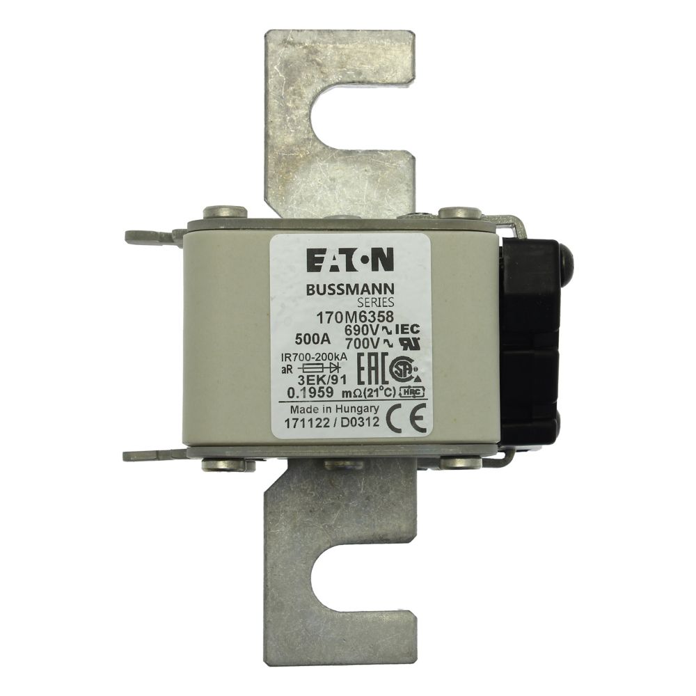 170M6358 Wkładka szybka, 500 A, AC 690 V, rozmiar 3, 76 x 92 x 126 mm, aR, IEC, pojedynczy wskaźnik