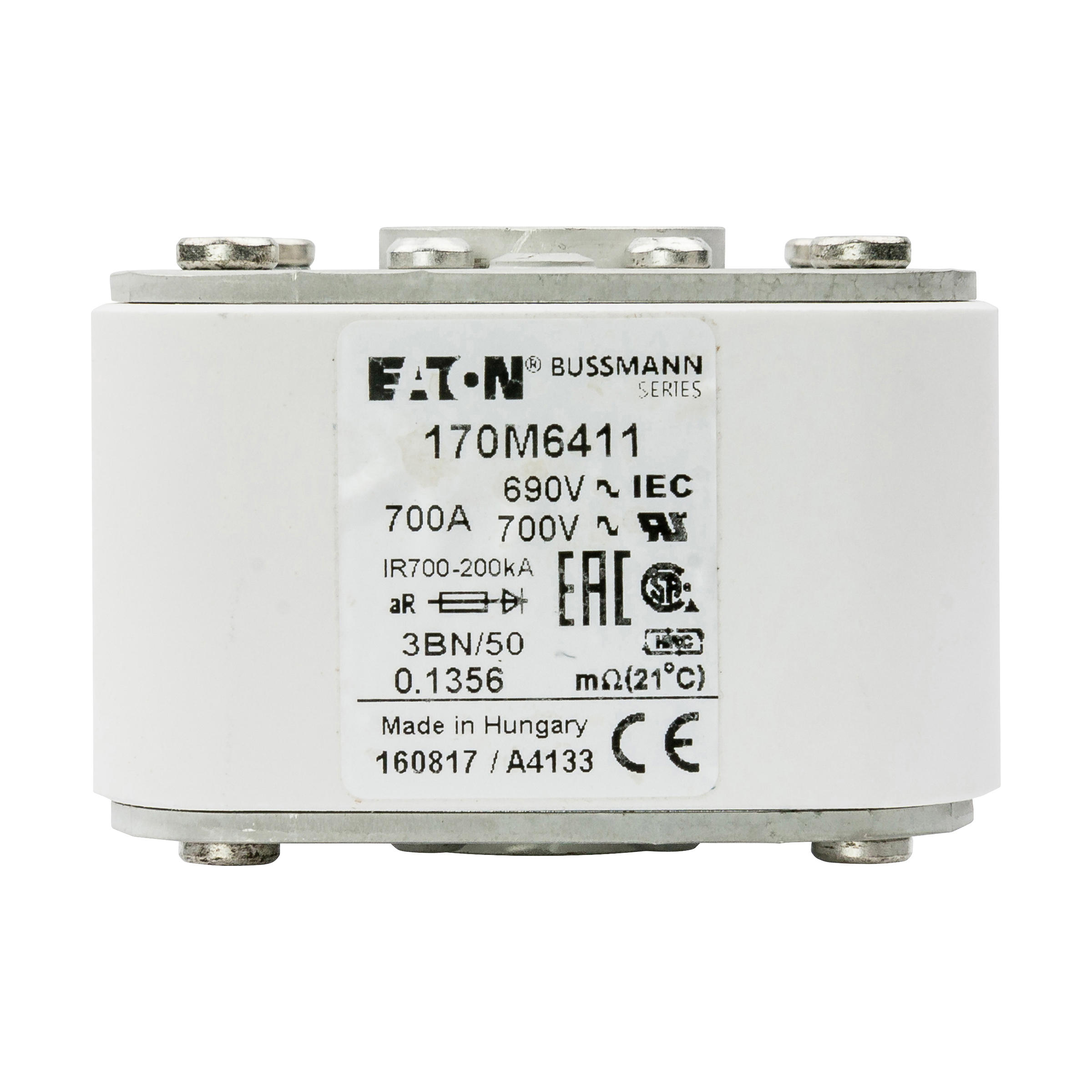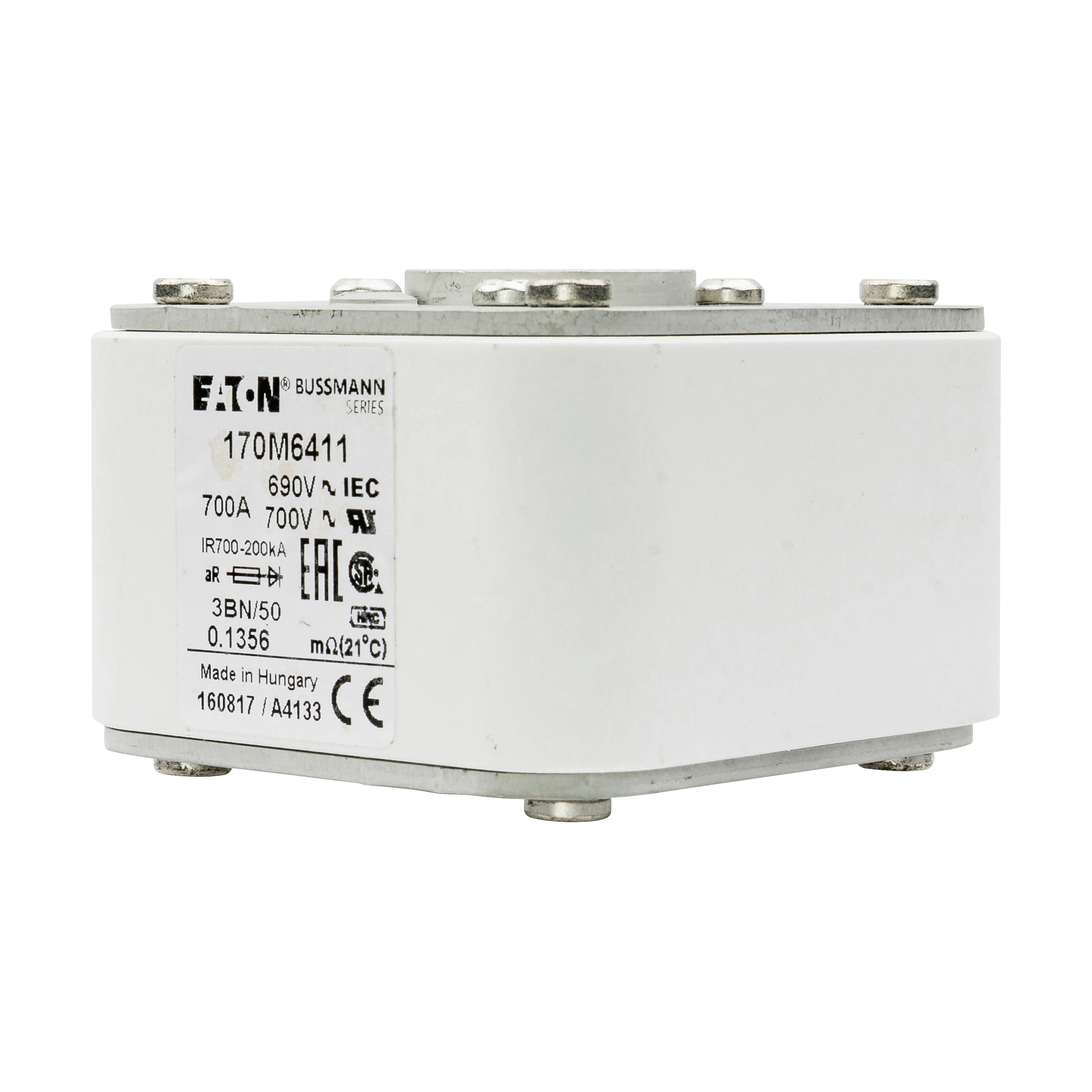 170M6411 Wkładka szybka, 700 A, AC 690 V, rozmiar 3, aR, IEC, UL, pojedynczy wskaźnik