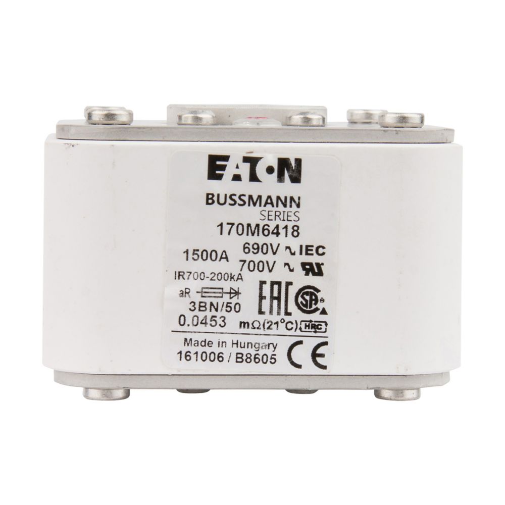170M6418 Wkładka szybka, 1500 A, AC 690 V, rozmiar 3, aR, IEC, UL, pojedynczy wskaźnik