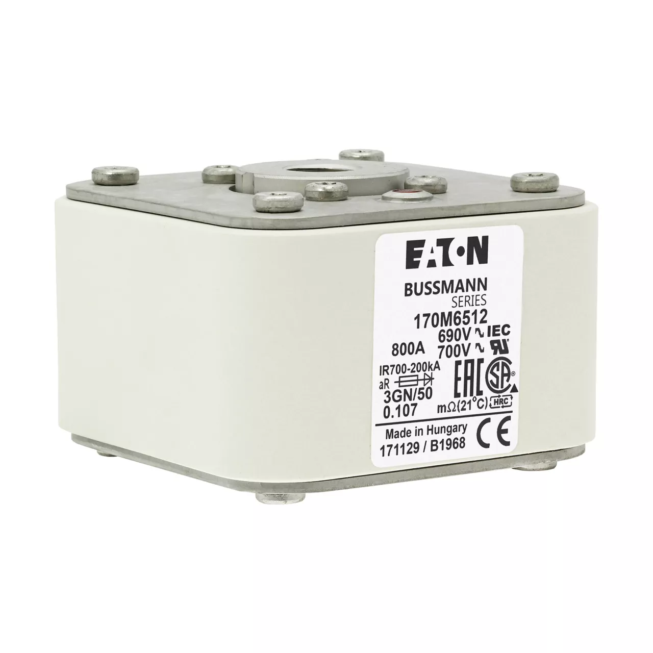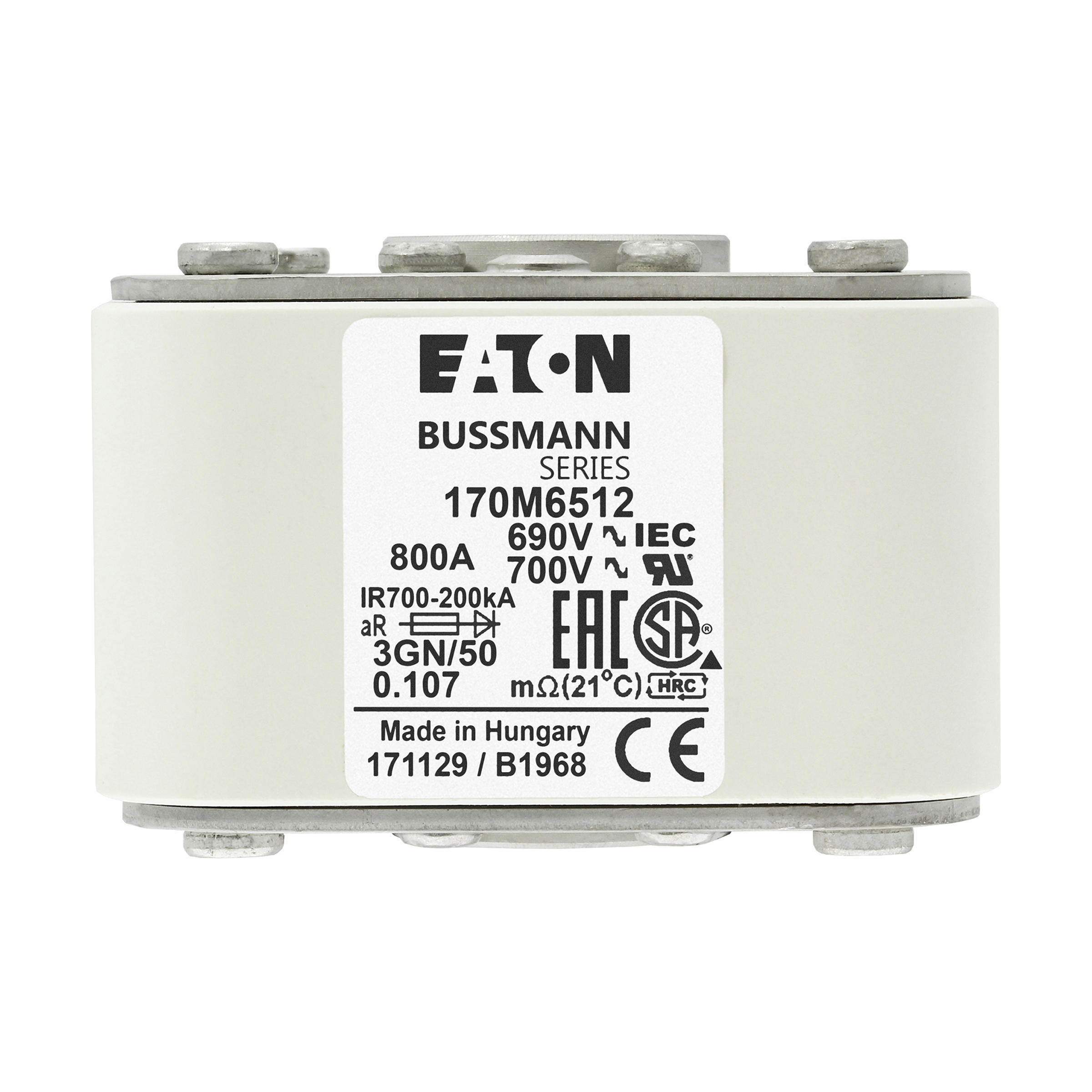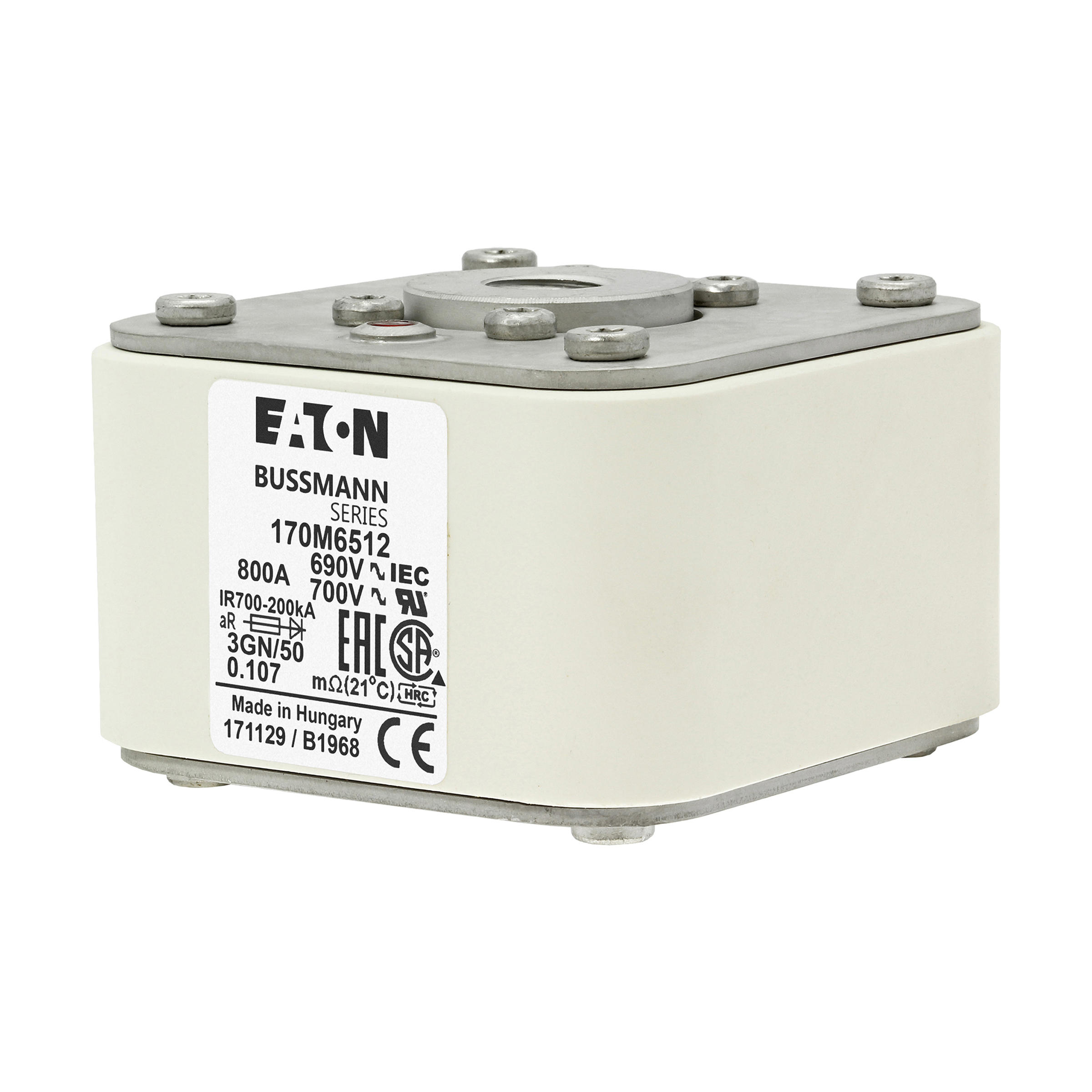 170M6512 Wkładka szybka, 800 A, AC 690 V, rozmiar 3, 76 x 92 x 53 mm, aR, IEC, UL, pojedynczy wskaźnik