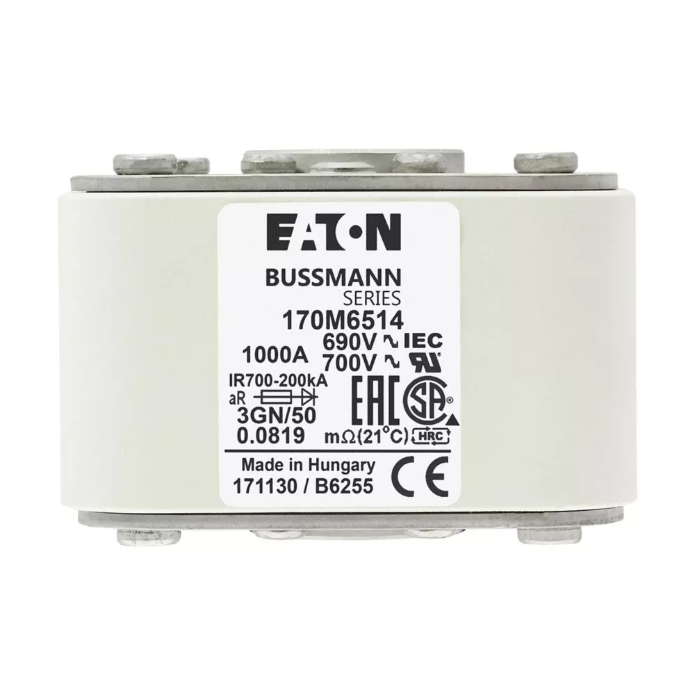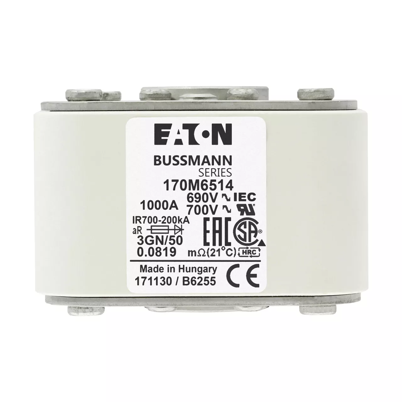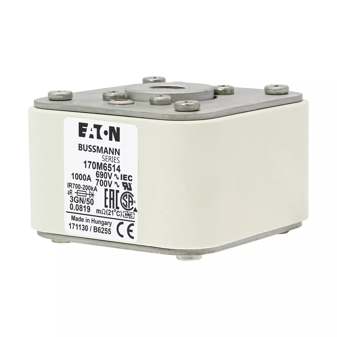 170M6514 Wkładka szybka, 1000 A, AC 690 V, rozmiar 3, 76 x 92 x 53 mm, aR, IEC, UL, pojedynczy wskaźnik