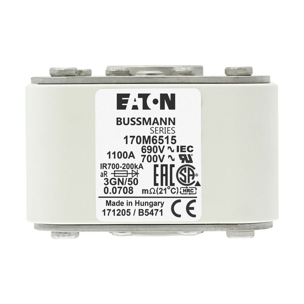 170M6515 Wkładka szybka, 1100 A, AC 690 V, rozmiar 3, 76 x 92 x 53 mm, aR, IEC, UL, pojedynczy wskaźnik