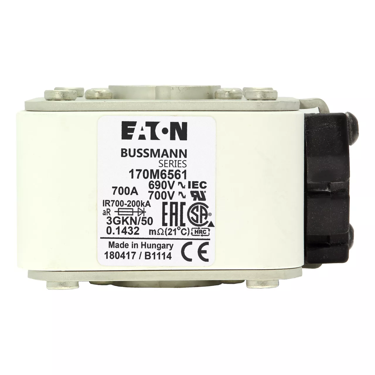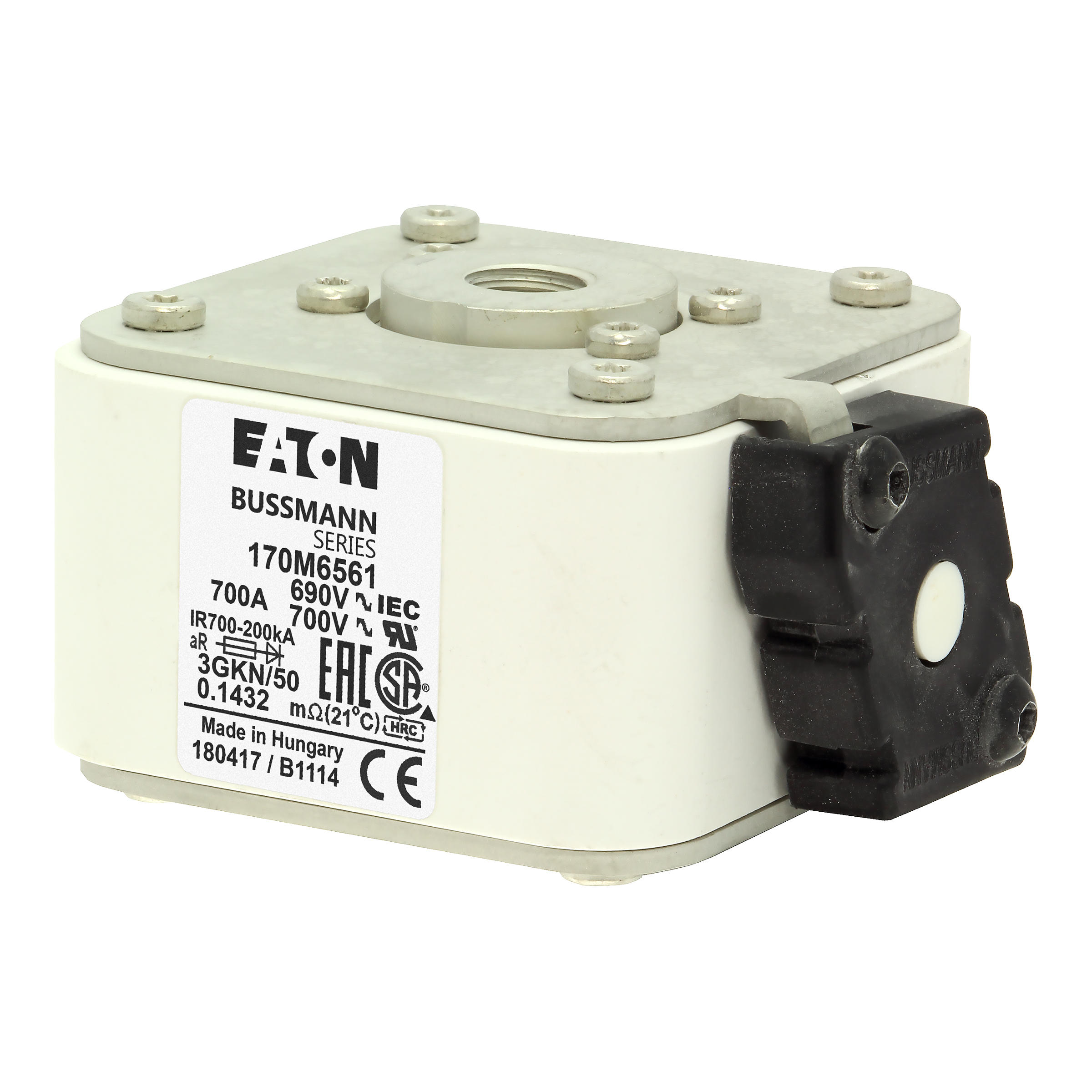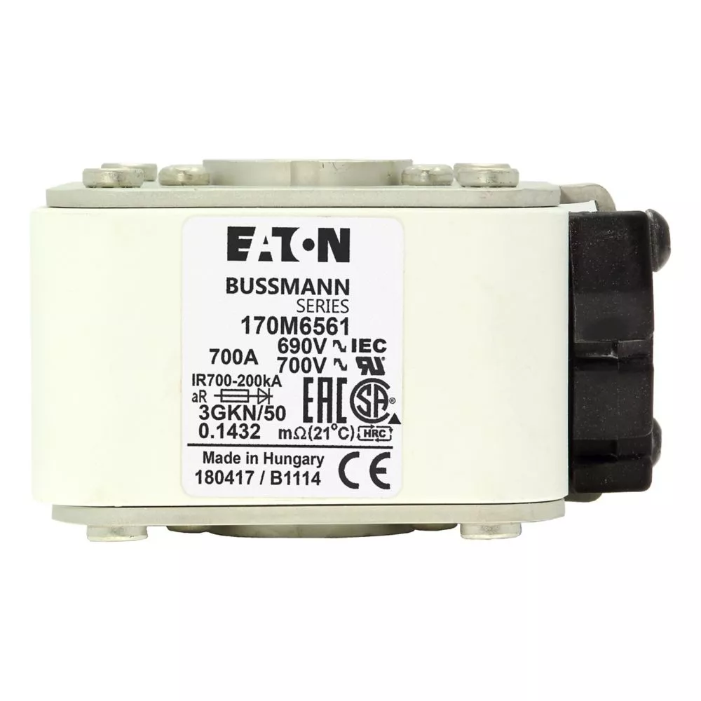 170M6561 Wkładka szybka, 700 A, AC 690 V, rozmiar 3, 76 x 92 x 53 mm, aR, IEC, UL, wskaźnik typu K