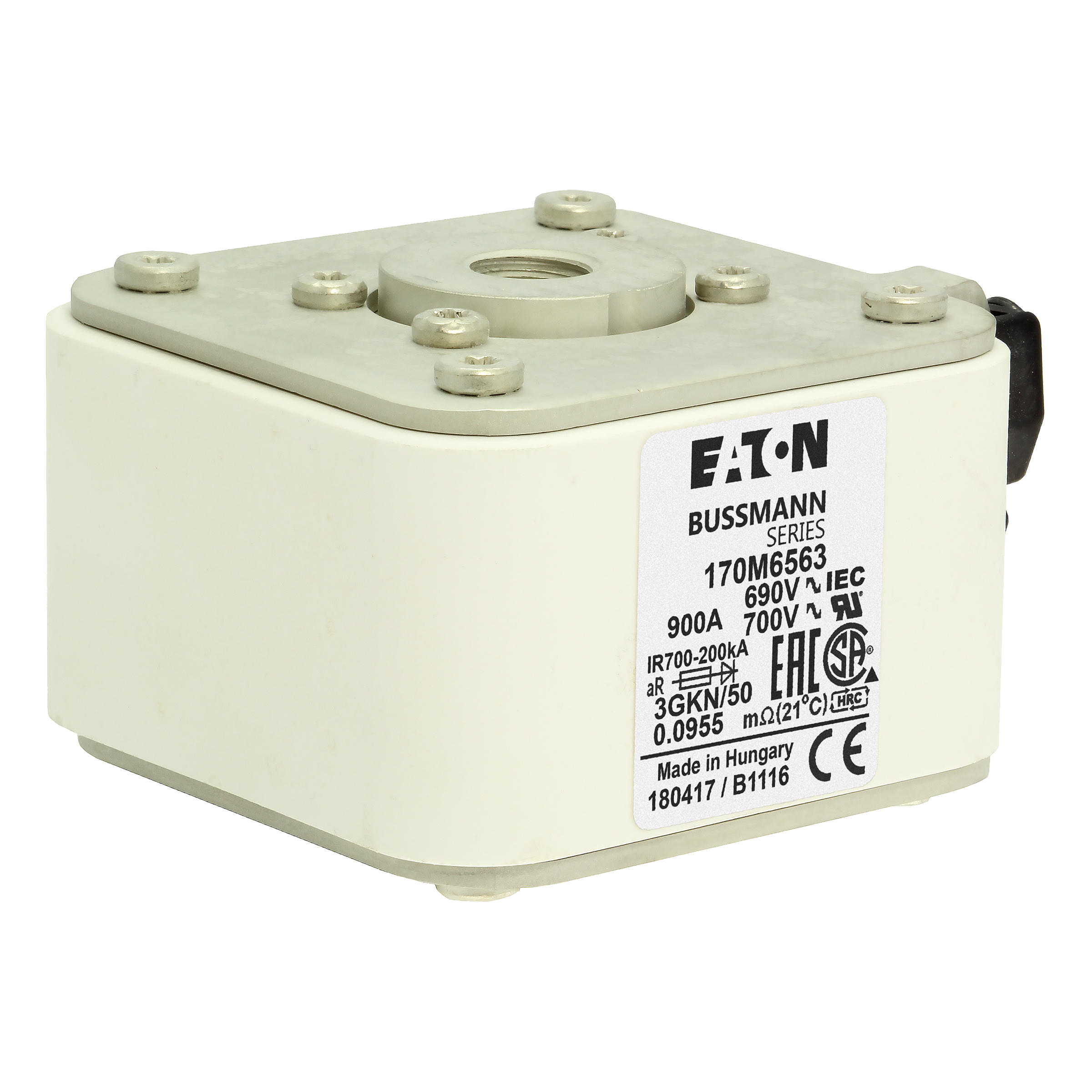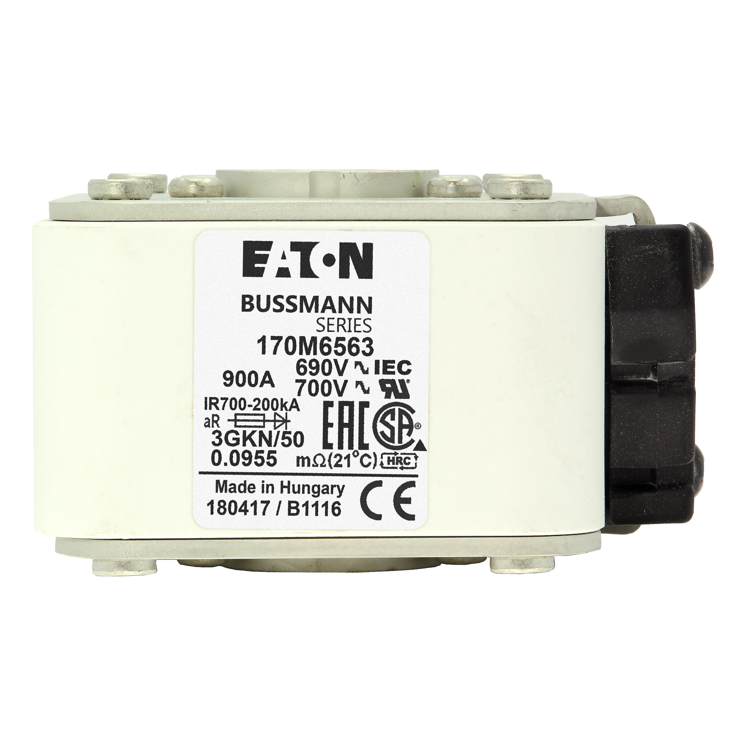 170M6563 Wkładka szybka, 900 A, AC 690 V, rozmiar 3, 76 x 92 x 53 mm, aR, IEC, UL, wskaźnik typu K