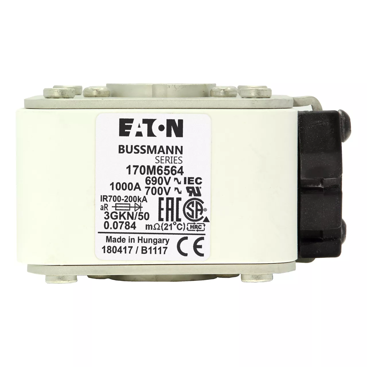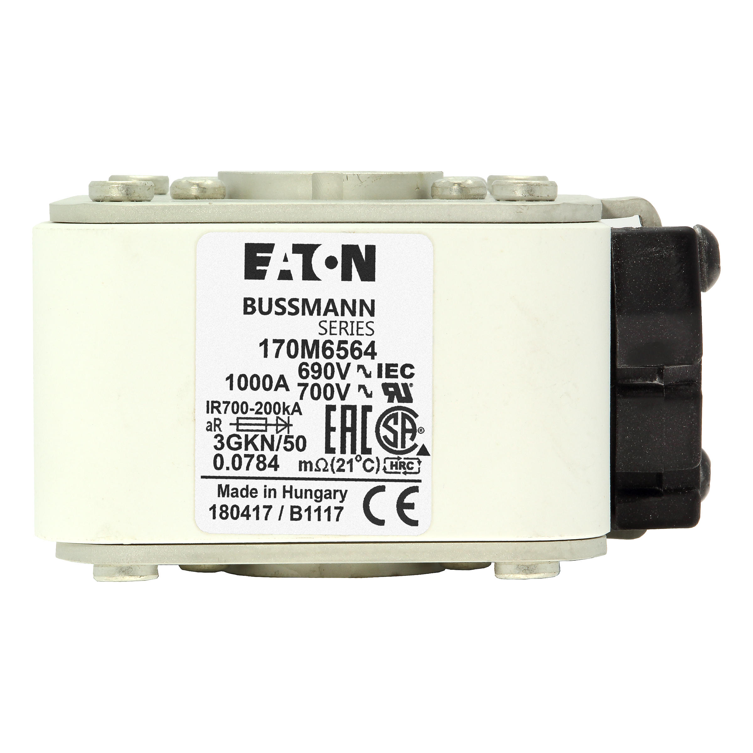170M6564 Wkładka szybka, 1000 A, AC 690 V, rozmiar 3, 76 x 92 x 53 mm, aR, IEC, UL, wskaźnik typu K