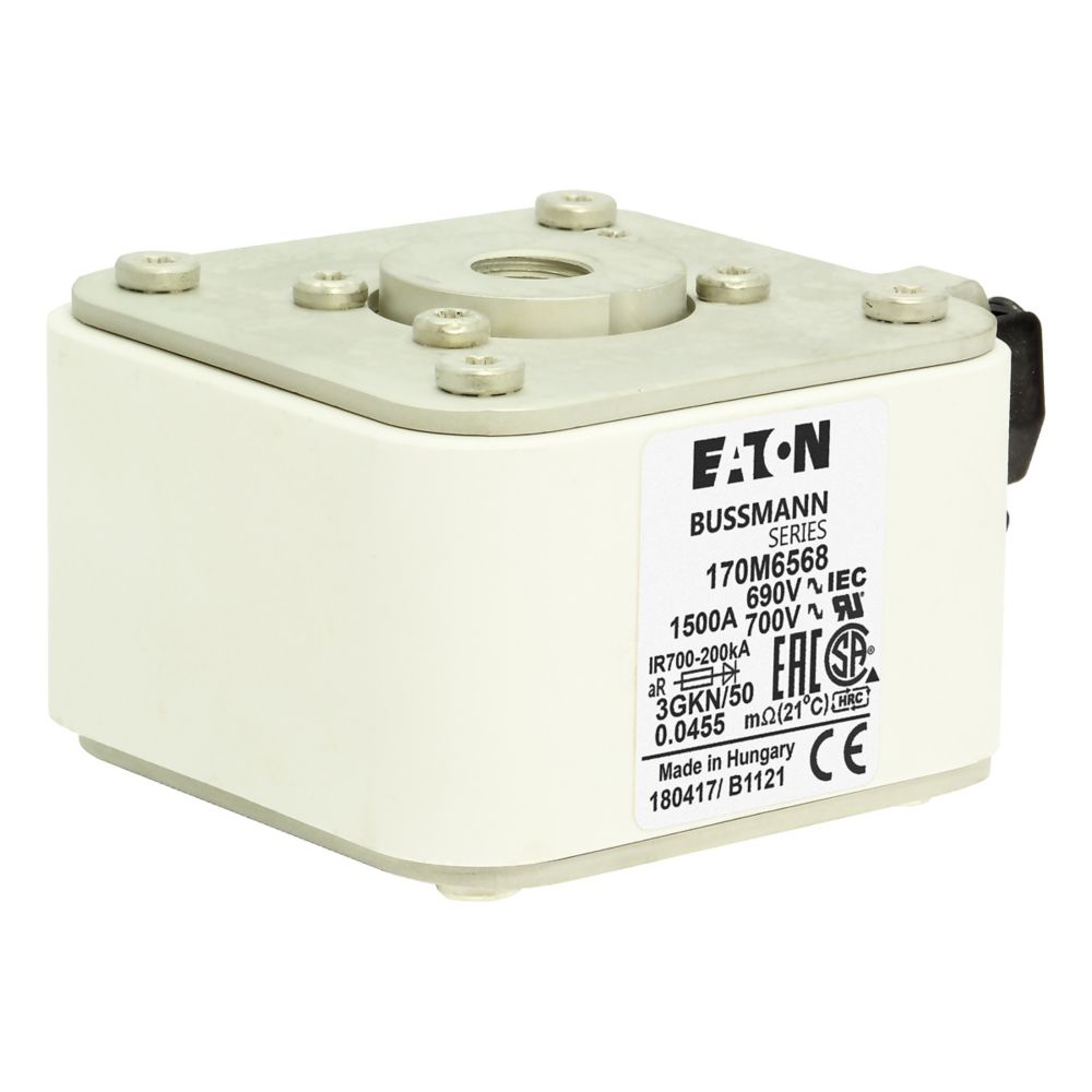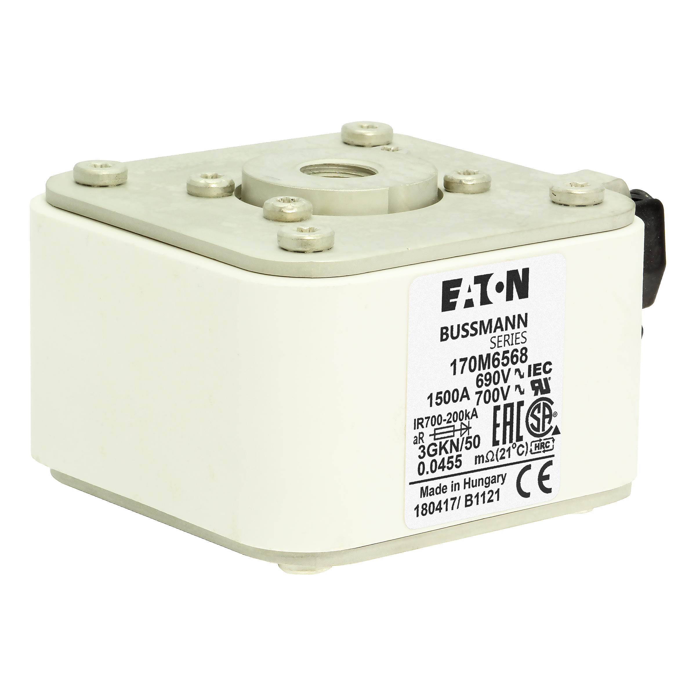 170M6568 Wkładka szybka, 1500 A, AC 690 V, rozmiar 3, 76 x 92 x 53 mm, aR, IEC, UL, pojedynczy wskaźnik