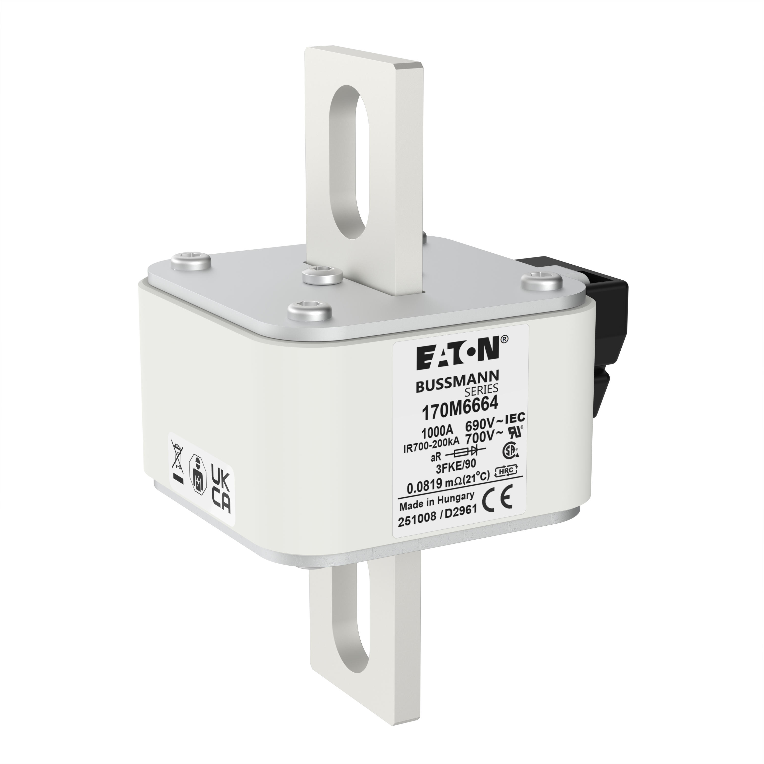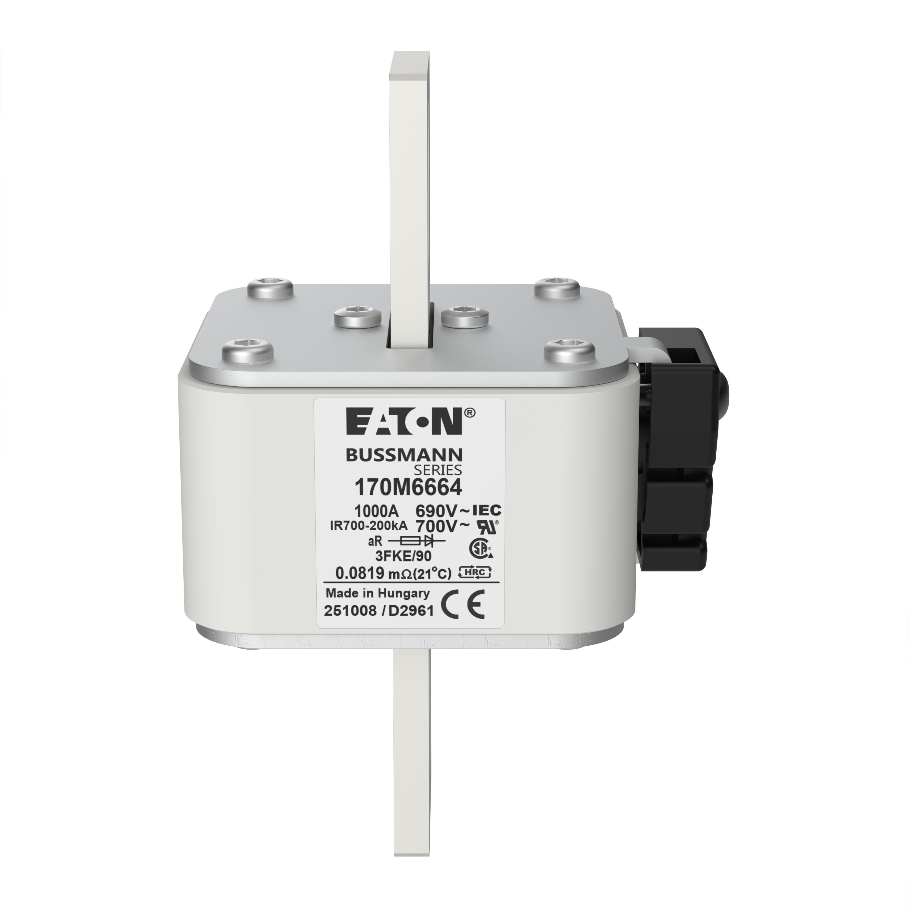 170M6664 Wkładka szybka, 1000 A, AC 690 V, rozmiar 3, 76 x 92 x 135 mm, aR, IEC, UL, pojedynczy wskaźnik