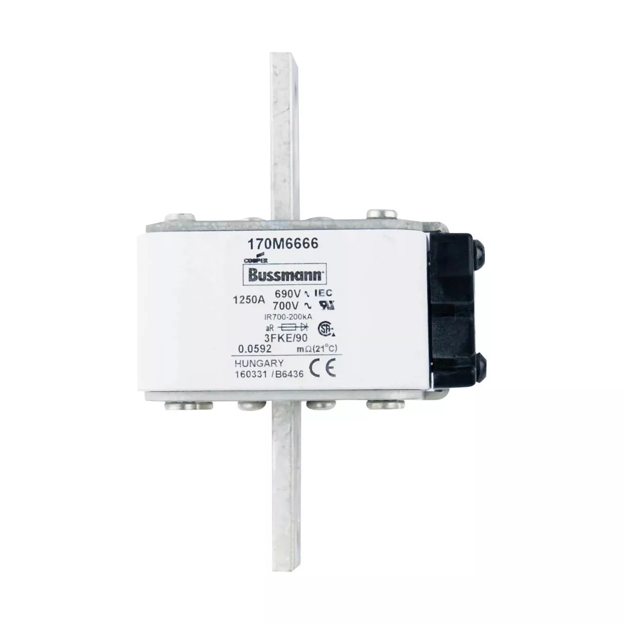 170M6666 Wkładka szybka, 1250 A, AC 690 V, rozmiar 3, 76 x 92 x 135 mm, aR, IEC, UL, pojedynczy wskaźnik
