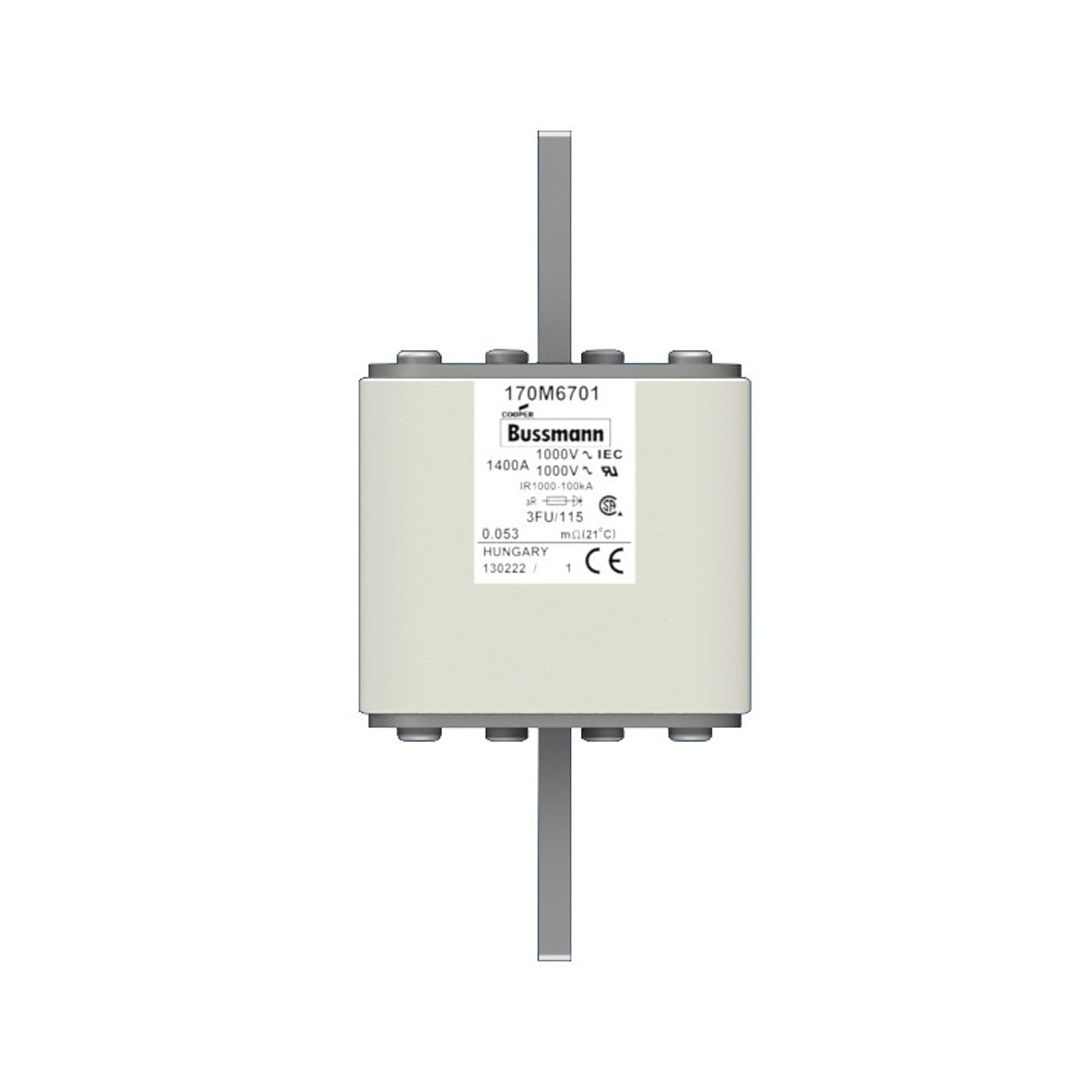 170M6700 Wkładka szybka, 1250 A, AC 1000 V, size 3, 76 x 92 x 159 mm, aR, IEC, UL