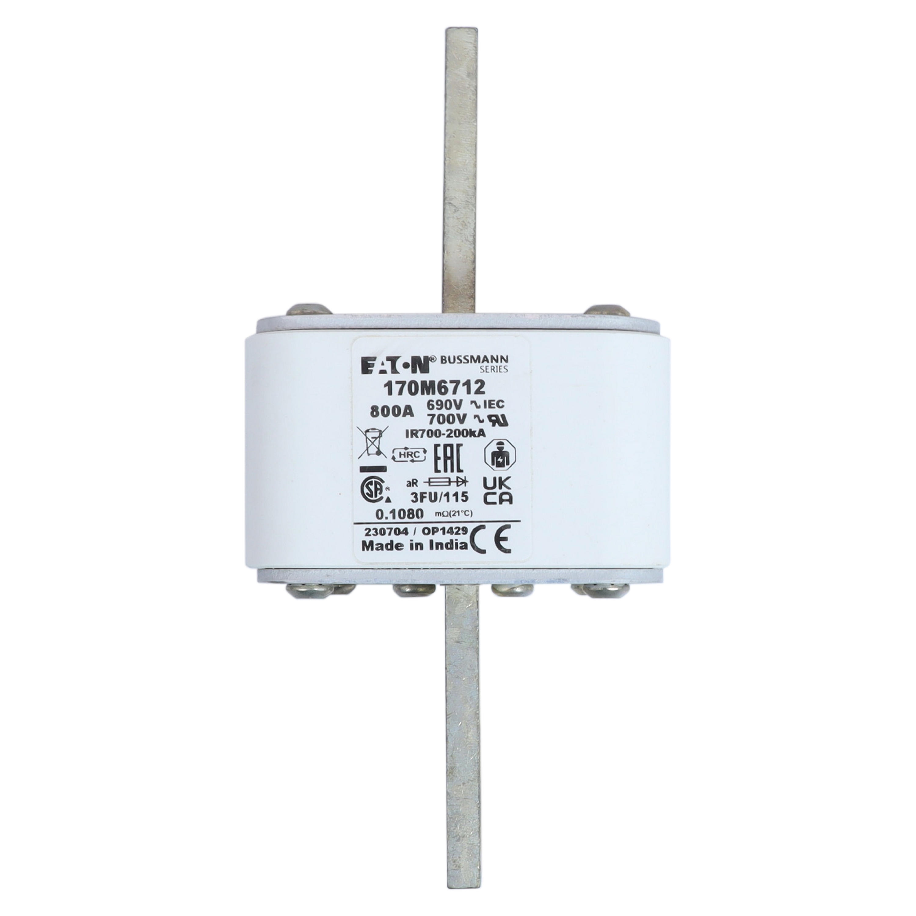 170M6712 Wkładka szybka, 800 A, AC 690 V, rozmiar 3, 67 x 92 x 155 mm, aR, IEC, UL