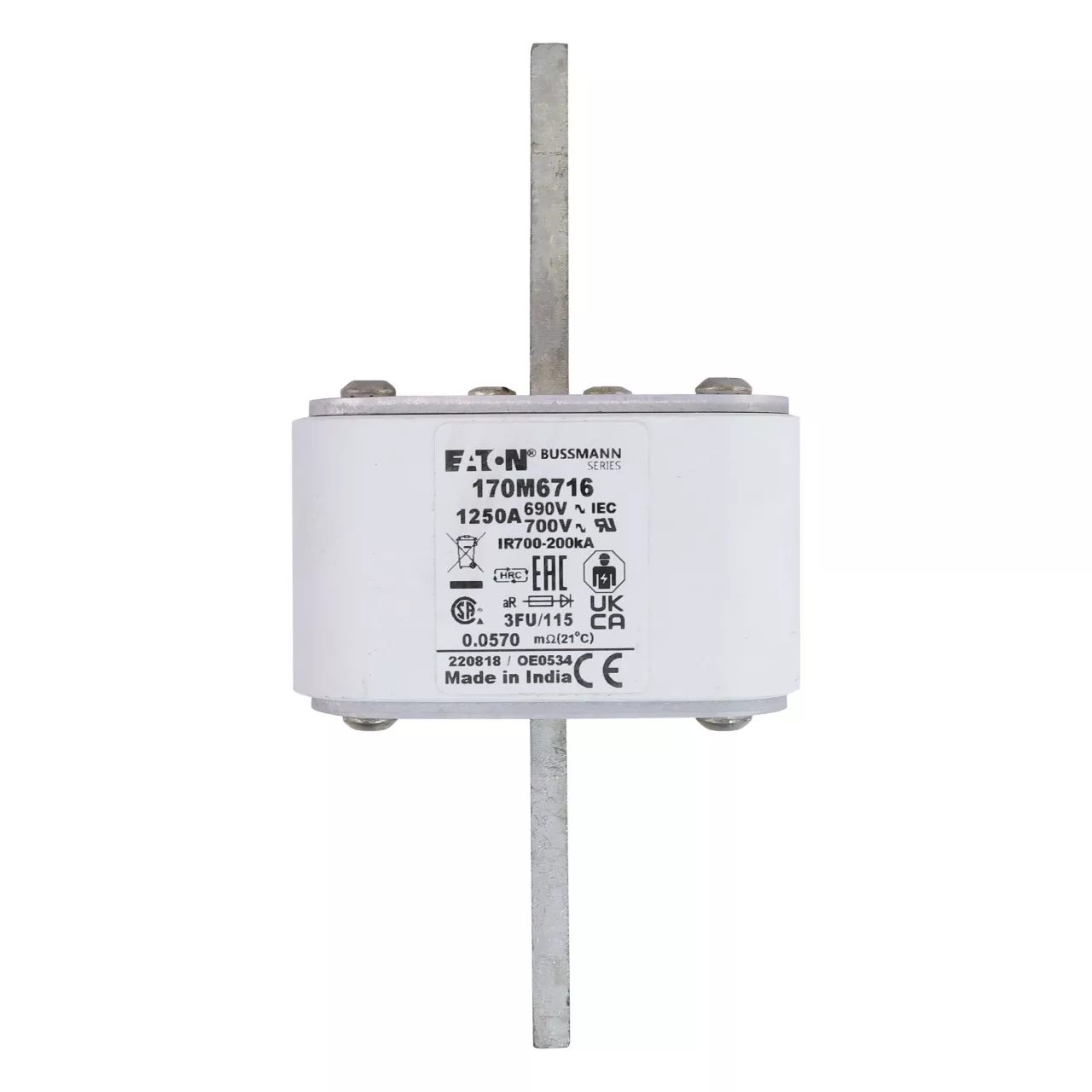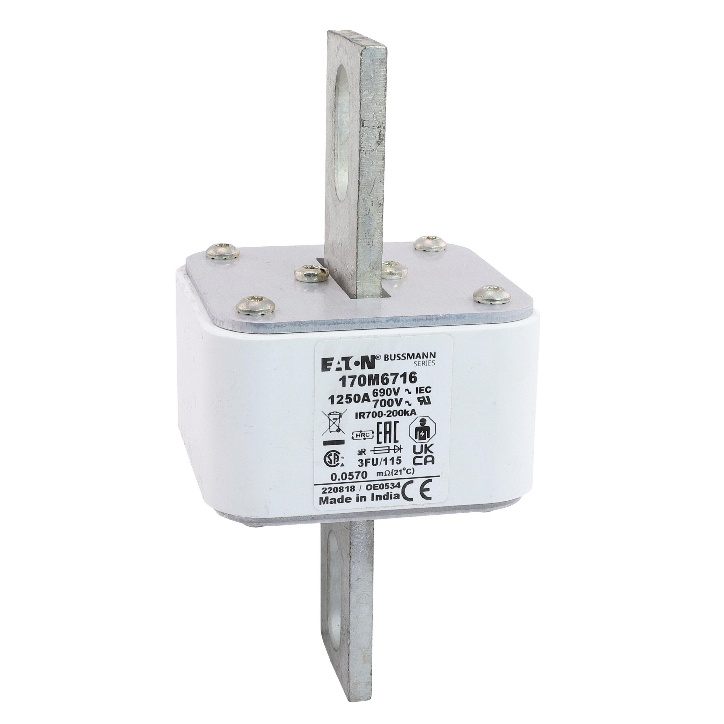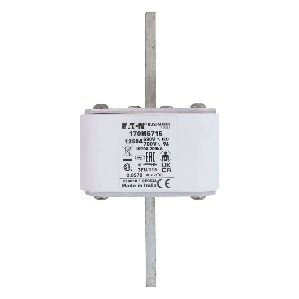 170M6716 Wkładka szybka, 1250 A, AC 690 V, rozmiar 3, 67 x 92 x 155 mm, aR, IEC, UL