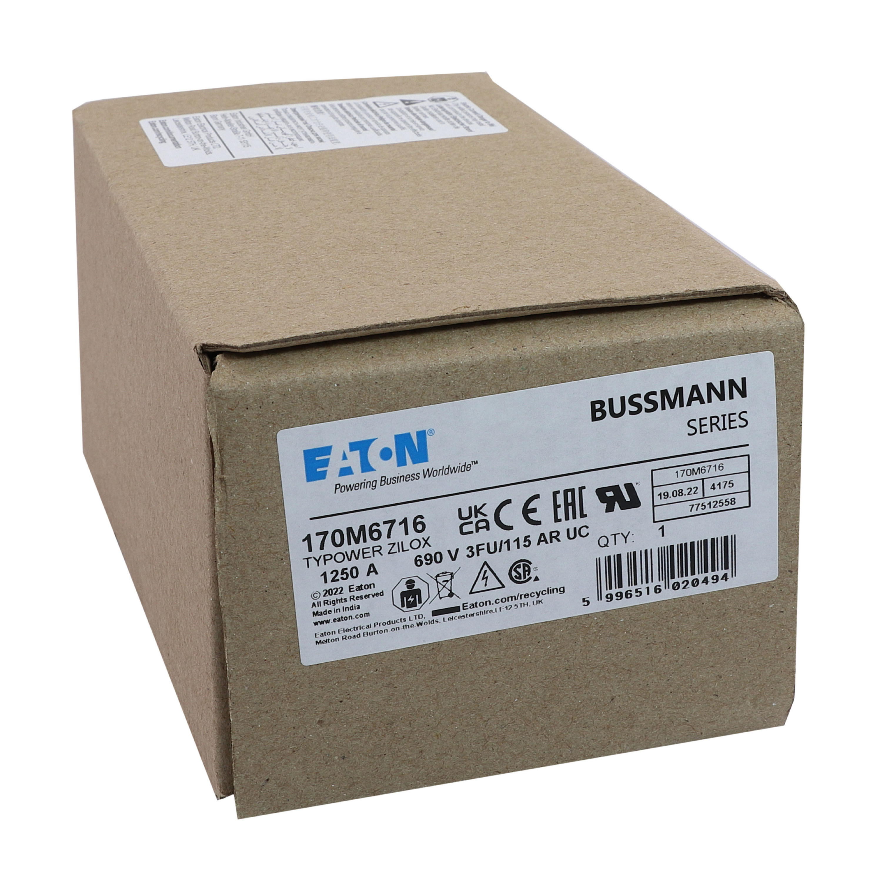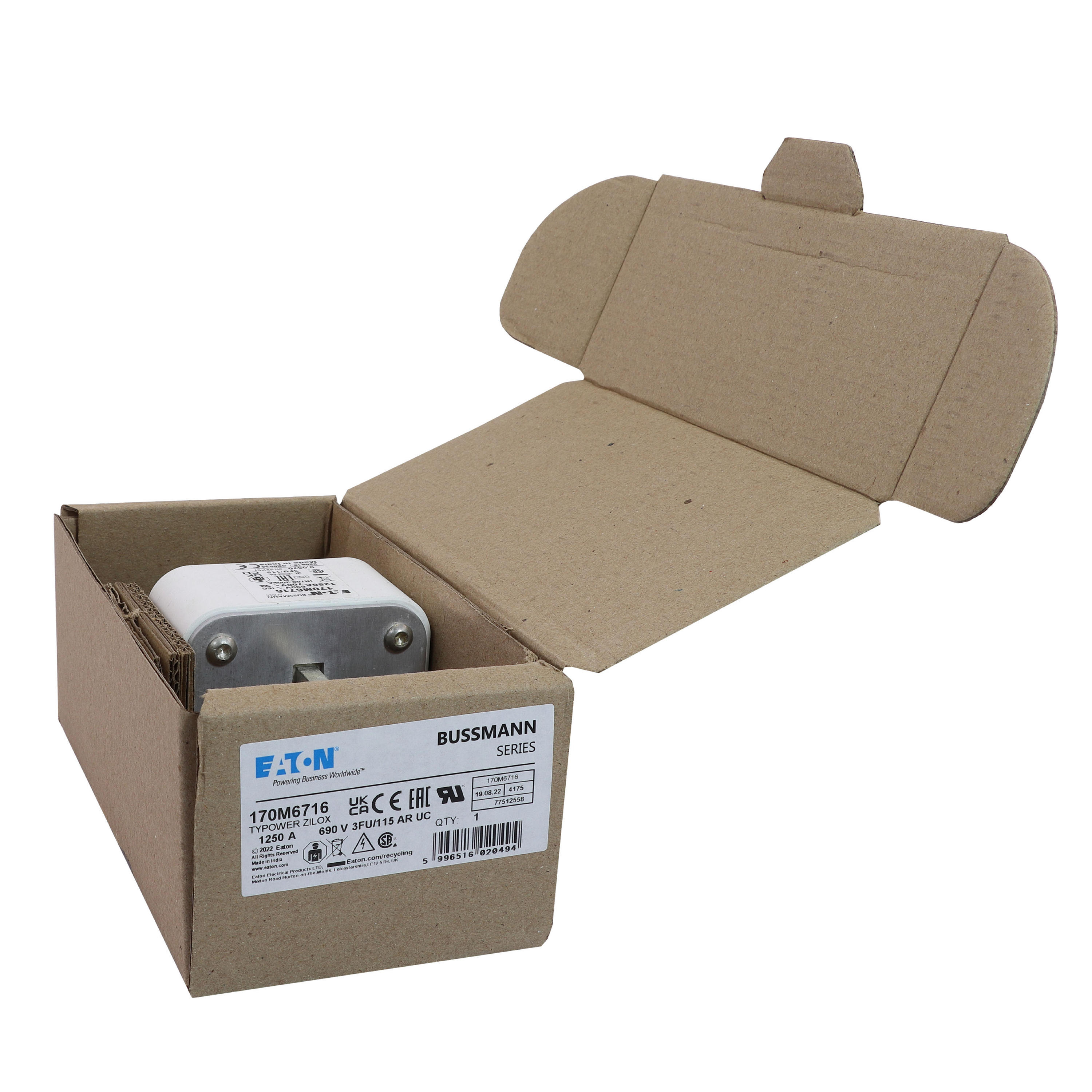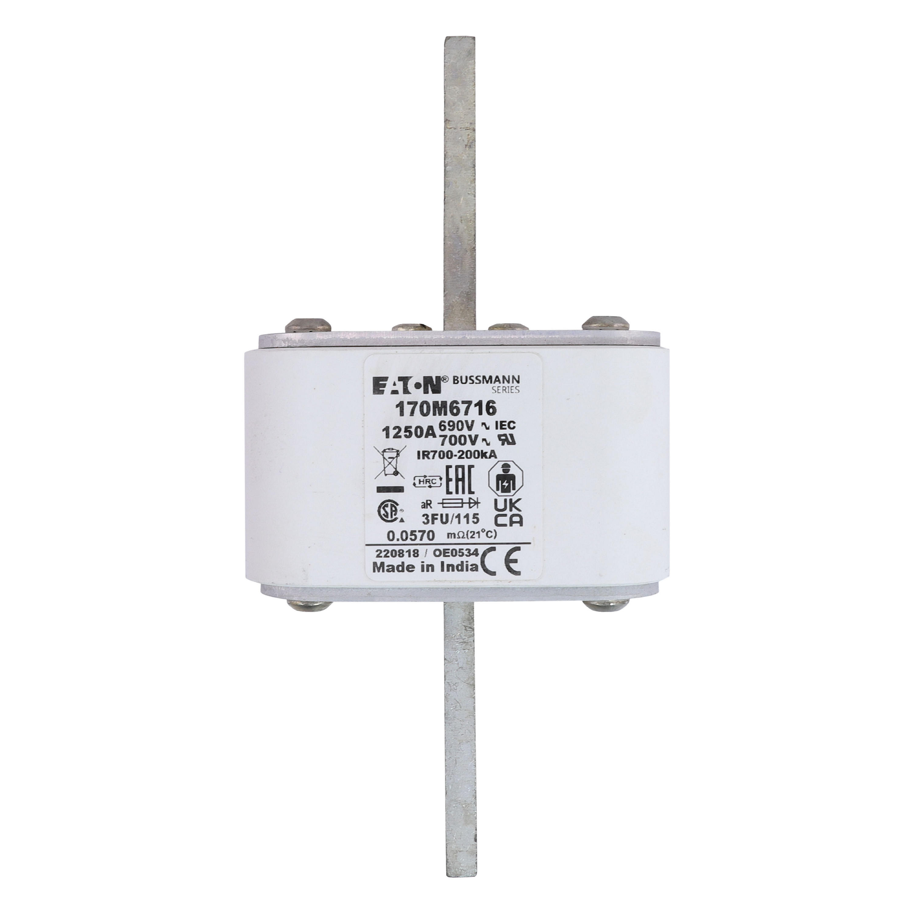 170M6716 Wkładka szybka, 1250 A, AC 690 V, rozmiar 3, 67 x 92 x 155 mm, aR, IEC, UL