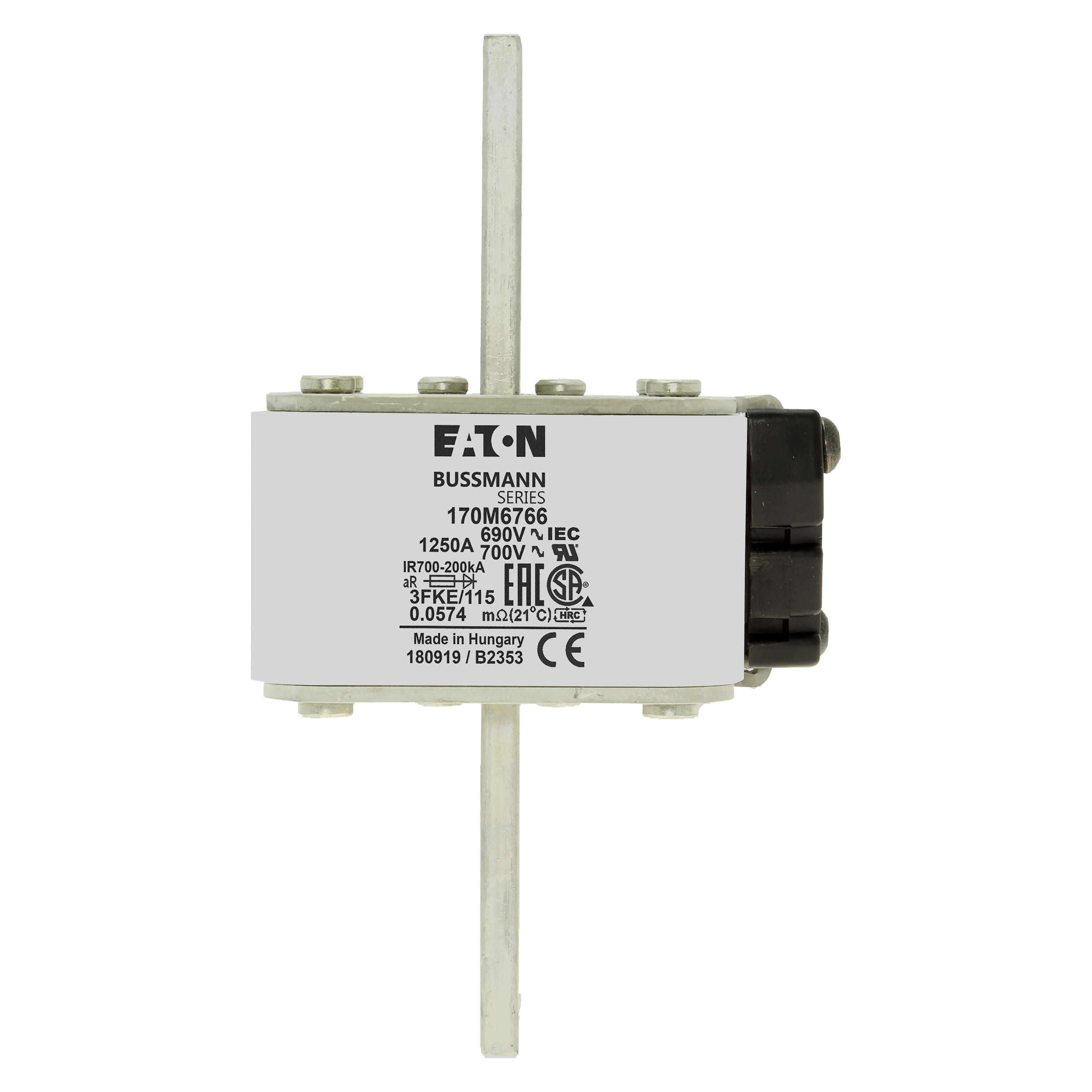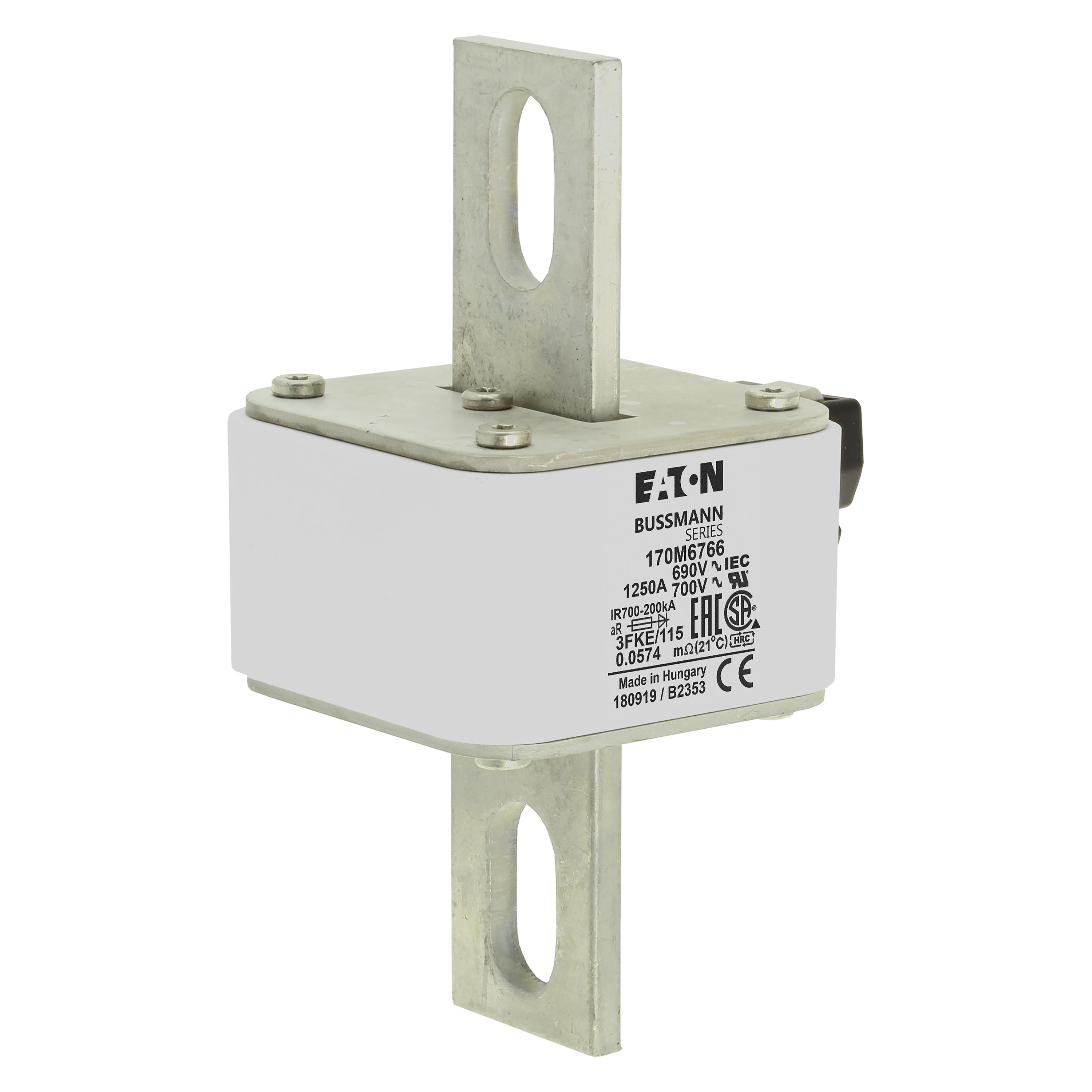 170M6766 Wkładka szybka, 1250 A, AC 690 V, rozmiar 3, 76 x 92 x 139 mm, aR, IEC, UL, pojedynczy wskaźnik