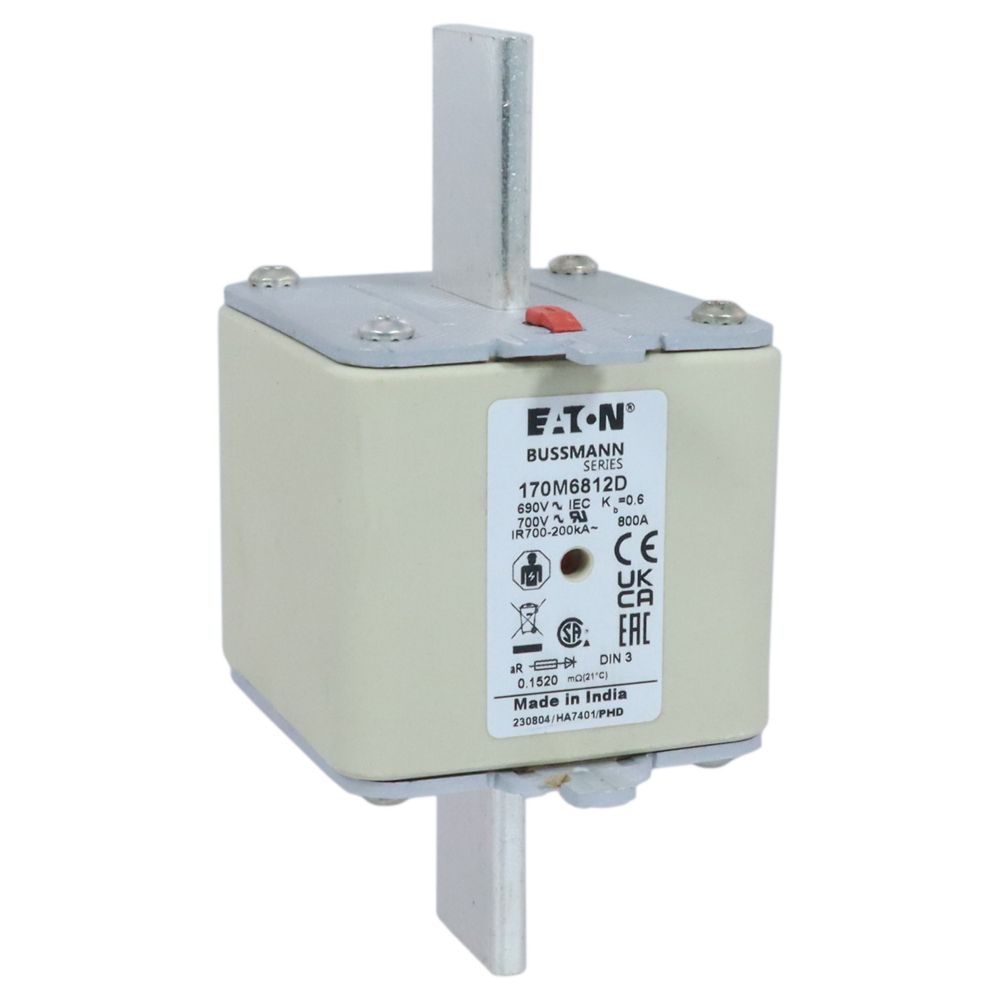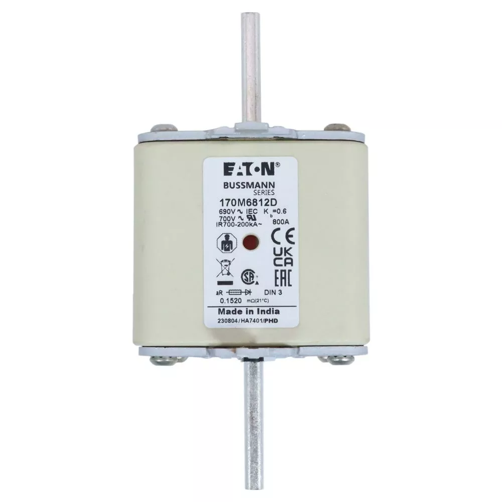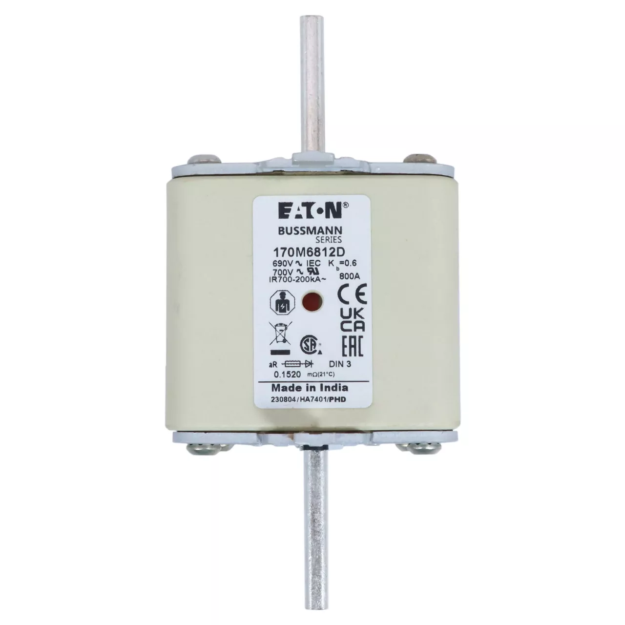 170M6812D Wkładka szybka, 800 A, AC 690 V, DIN 3, aR, DIN, IEC, podwójny wskaźnik, nieizolowane uchwyty