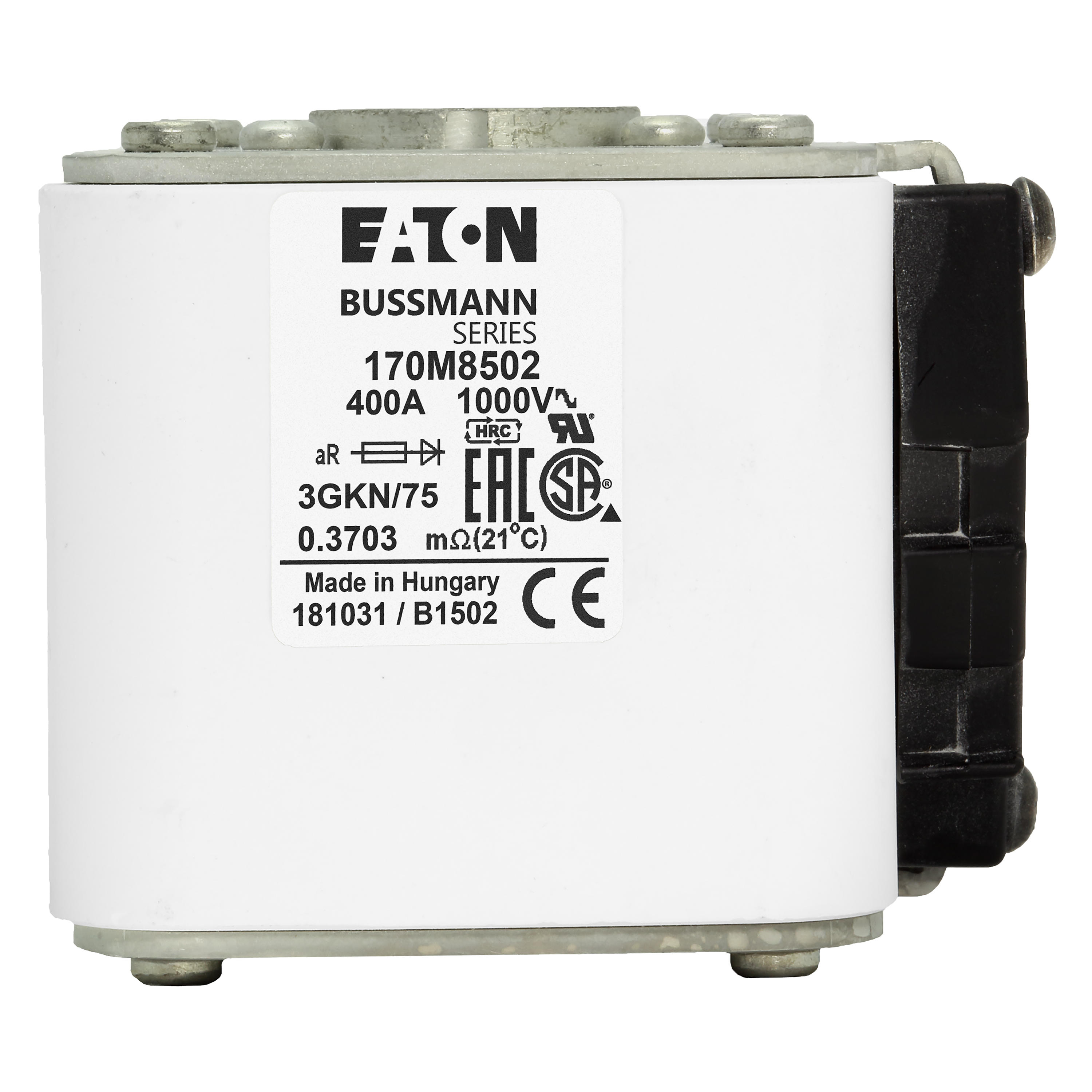 170M8502 Wkładka szybka, 400 A, AC 1000 V, size 3, 74 x 92 x 91 mm, aR, IEC, UL