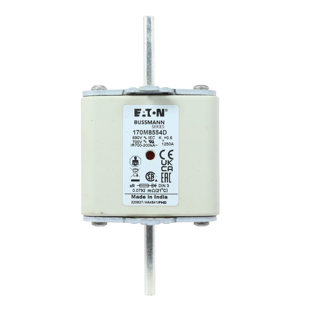 170M8554D Wkładka szybka, 1250 A, AC 690 V, DIN 3, aR, DIN, IEC, podwójny wskaźnik, nieizolowane uchwyty